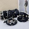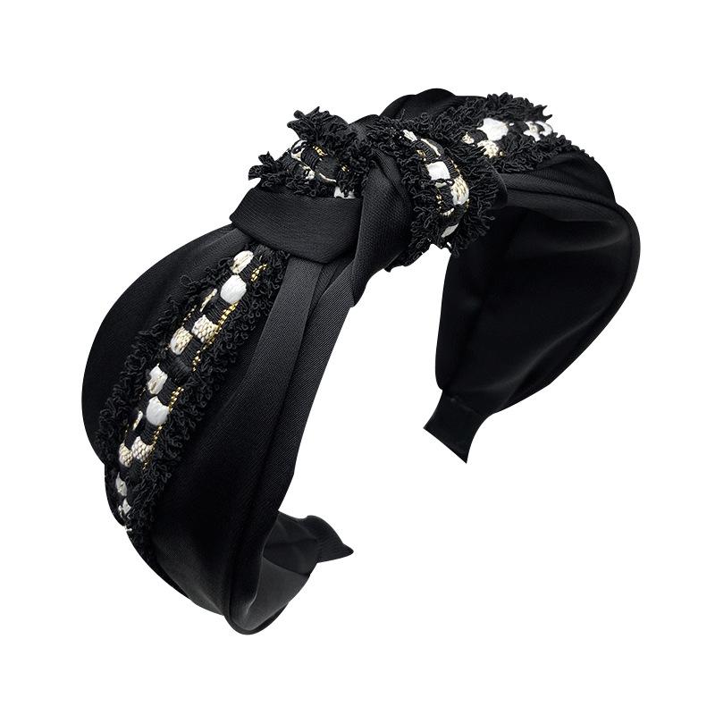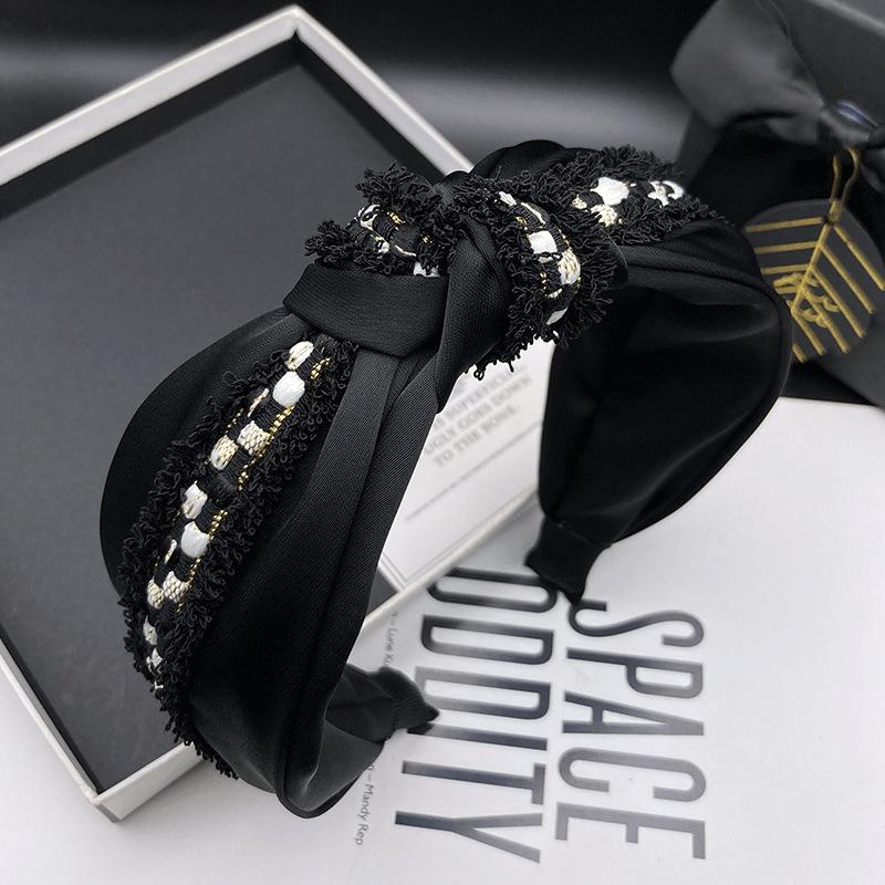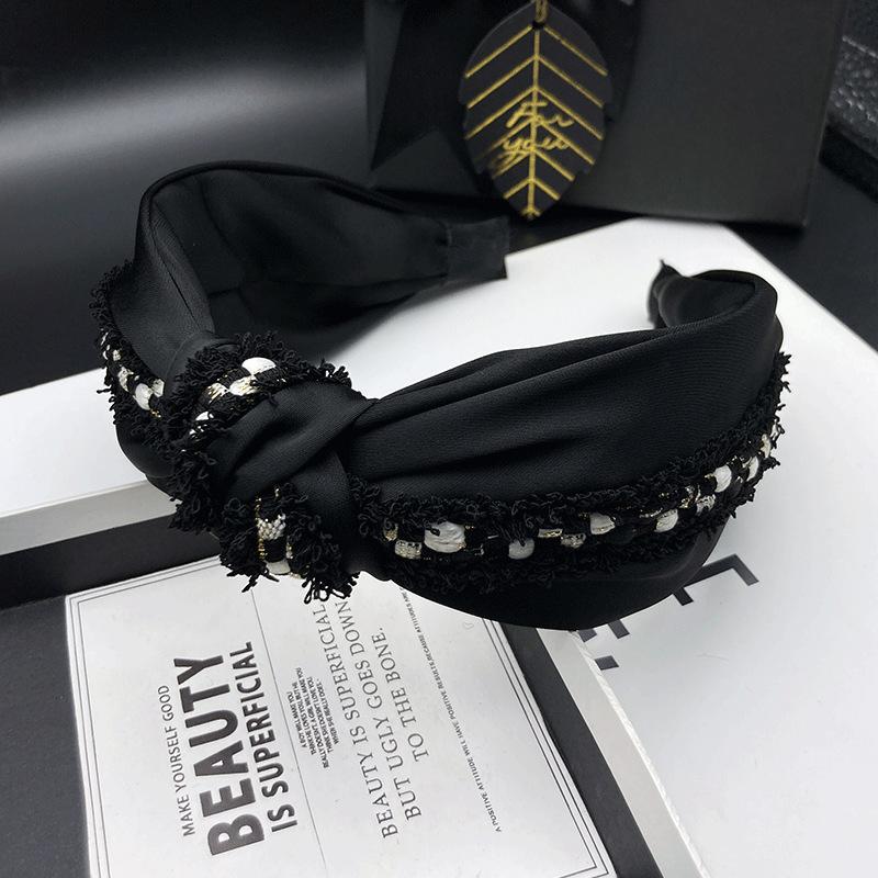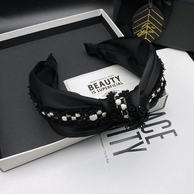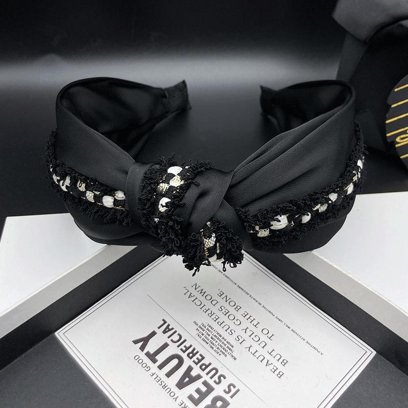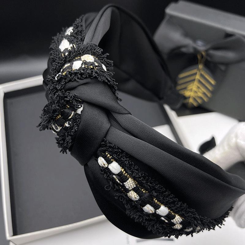 Diadema de tela negra con aro para el cabello, accesorios para el cabello, lados anchos, cráneo alto, parte superior, cara pequeña, accesorios para el cabello, estilo Chanel pequeño, tarjetas para el cabello de mujeres adultas