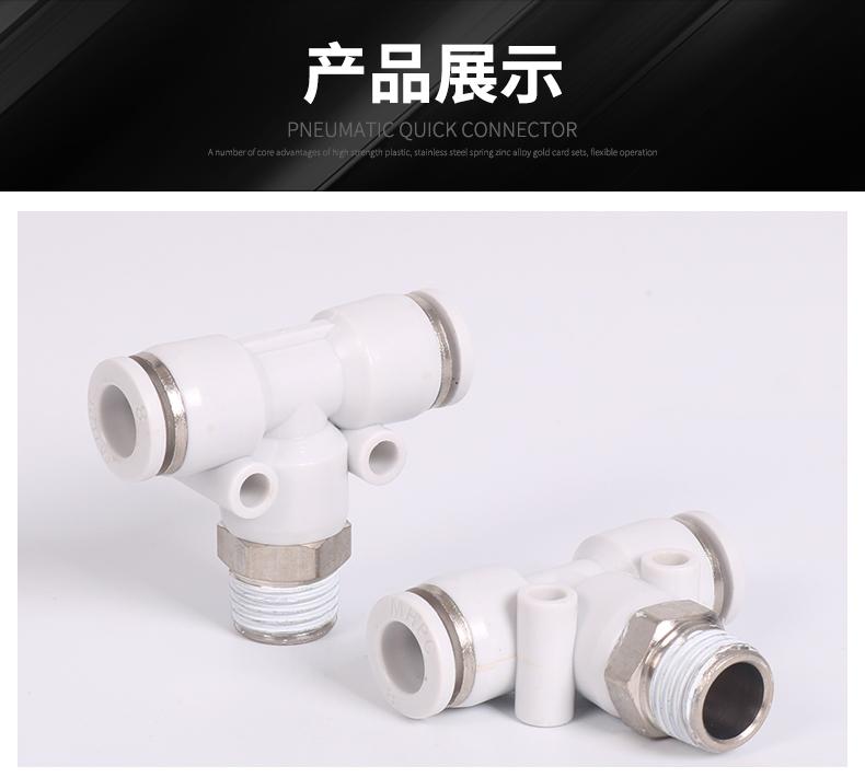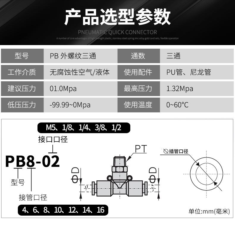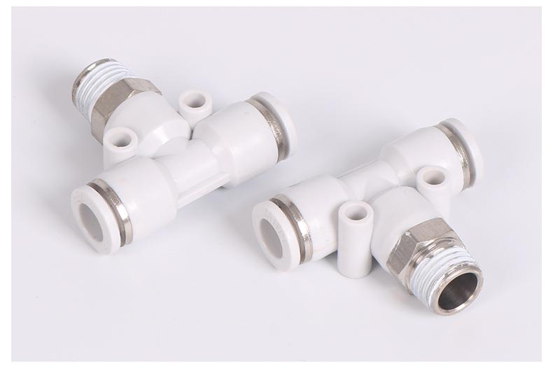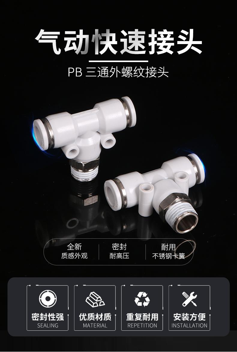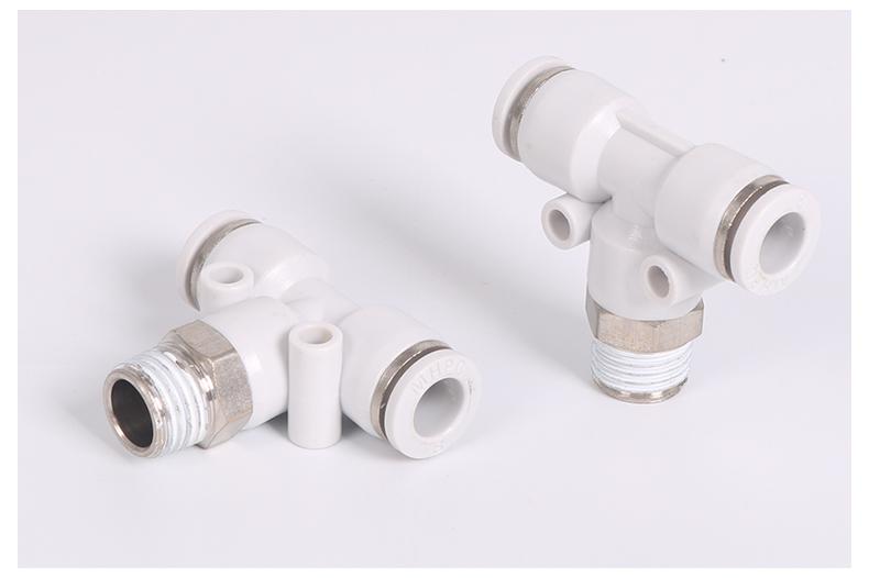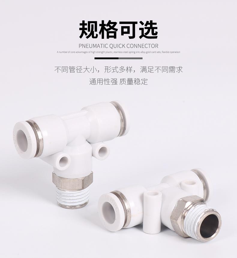 Conector de tubería de aire T tipo T con rosca PB8-02 10-03 01 enchufe rápido accesorios neumáticos rápidos Conector blanco