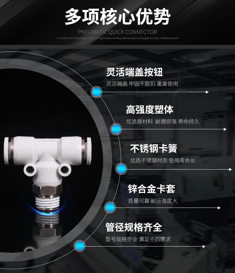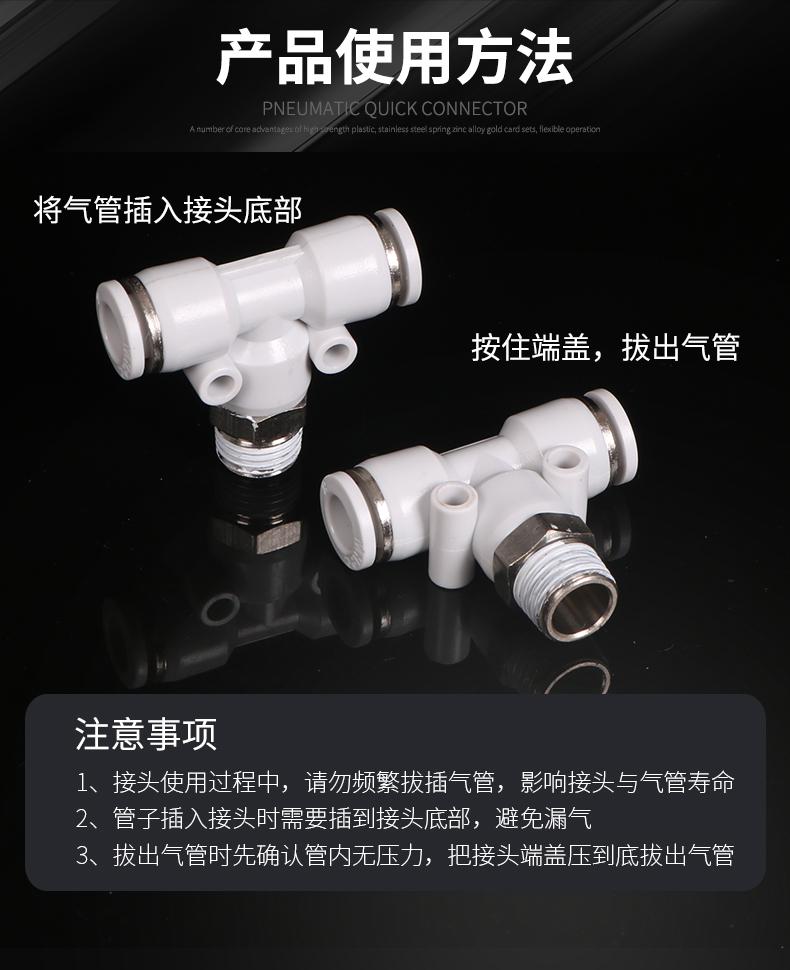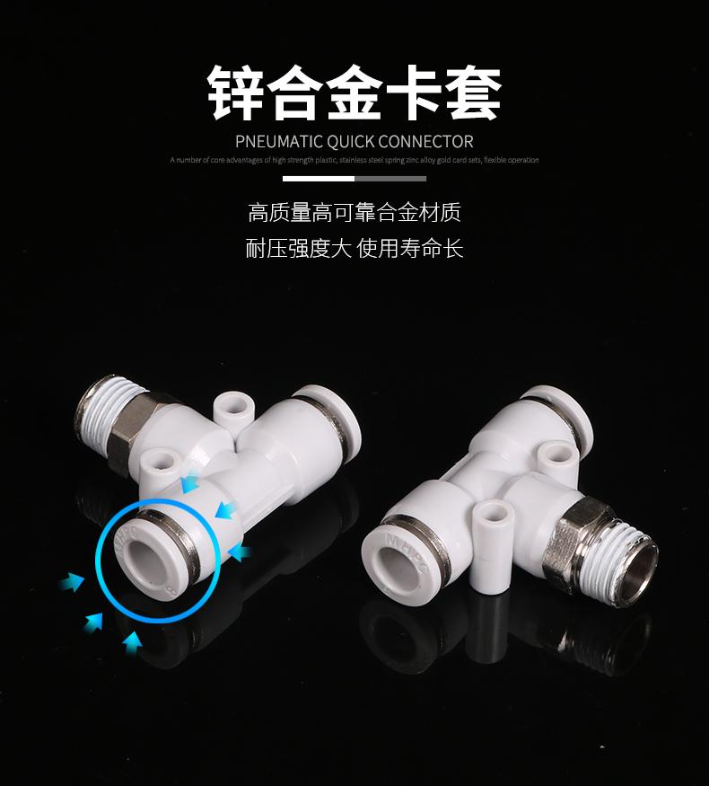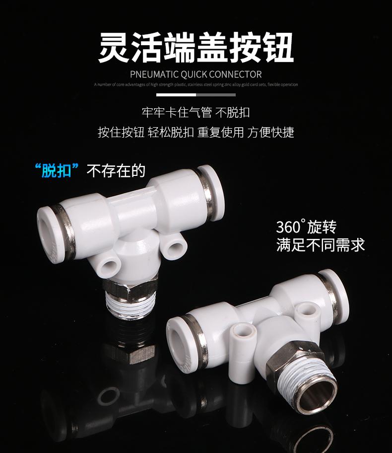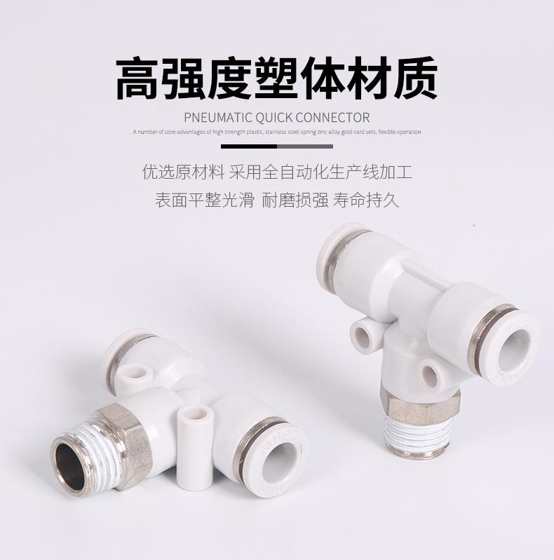 Conector de tubería de aire T tipo T con rosca PB8-02 10-03 01 enchufe rápido accesorios neumáticos rápidos Conector blanco
