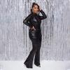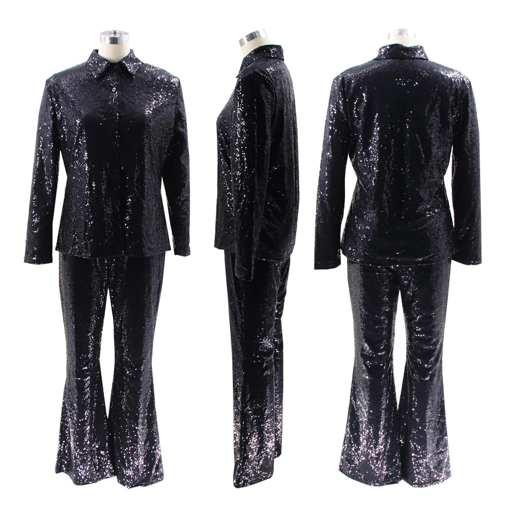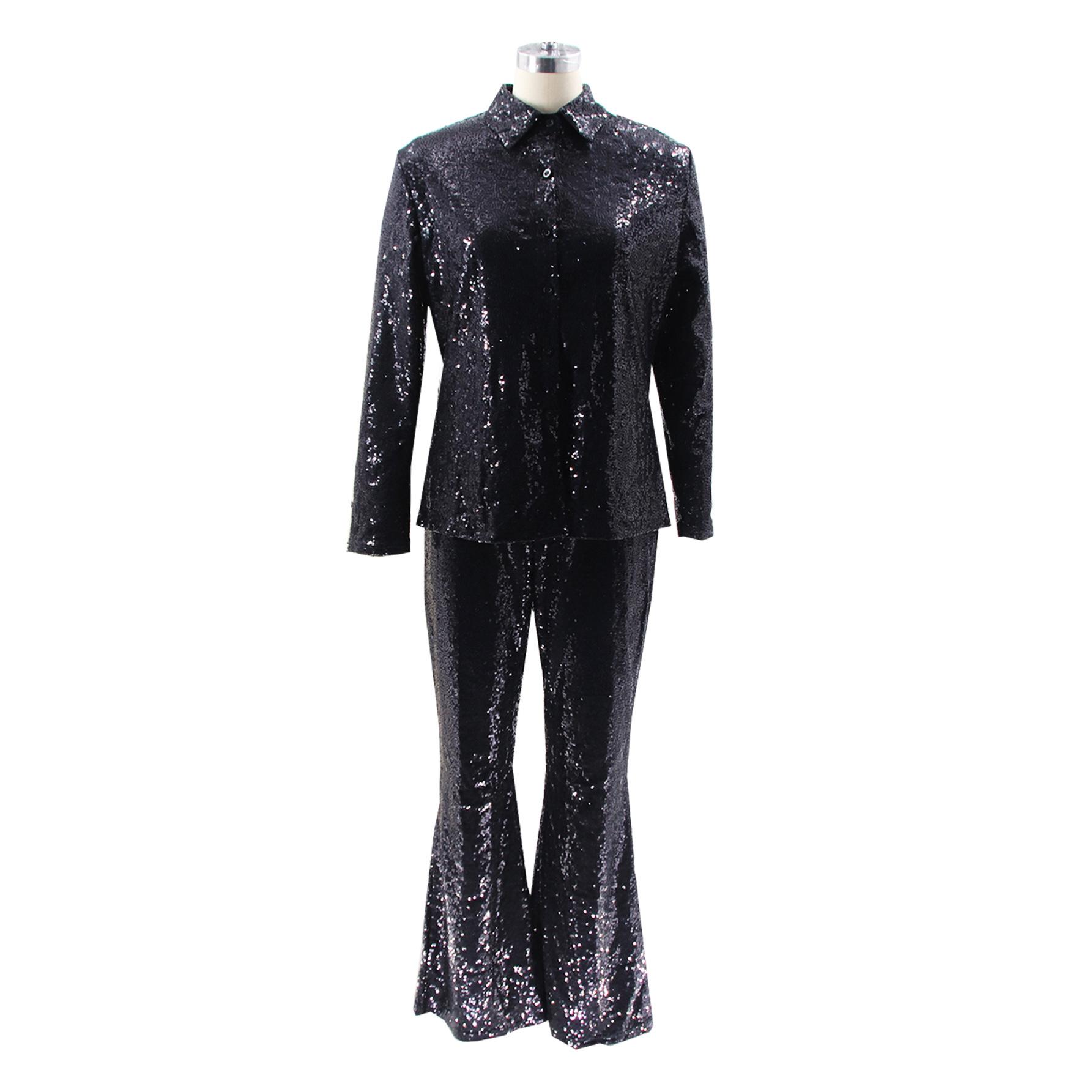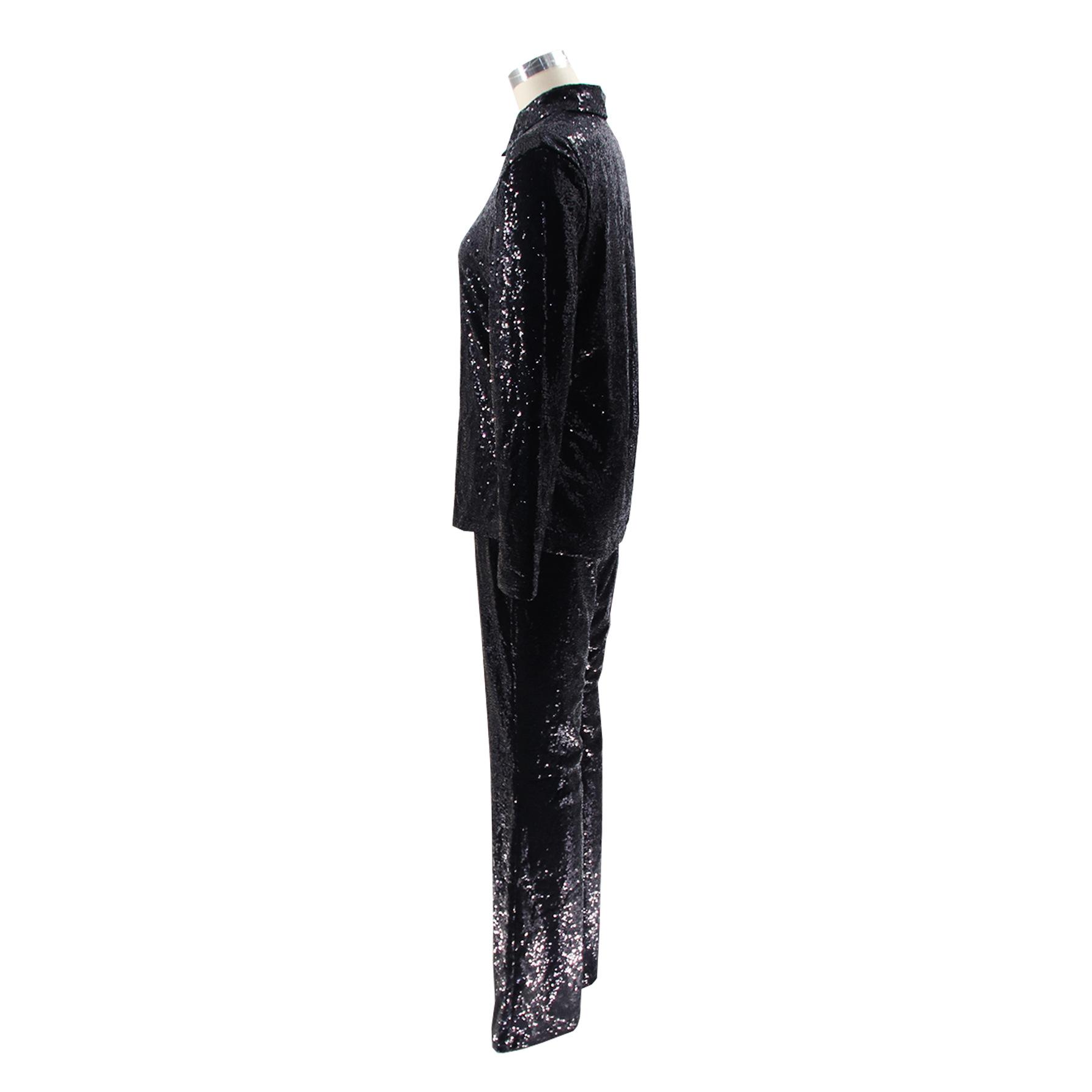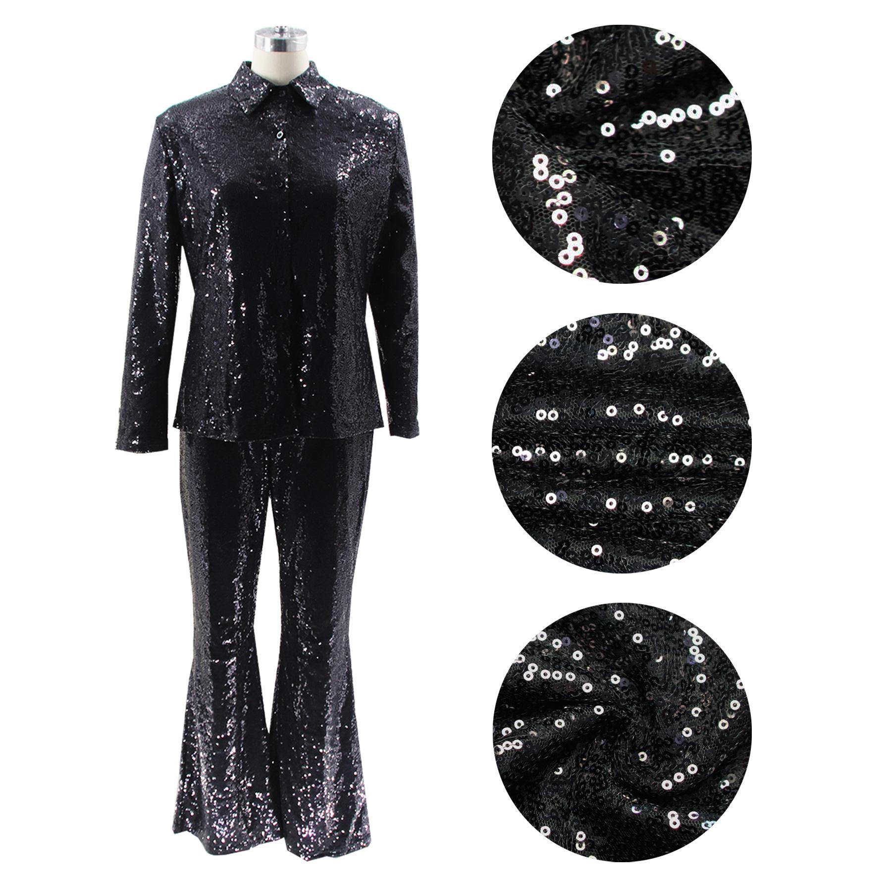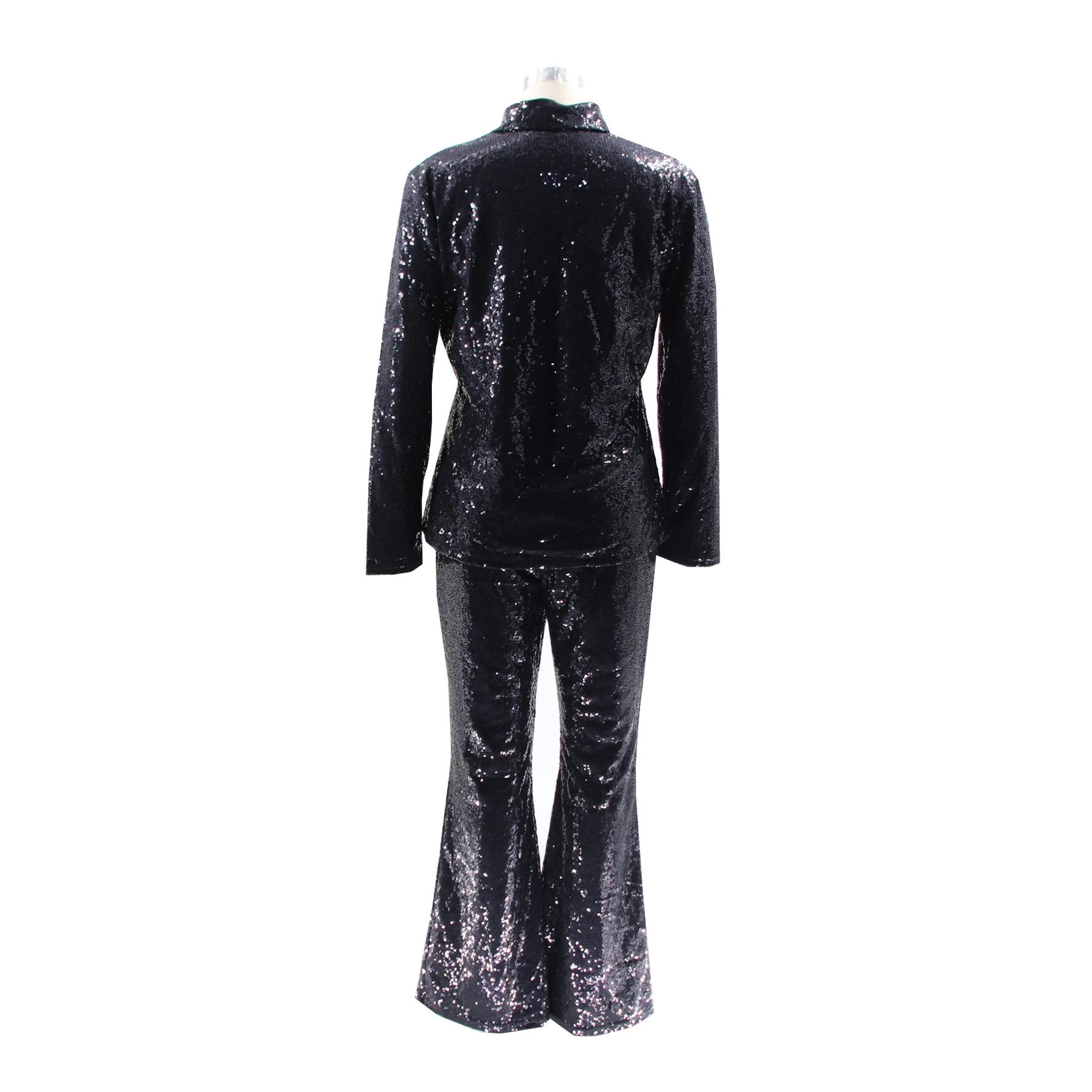 TD2511 Traje de dos piezas retro de escenario con lentejuelas y solapa delgada informal sexy de moda europea y americana de Amazon
