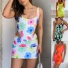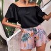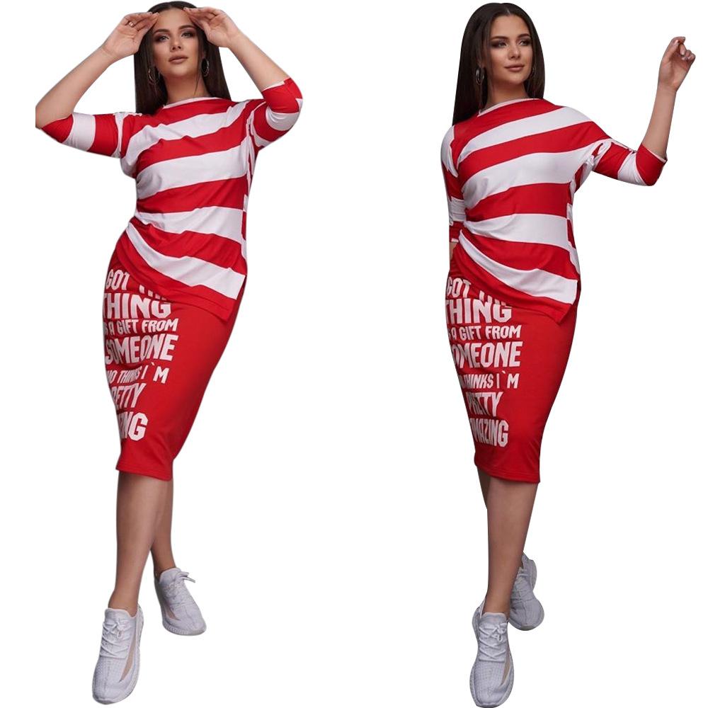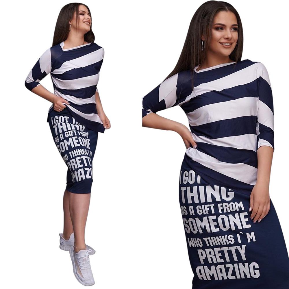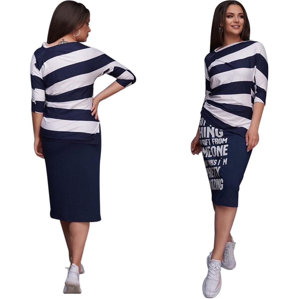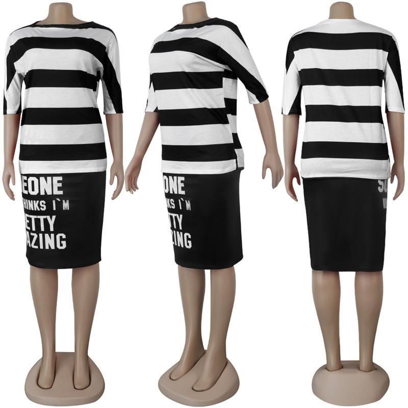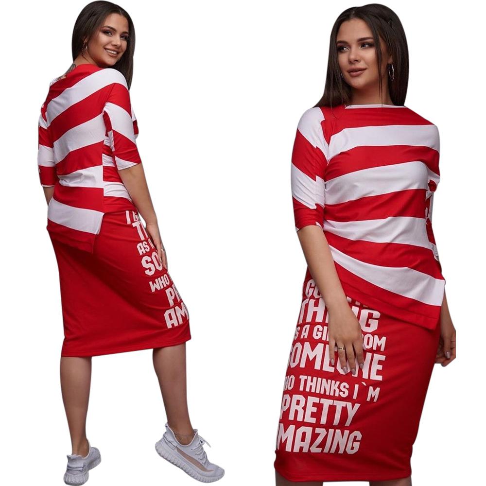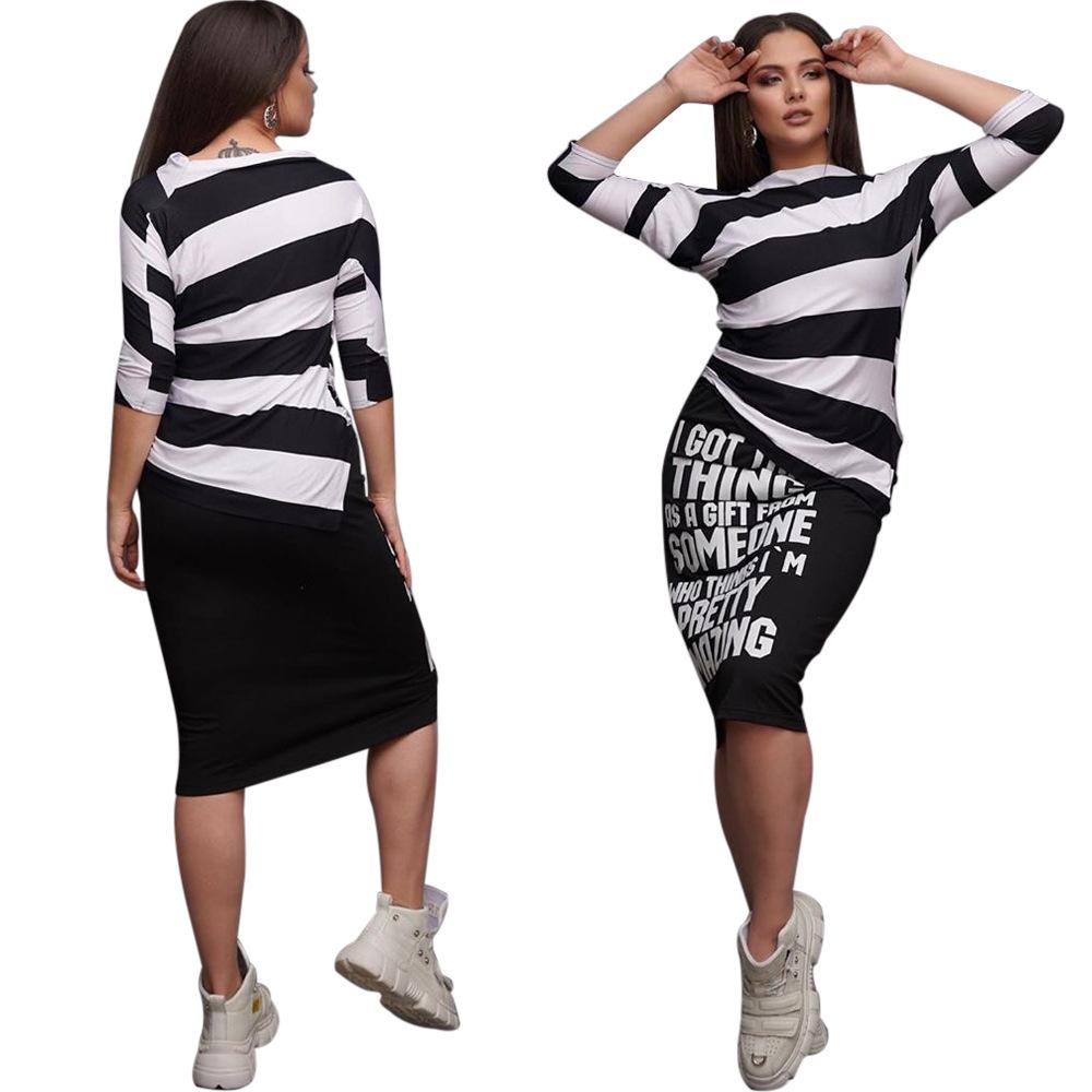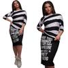 H106 Ropa sexy europea y americana para mujer, traje de falda con abertura de manga corta y hombros descubiertos estampado a rayas monocromático