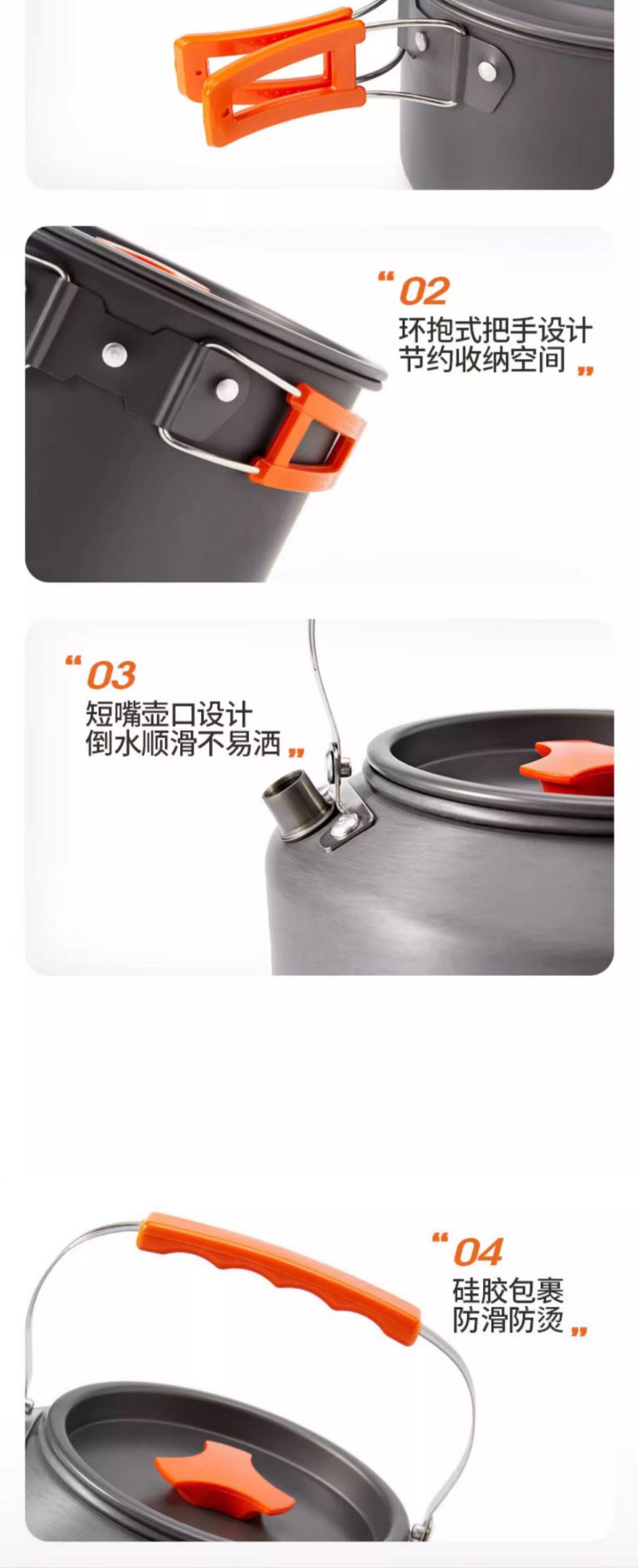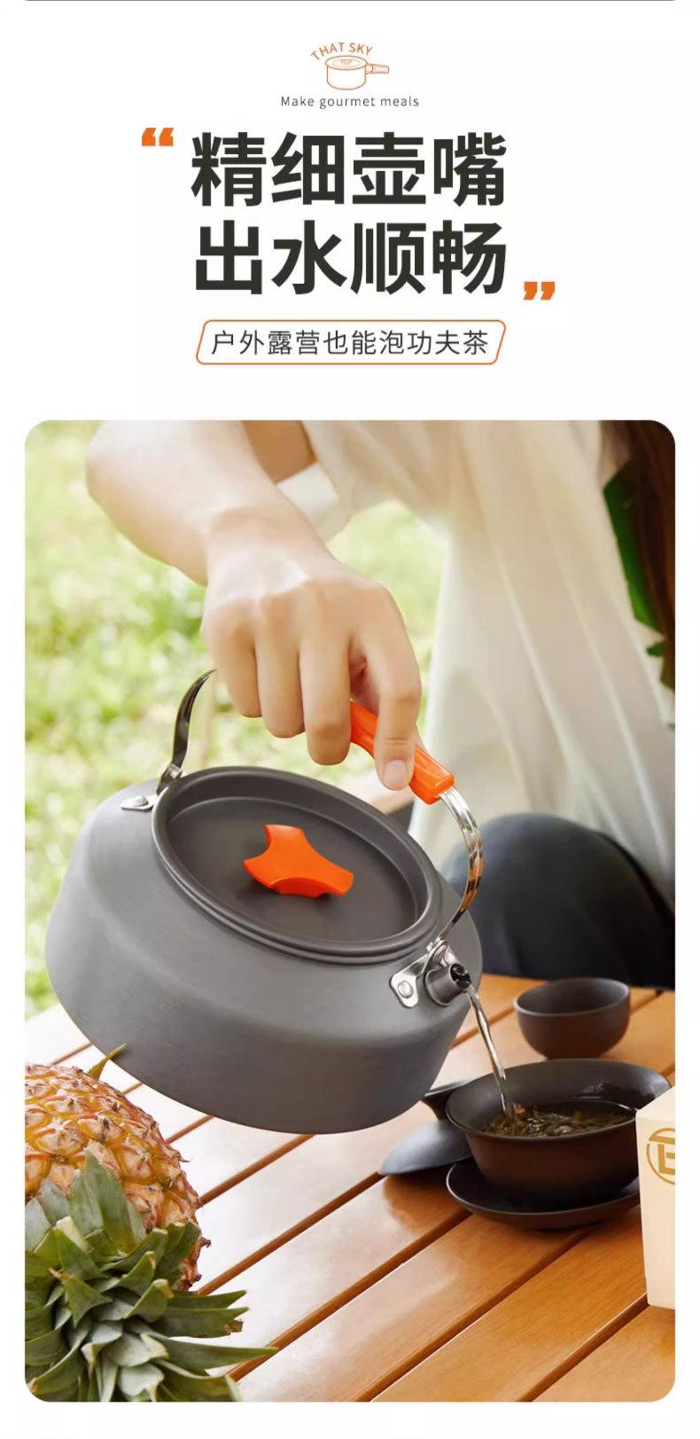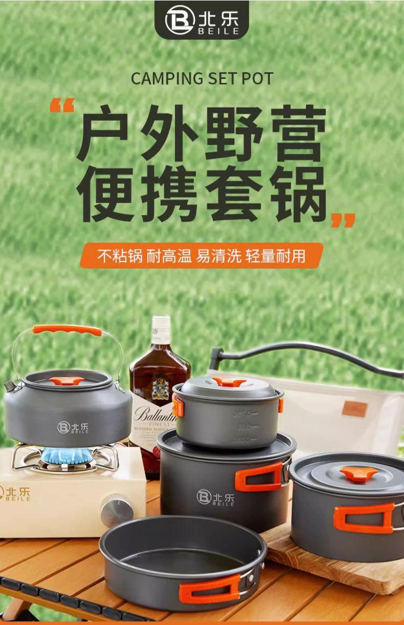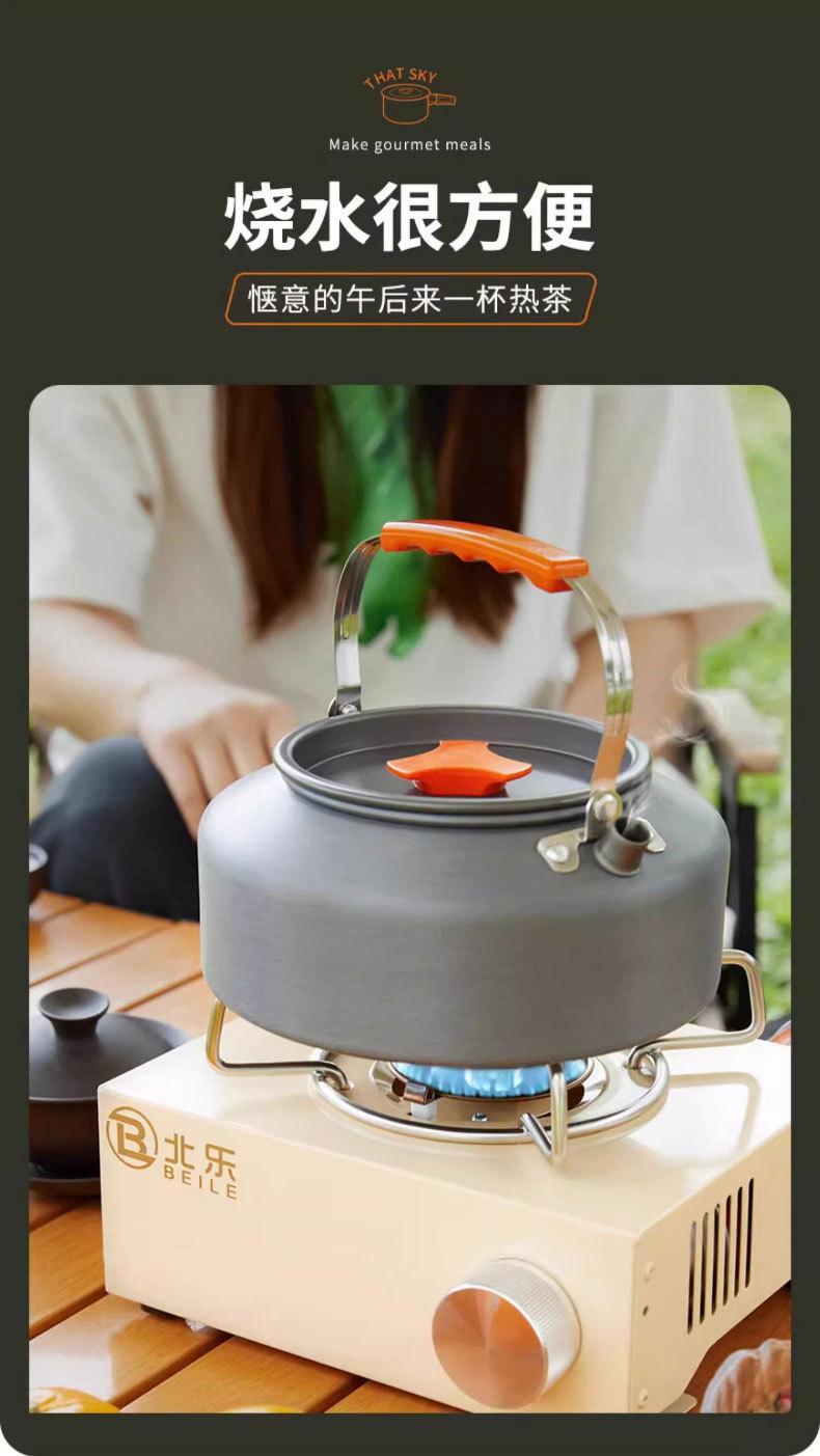 Utensilios de cocina para exteriores, utensilios de cocina para acampar, equipo de picnic, juego completo, estufa de cartas, tetera, juego de camping, olla, vajilla portátil, luz