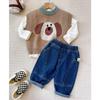 [Ropa de Niño] Doodle Chaleco sin Mangas de Otoño para Niños Chaleco Jeans de Niño Camisa de Bebé con Espalda