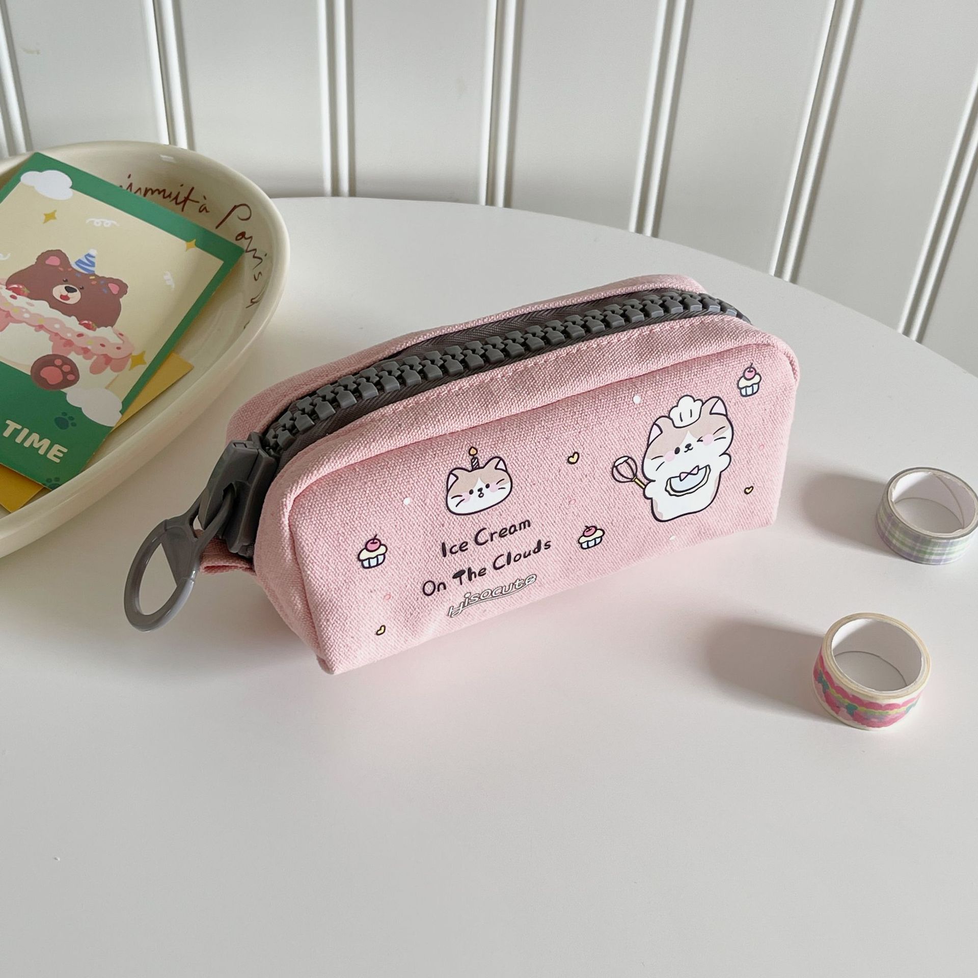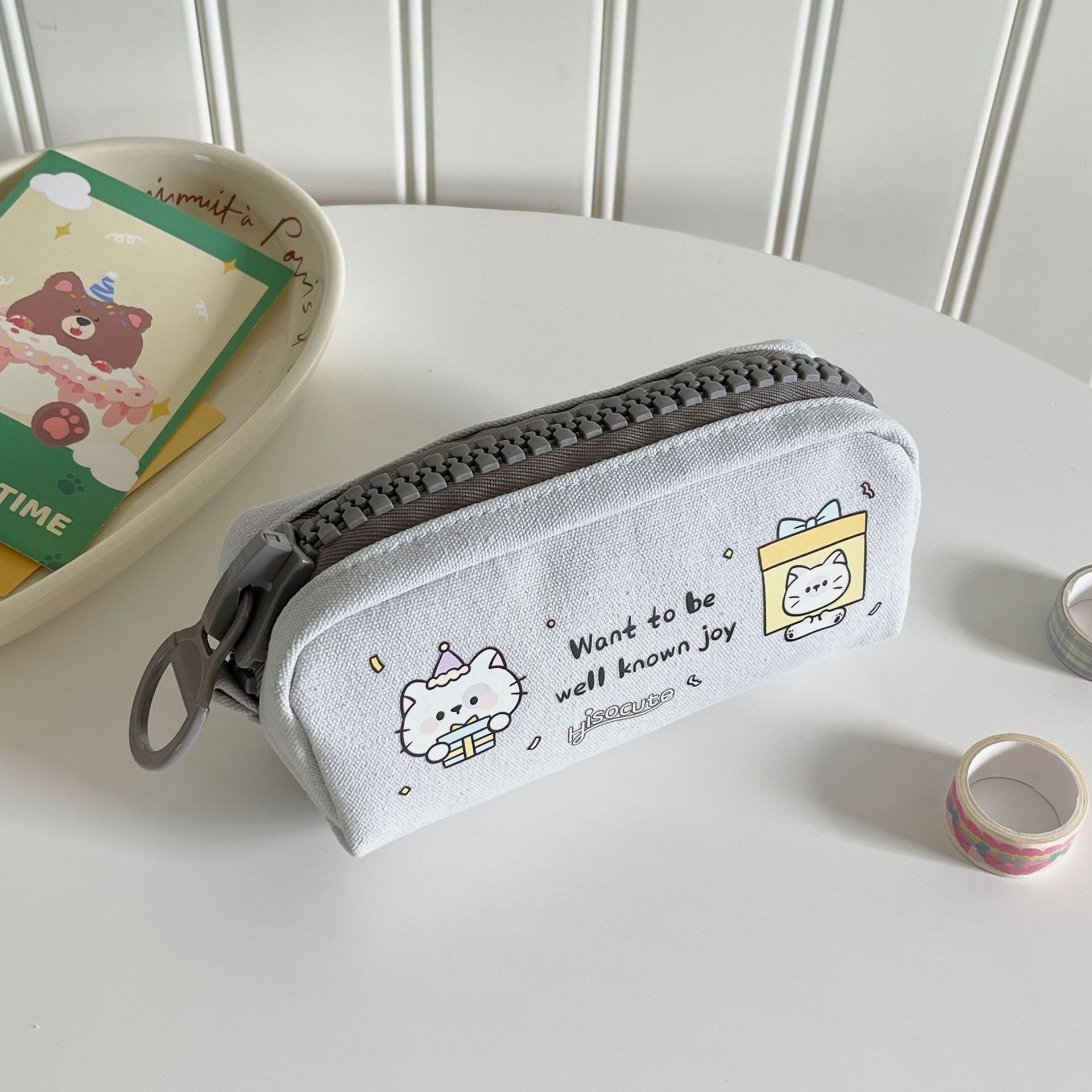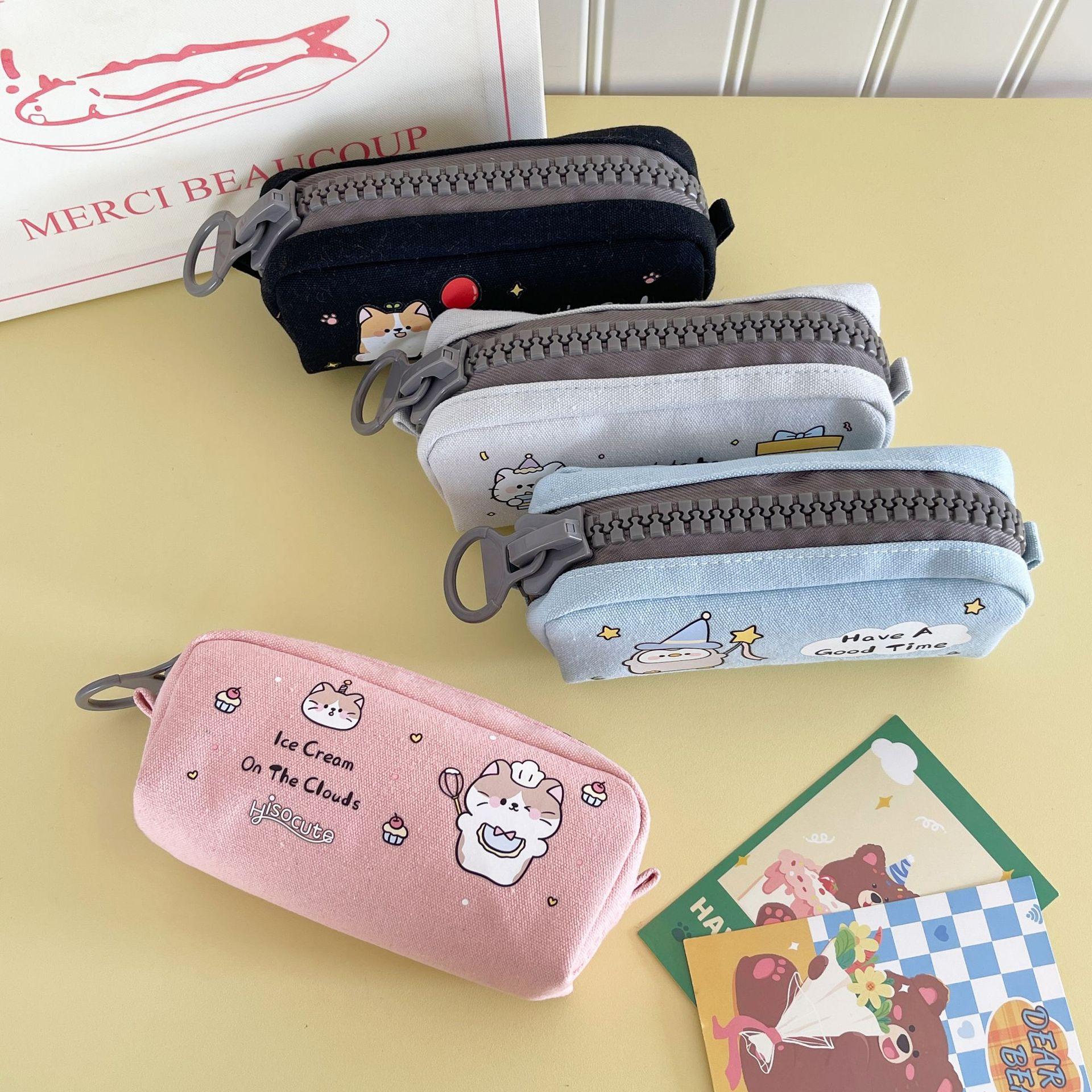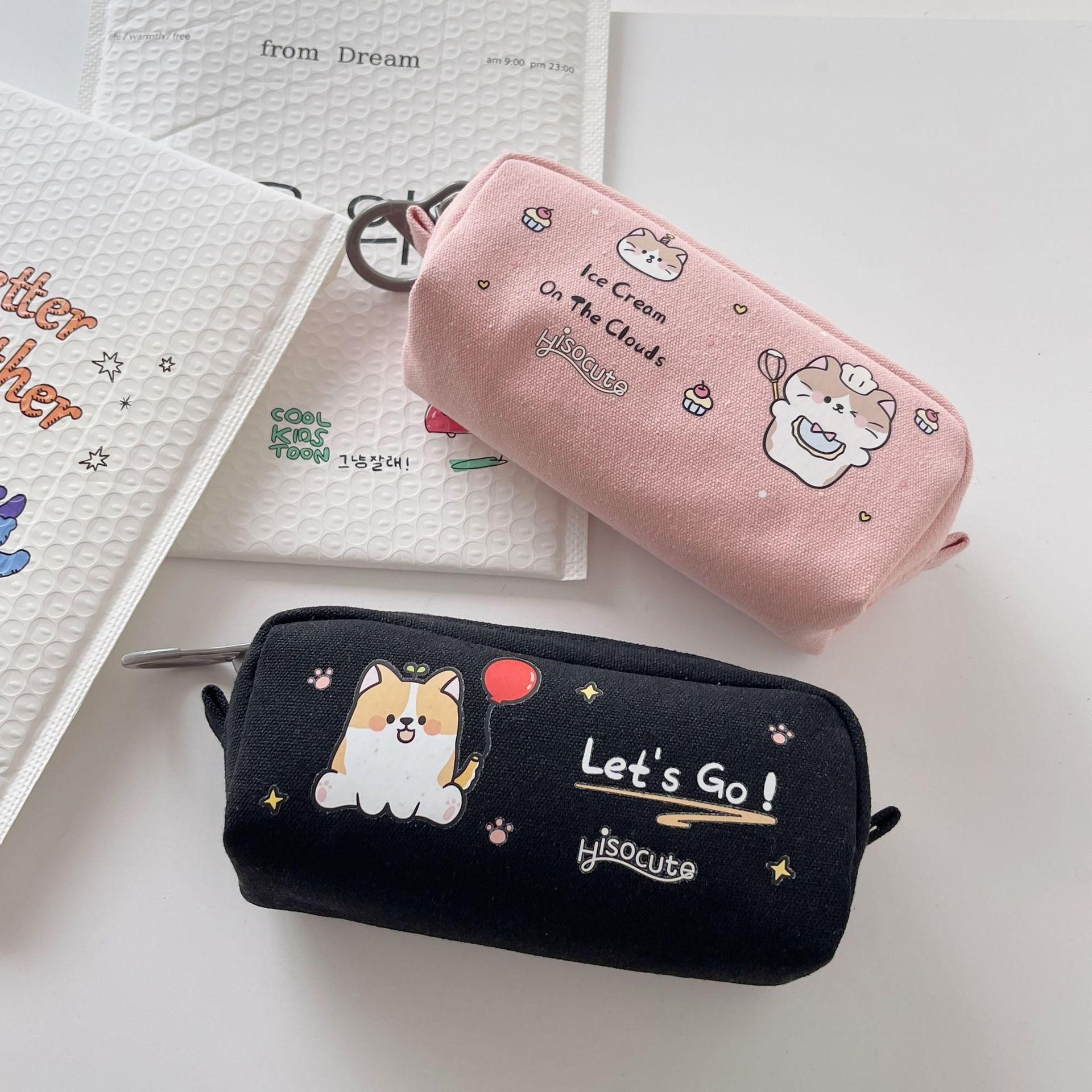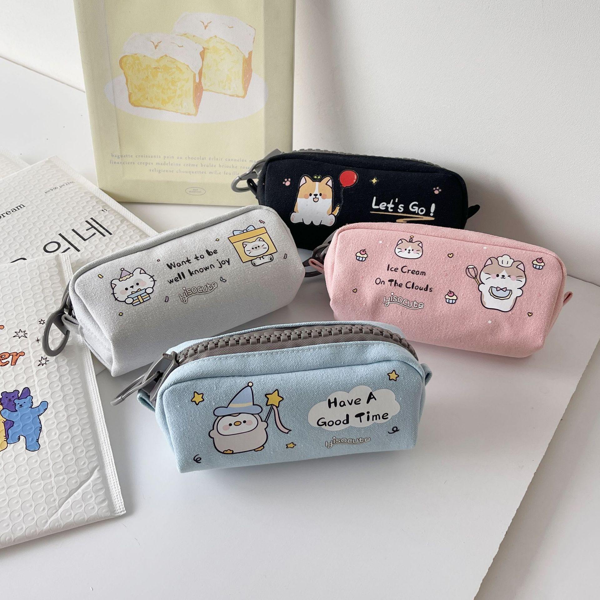 Estilo Japonés y Coreano Dibujo Animado Lindo Bolsa de Lona para Lápices Estudiante Gran Capacidad Bolsa para Guardar Papelería Cabeza Grande Portátil Bolsa de Lápices de Papelería