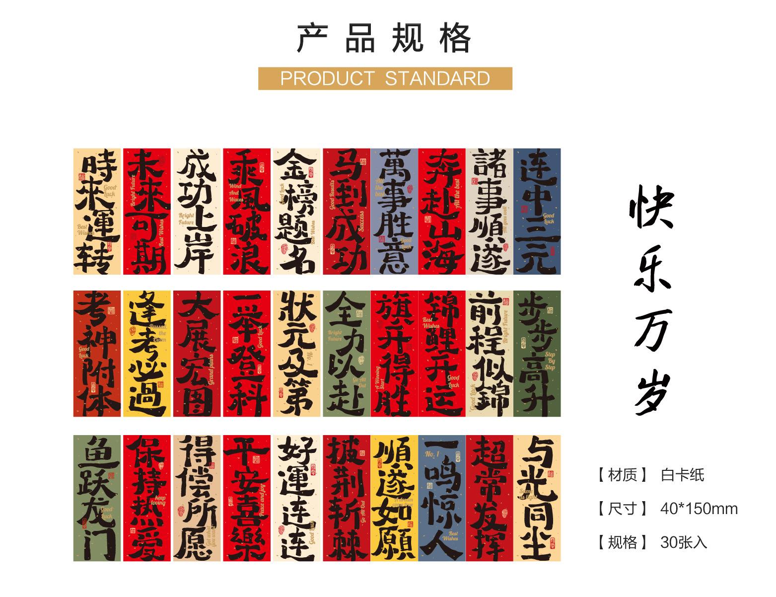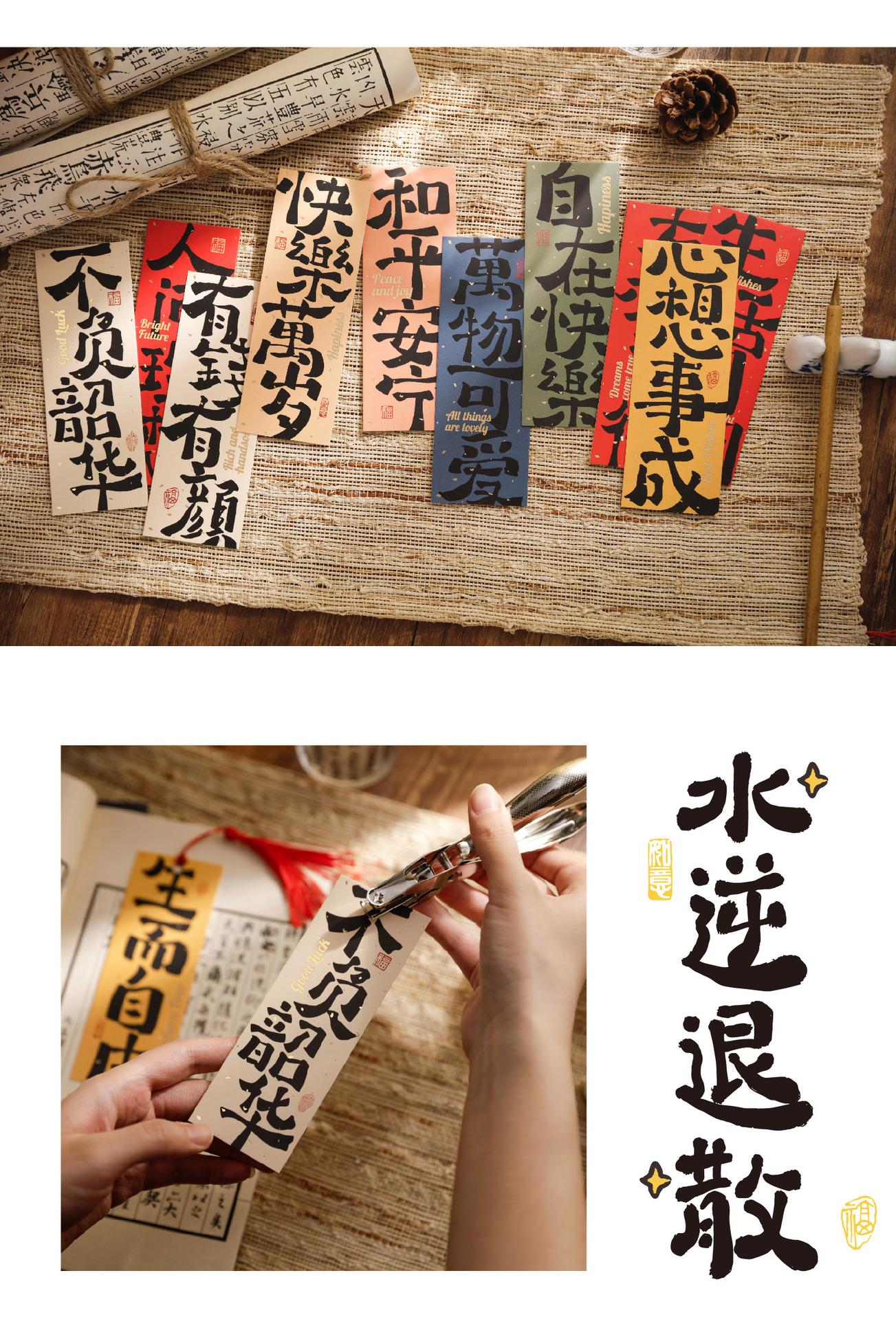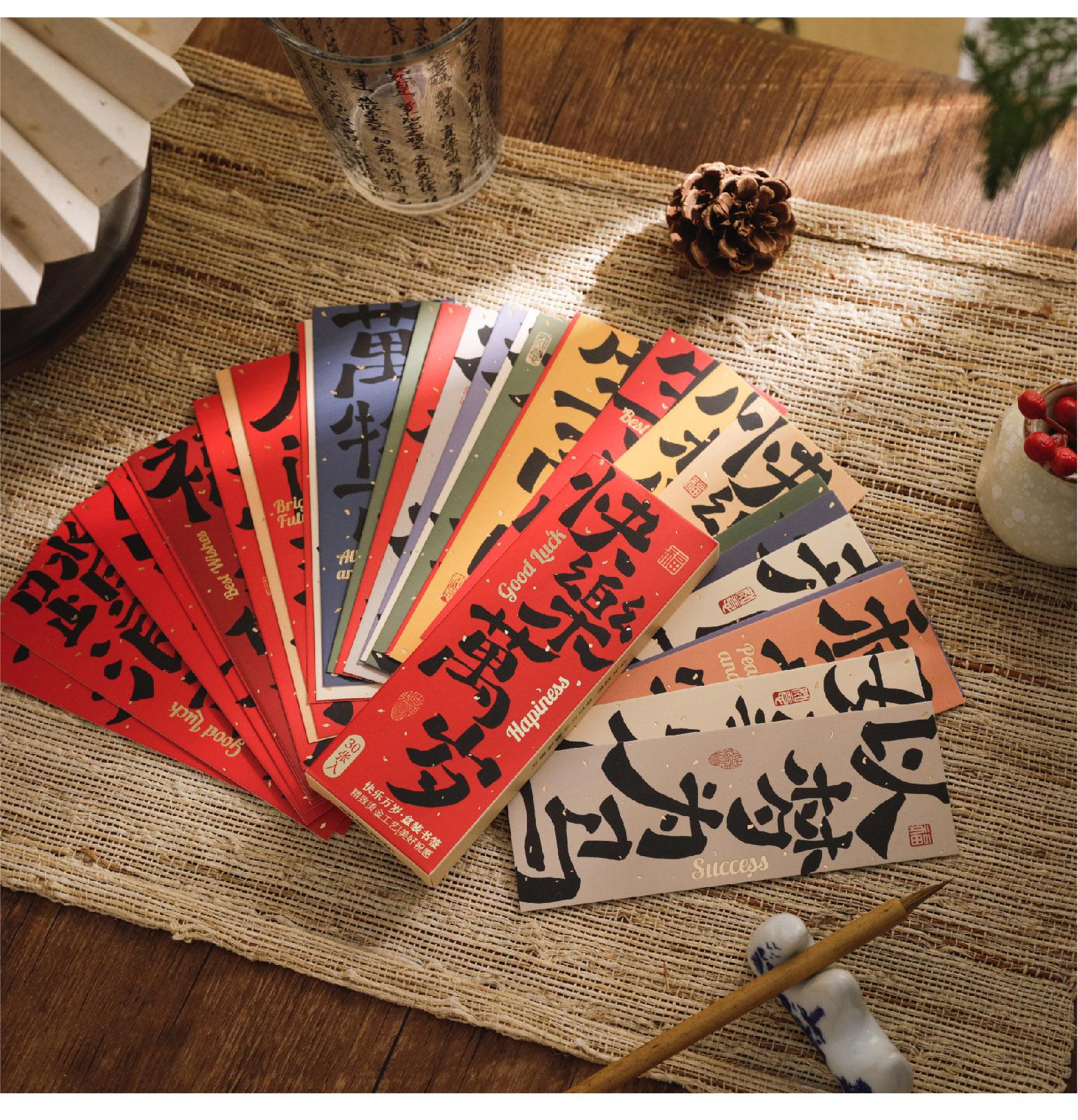 30 marcadores de texto de estilo chino "Feliz larga vida", tarjetas colgantes, papelería, exquisitos marcadores de regalo creativos