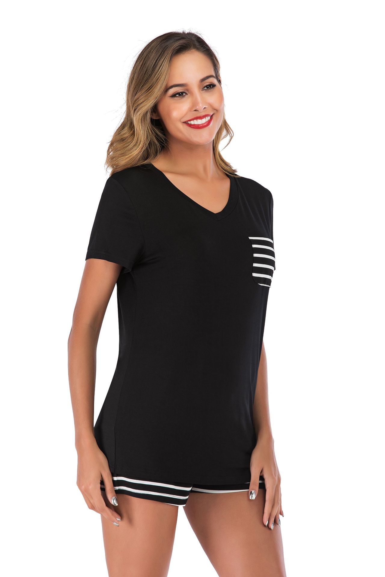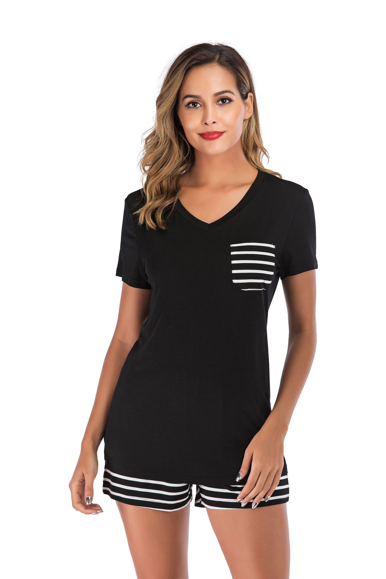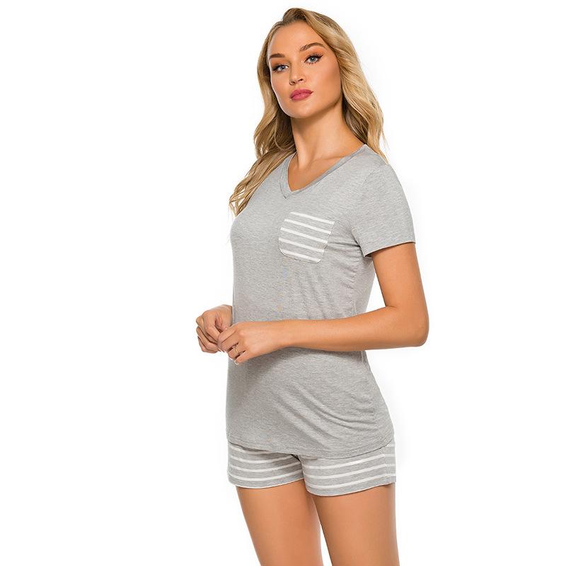 Amazon AliExpress ebay 2021 pijamas de verano a rayas cuello en V manga corta shorts traje de dos piezas ropa para el hogar