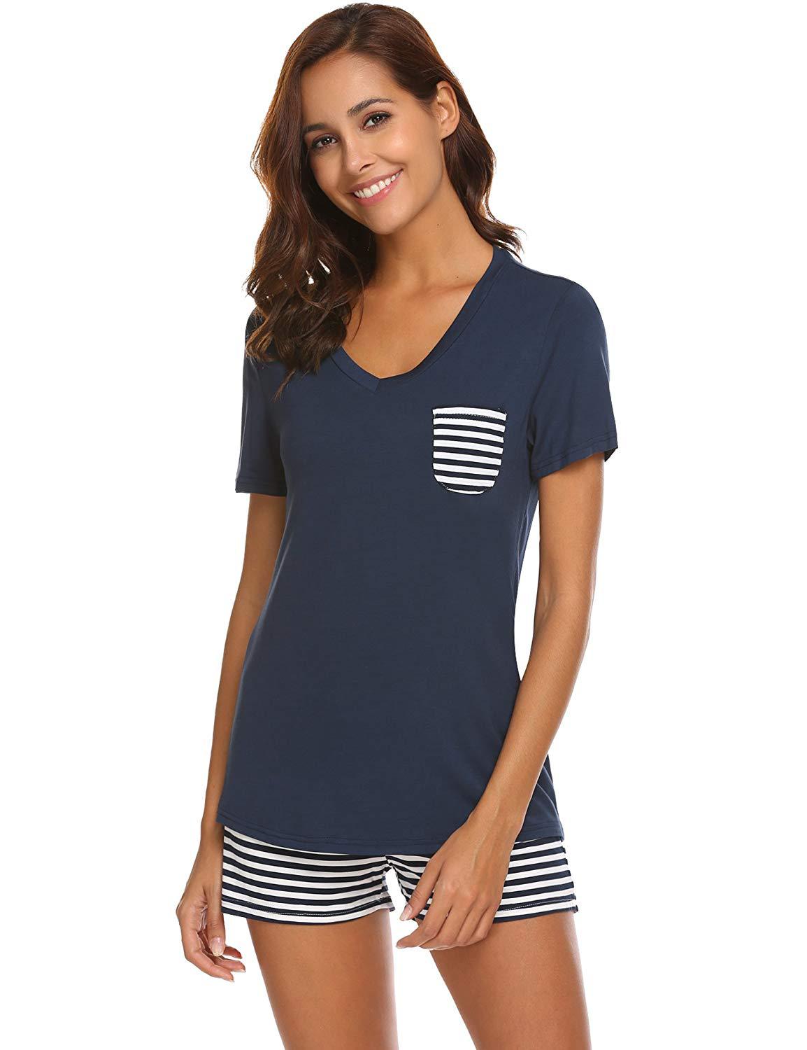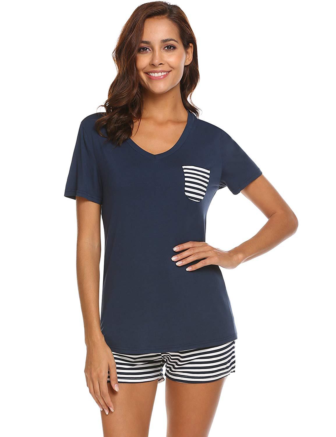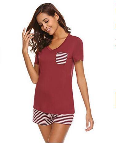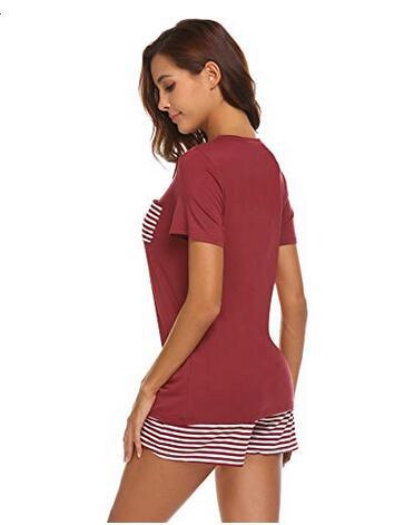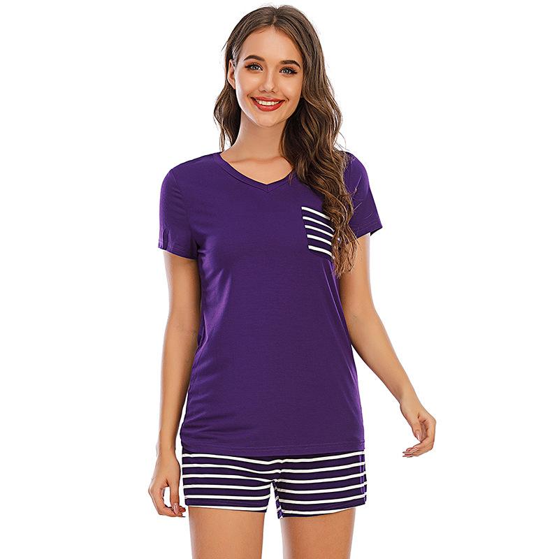 Amazon AliExpress ebay 2021 pijamas de verano a rayas cuello en V manga corta shorts traje de dos piezas ropa para el hogar