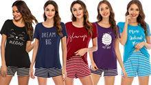 Pijama de dos piezas transfronterizo de Amazon EBAY estampado ropa de casa traje de manga corta y pantalones cortos ropa de casa ropa de casa