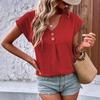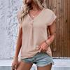 Ropa de mujer de comercio exterior de primavera y verano 2023, Amazon Wish transfronterizo, nuevo top europeo y americano, color sólido, botón giratorio, moda de manga corta para mujer