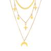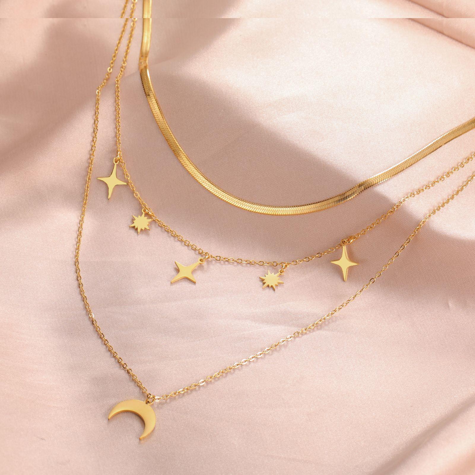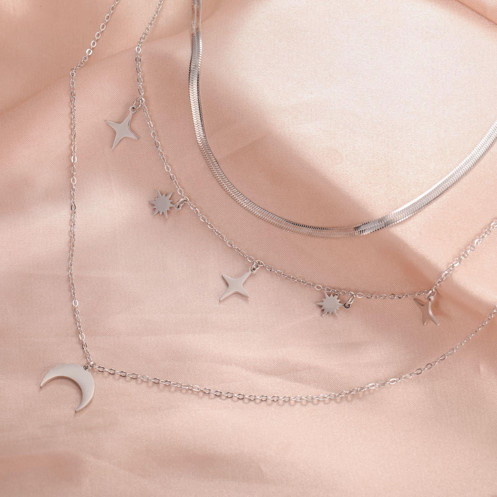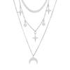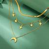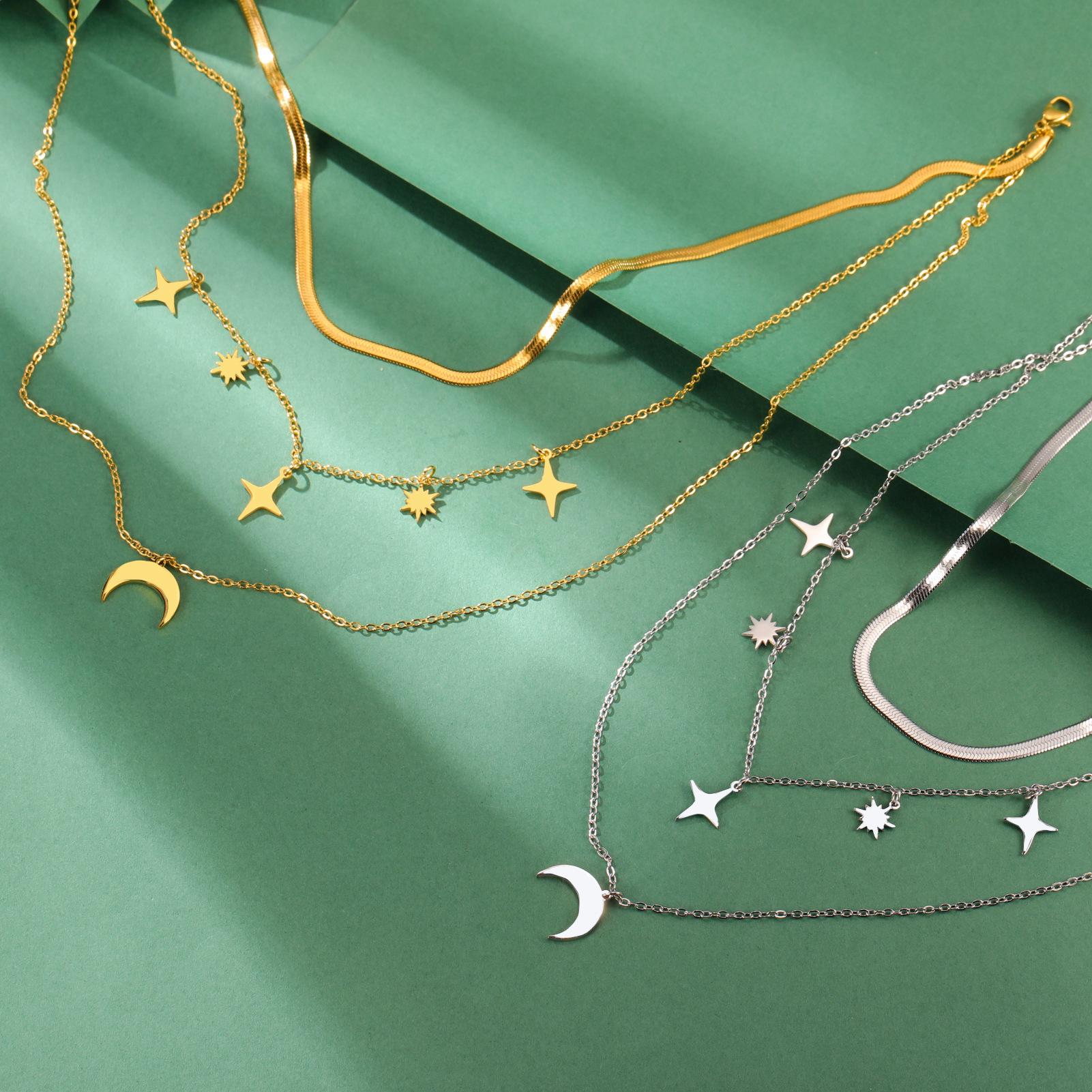 Exquisito Colgante con Patrón de Explosión de Estrella de Cuatro Hombres Combinación de Menisco Uso Apilado de Tres Capas Joyería de Temperamento para Damas Collar de Acero Inoxidable