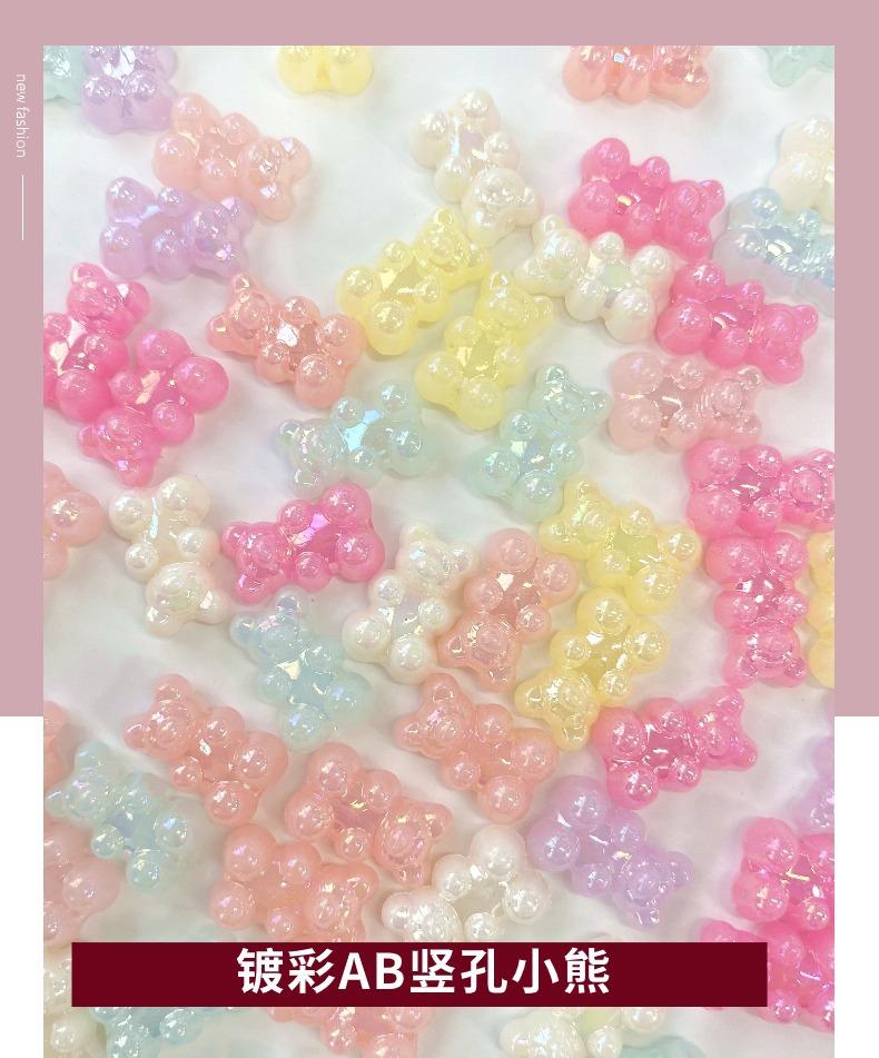 Color Acrílico Plateado Ab Jalea Agujero Vertical Oso DIY Cadena Colgante para Teléfono Móvil Adornos Colgantes para Coche Accesorios de Joyería Material Cuentas Sueltas