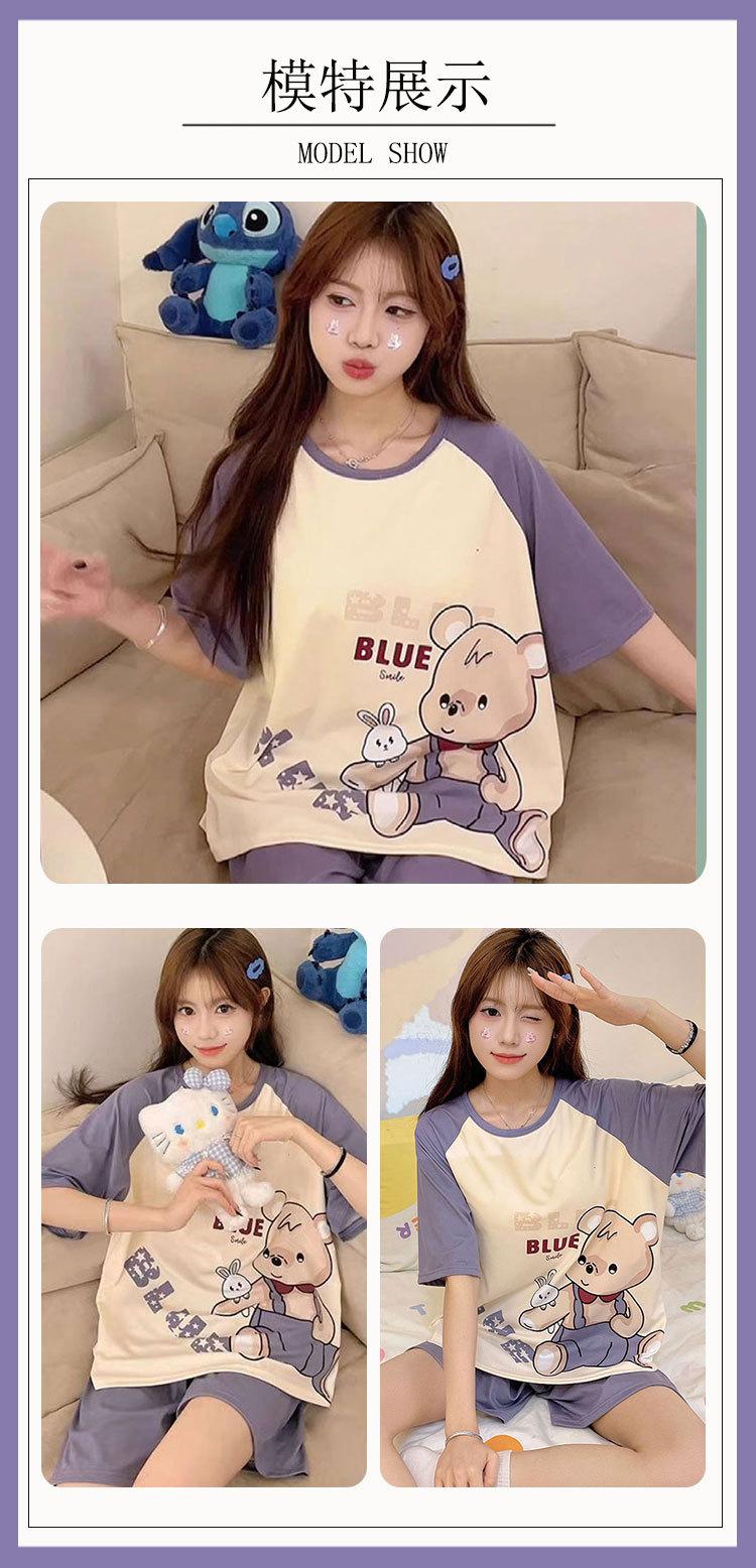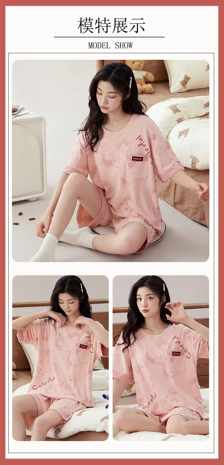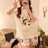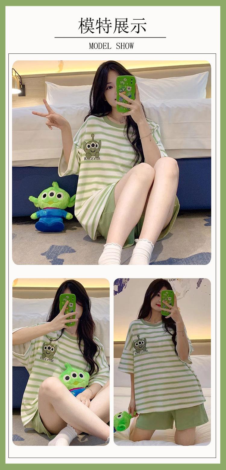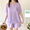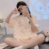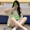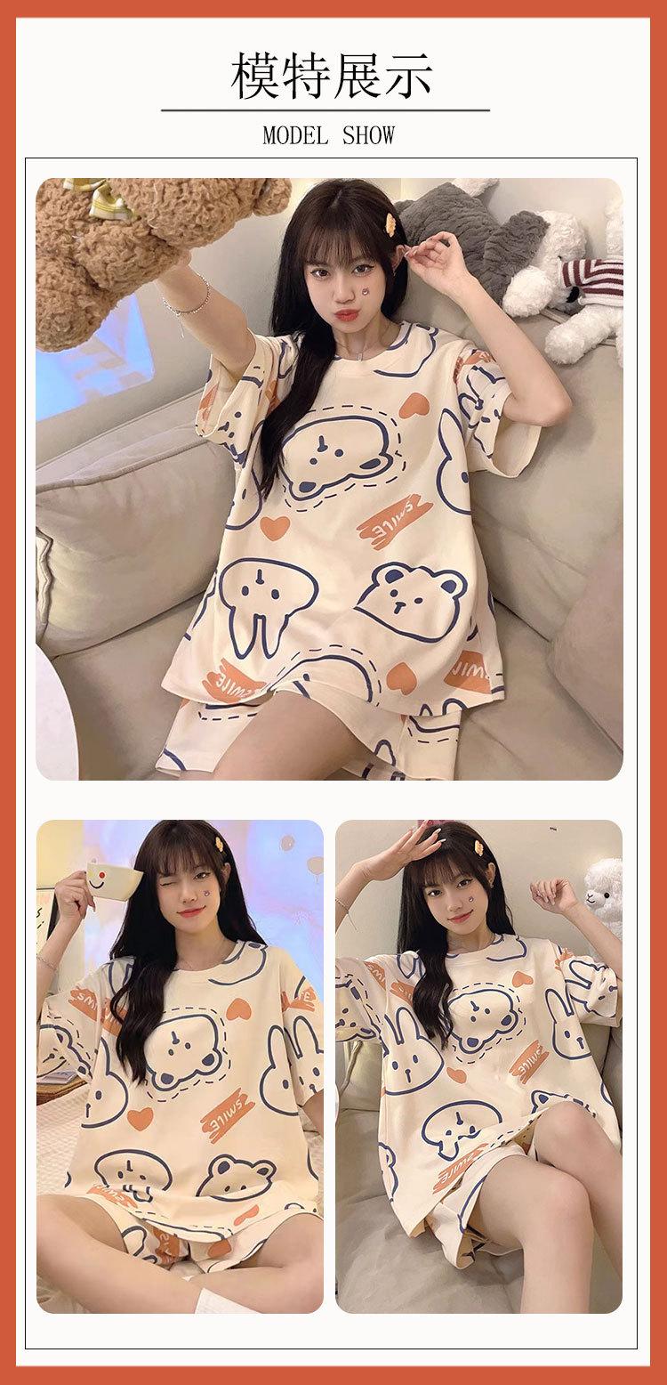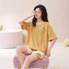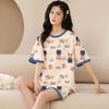 Pijamas de verano para mujer, de algodón puro, de manga corta, pantalones cortos, sencillos, informales, con dibujos animados, para niña, talla grande, ropa exterior para usar en casa.