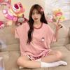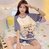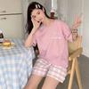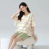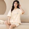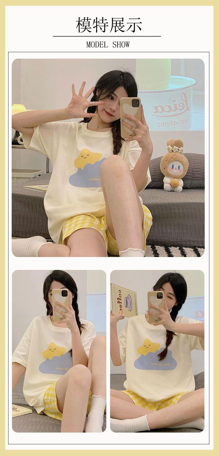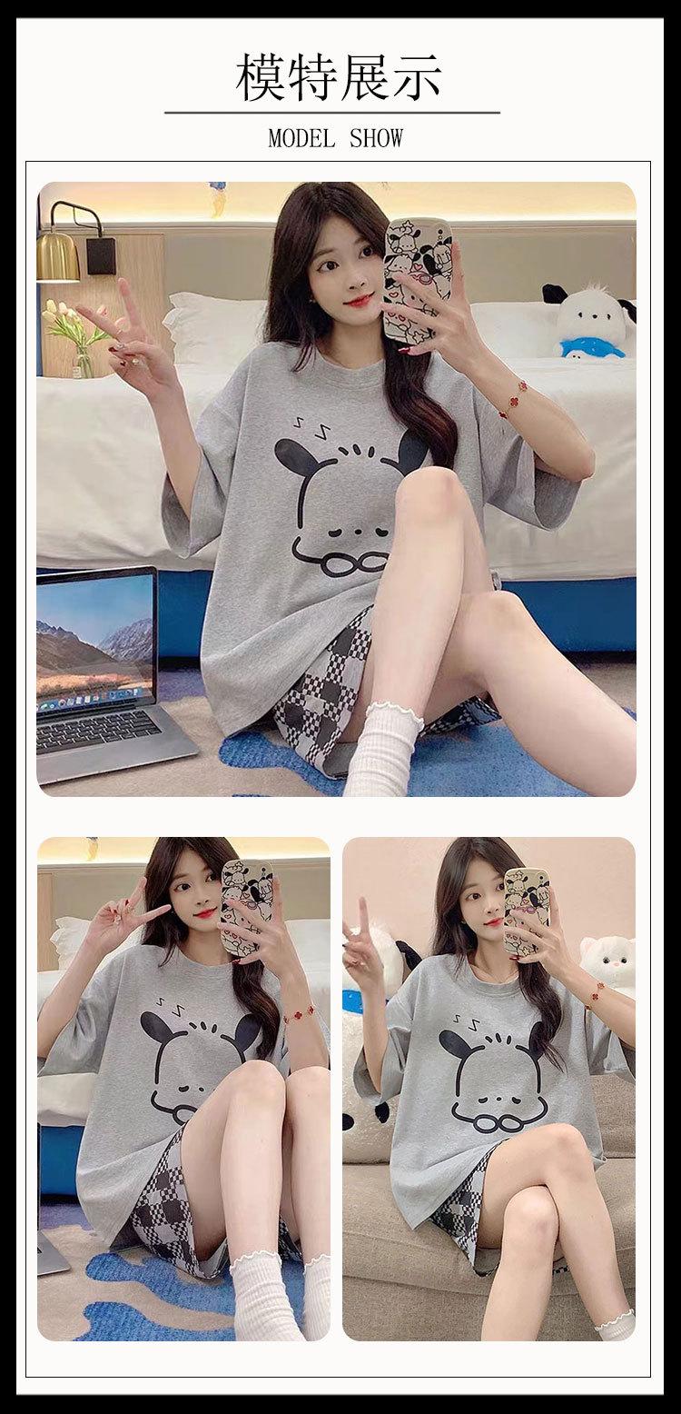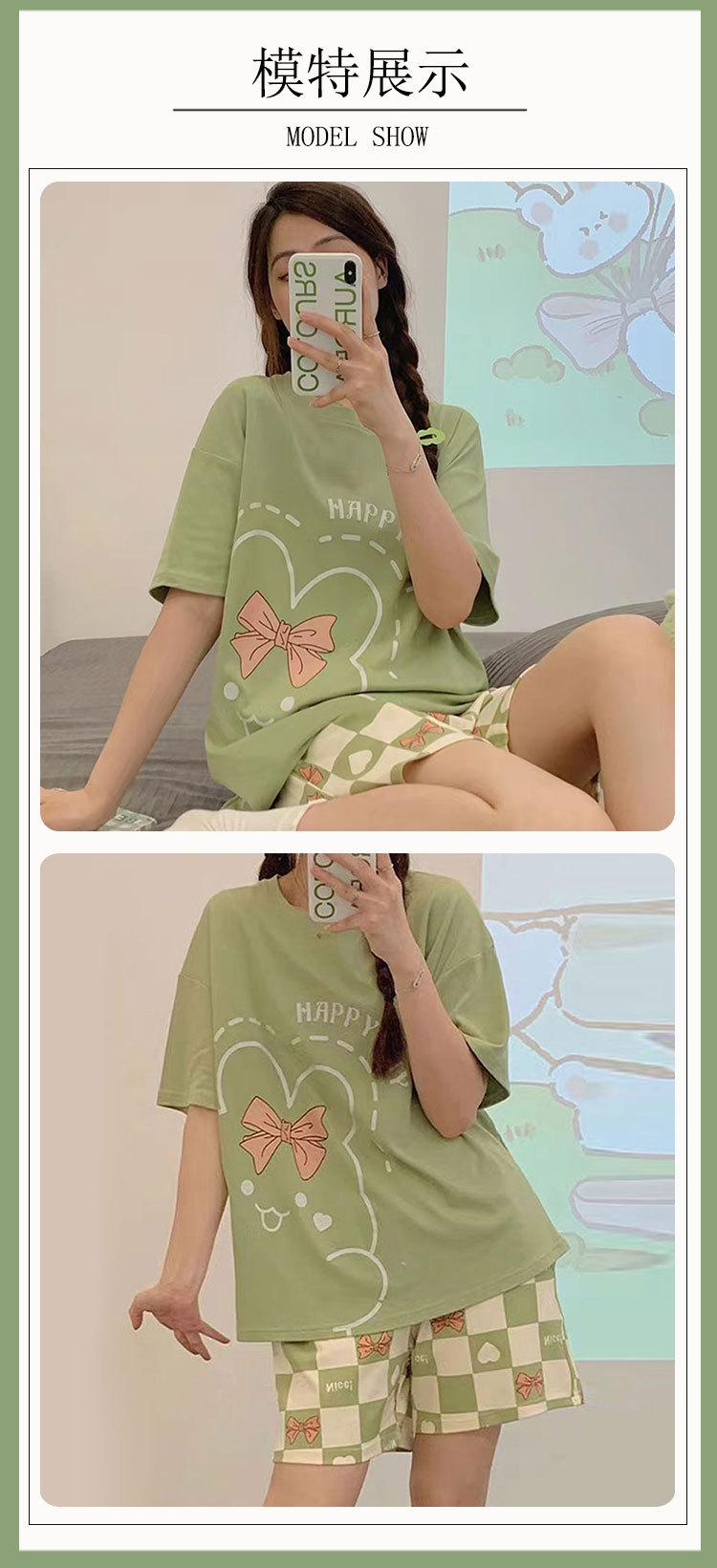 Pijamas de verano para mujer, de algodón puro, de manga corta, pantalones cortos, sencillos, informales, con dibujos animados, para niña, talla grande, ropa exterior para usar en casa.
