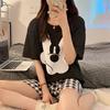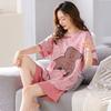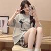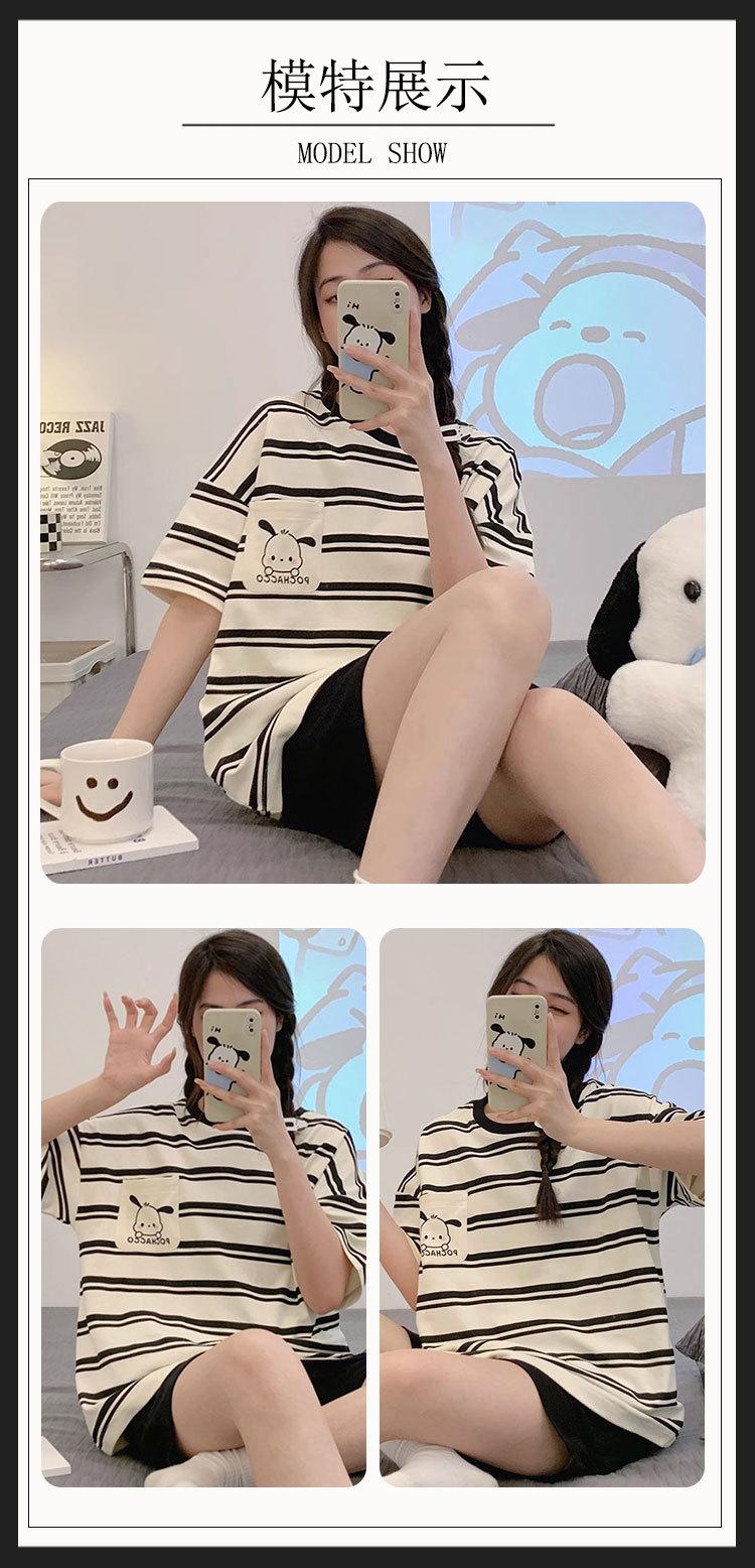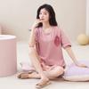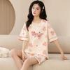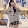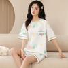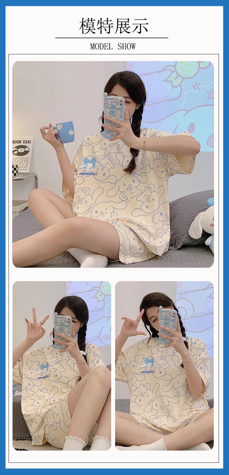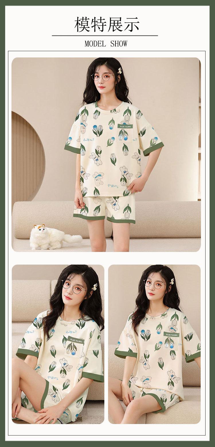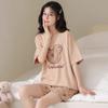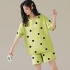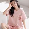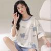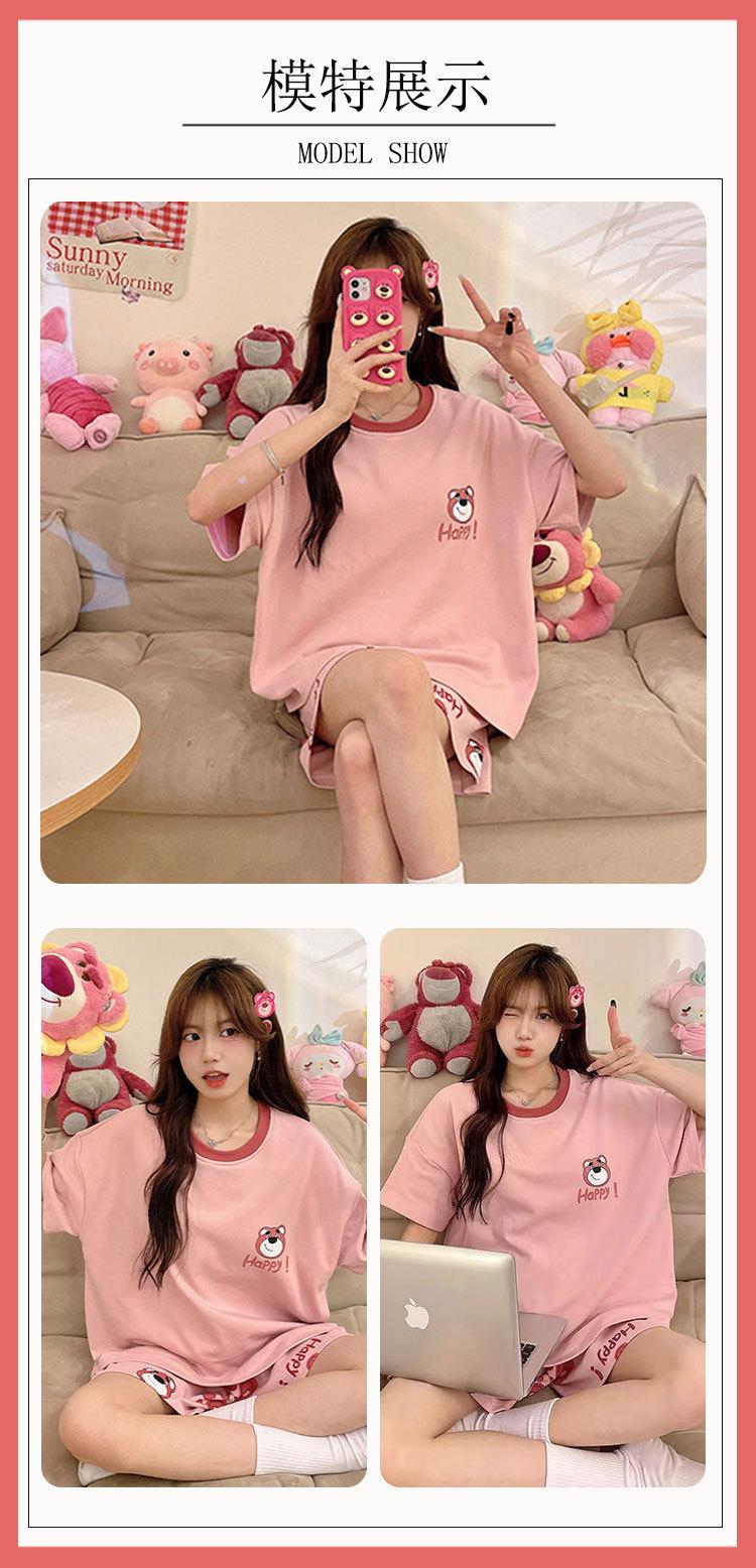 Pijamas de verano para mujer, de algodón puro, de manga corta, pantalones cortos, sencillos, informales, con dibujos animados, para niña, talla grande, ropa exterior para usar en casa.