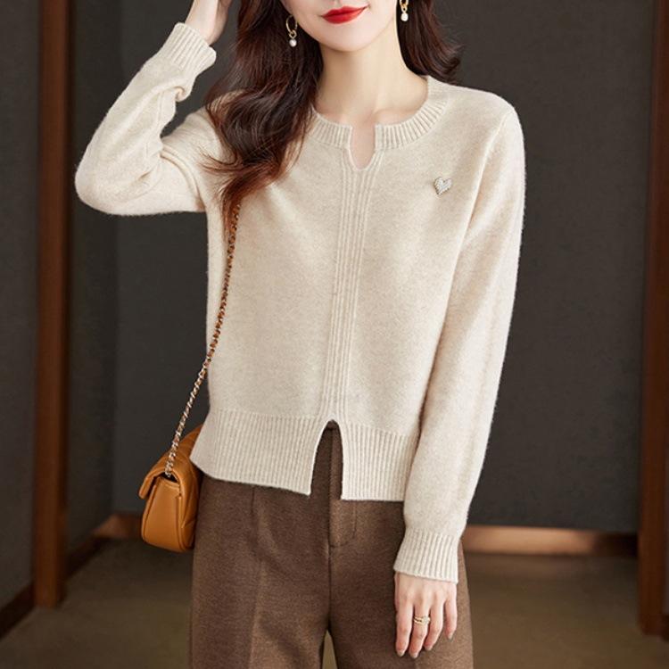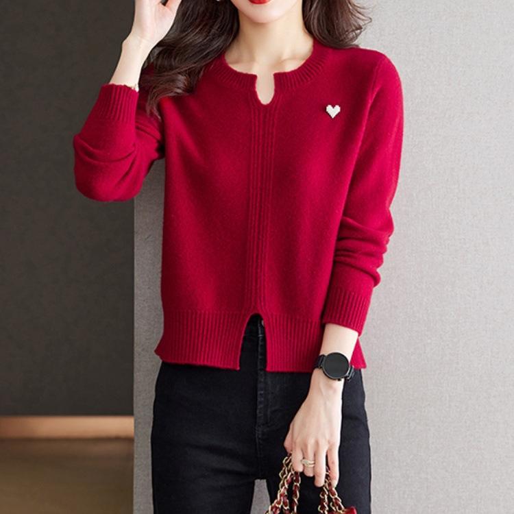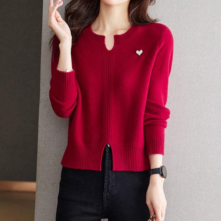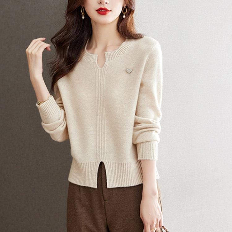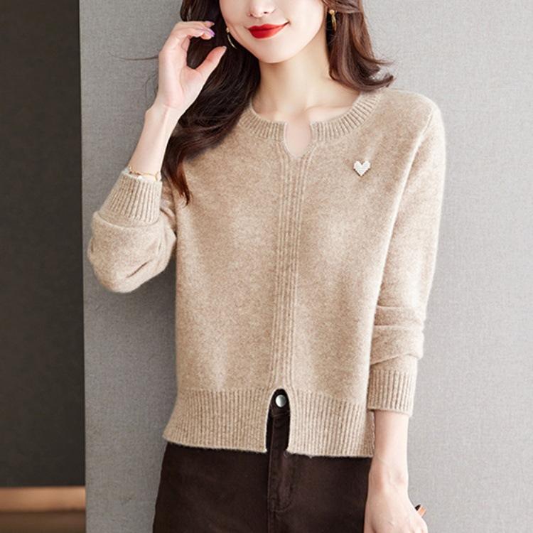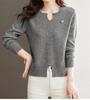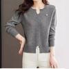 Suéter Tejido de Punto para Mujer Otoño e Invierno 2025 Nuevo Tejido de Punto Suelto a la Moda Cuello en V con Camiseta Corta Básica para Mujer