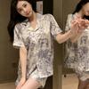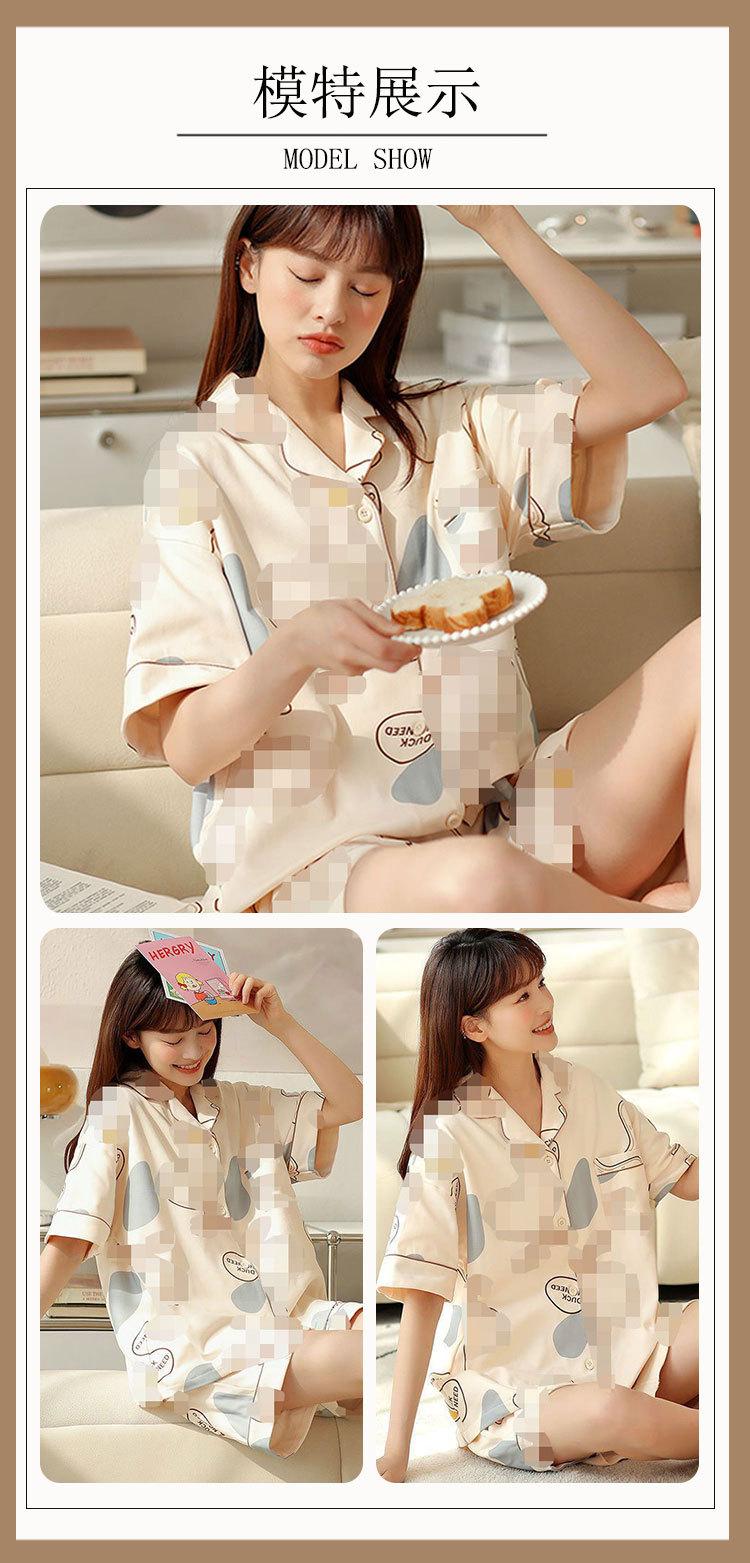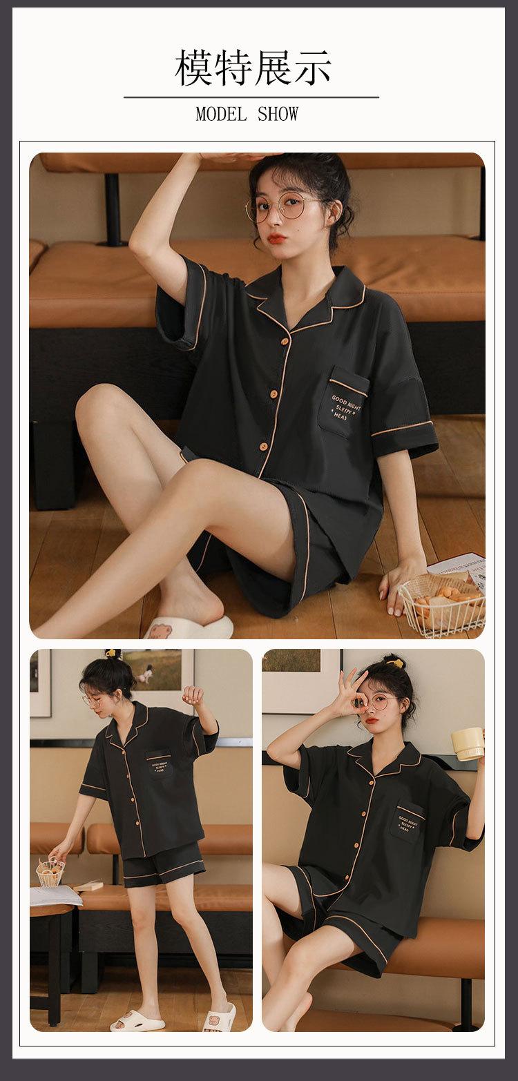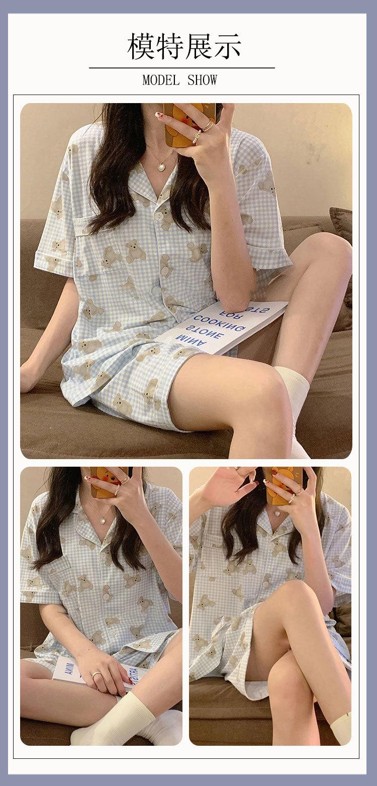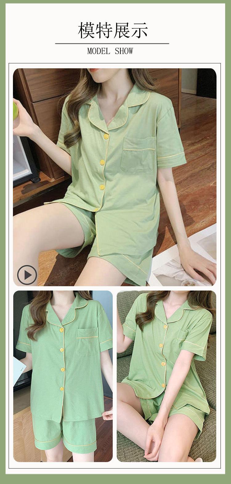 Pijama de Verano para Mujer Cárdigan Manga Corta Shorts Sencillo Casual de Alta Gama Talla Grande Traje de Ropa de Casa de Verano para Mujer