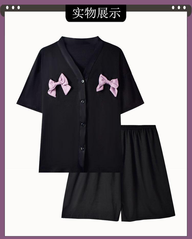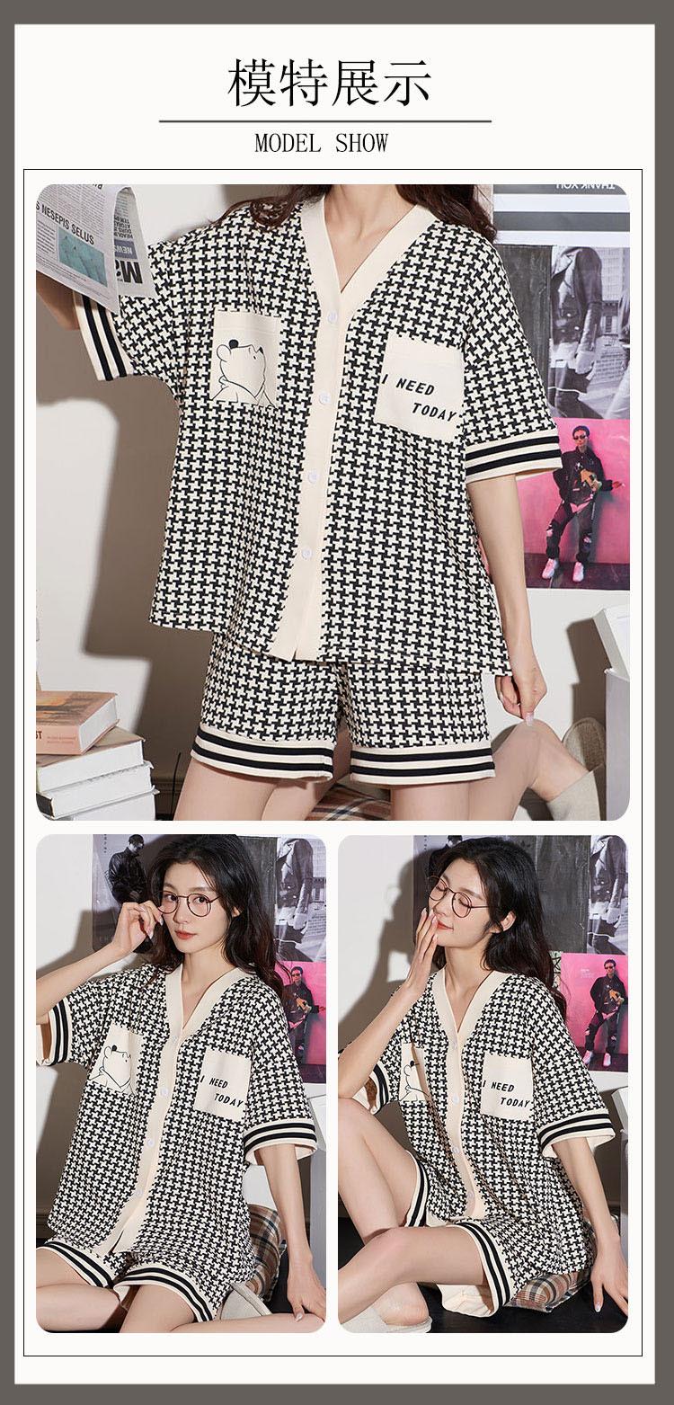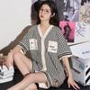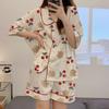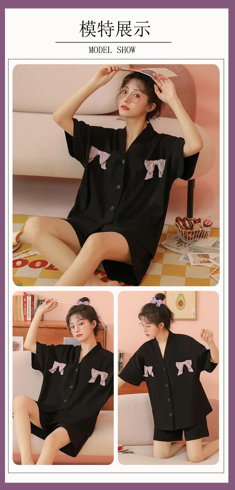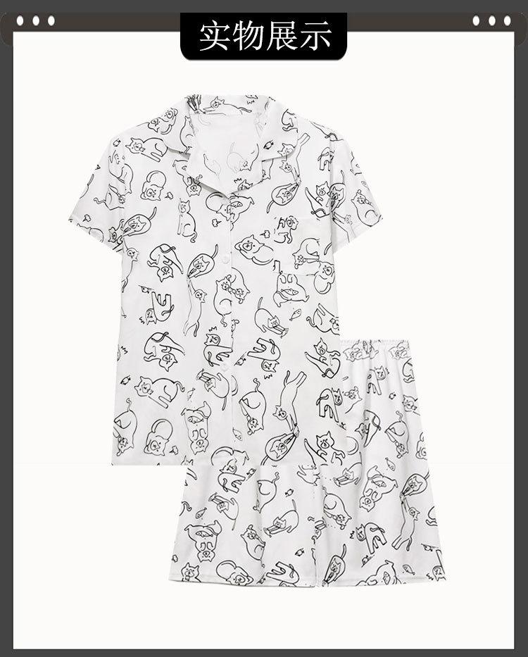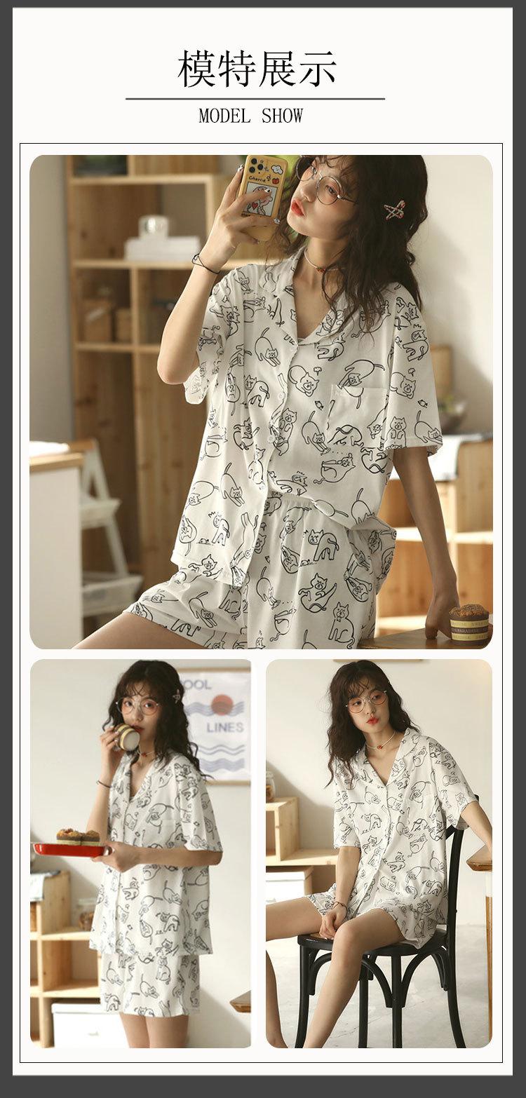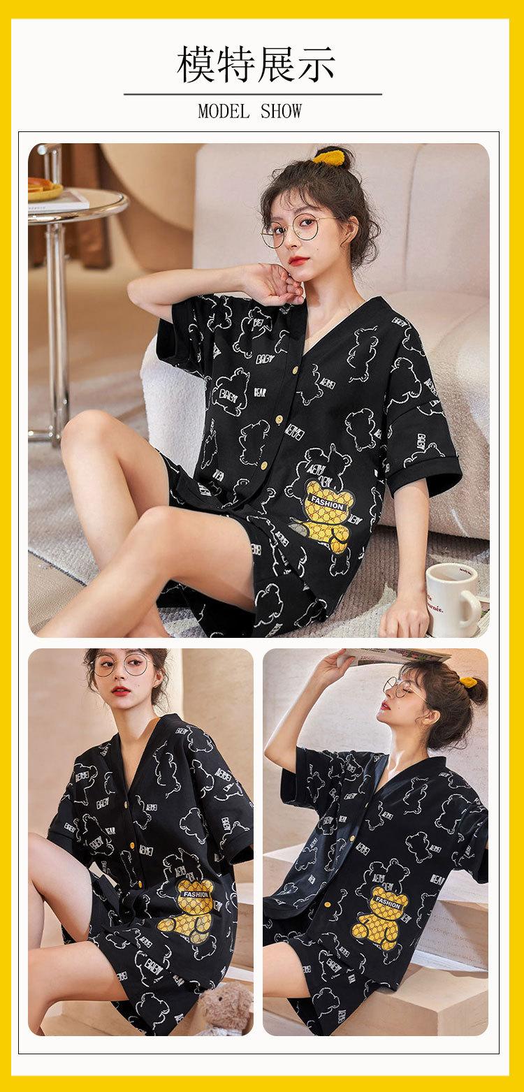 Pijama de Verano para Mujer Cárdigan Manga Corta Shorts Sencillo Casual de Alta Gama Talla Grande Traje de Ropa de Casa de Verano para Mujer