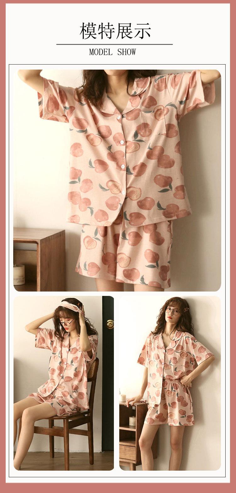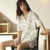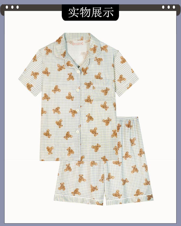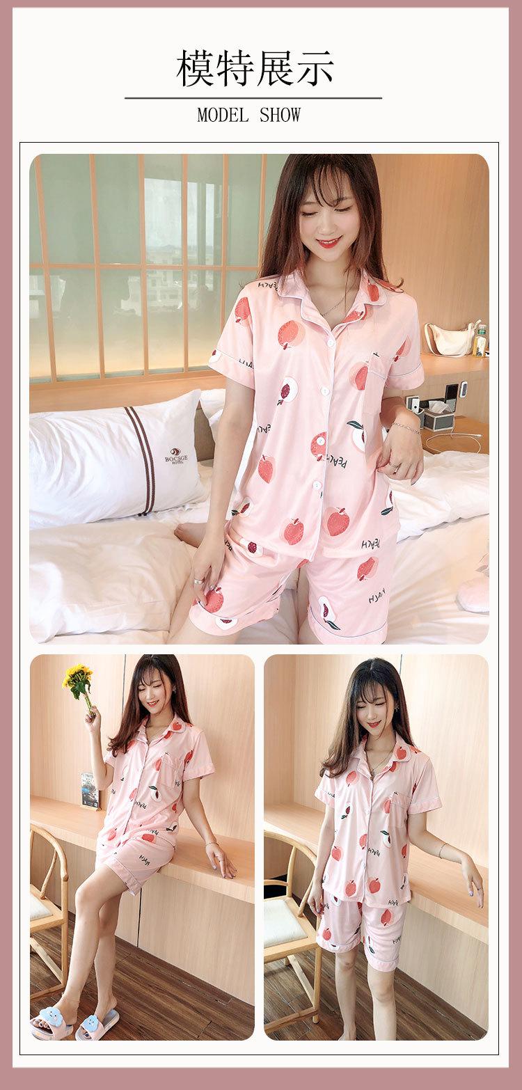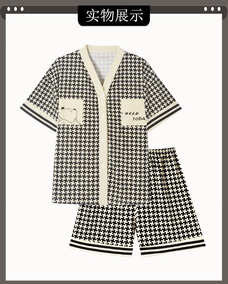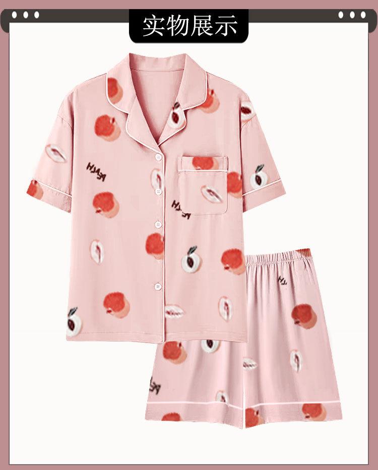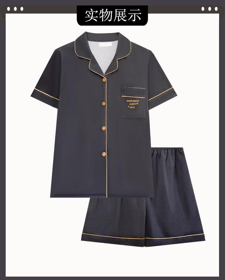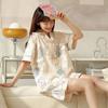 Pijama de Verano para Mujer Cárdigan Manga Corta Shorts Sencillo Casual de Alta Gama Talla Grande Traje de Ropa de Casa de Verano para Mujer