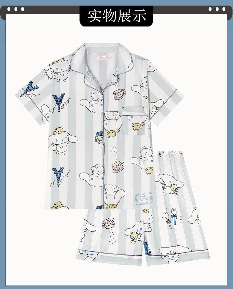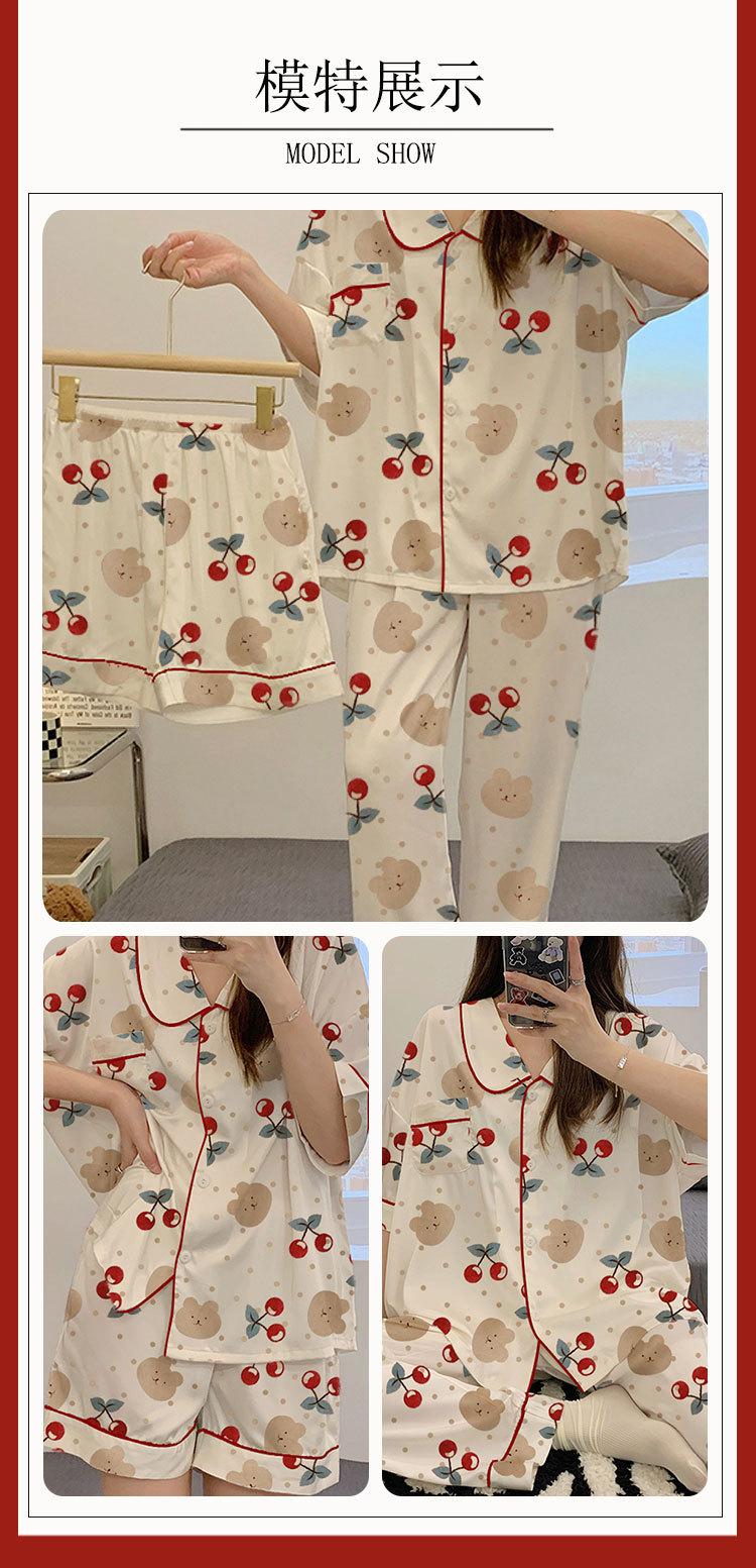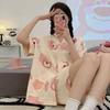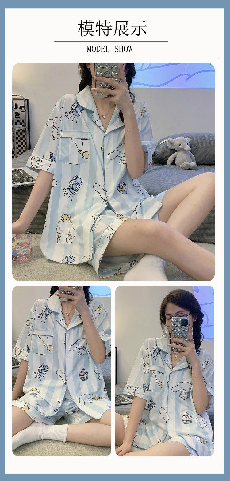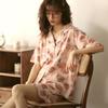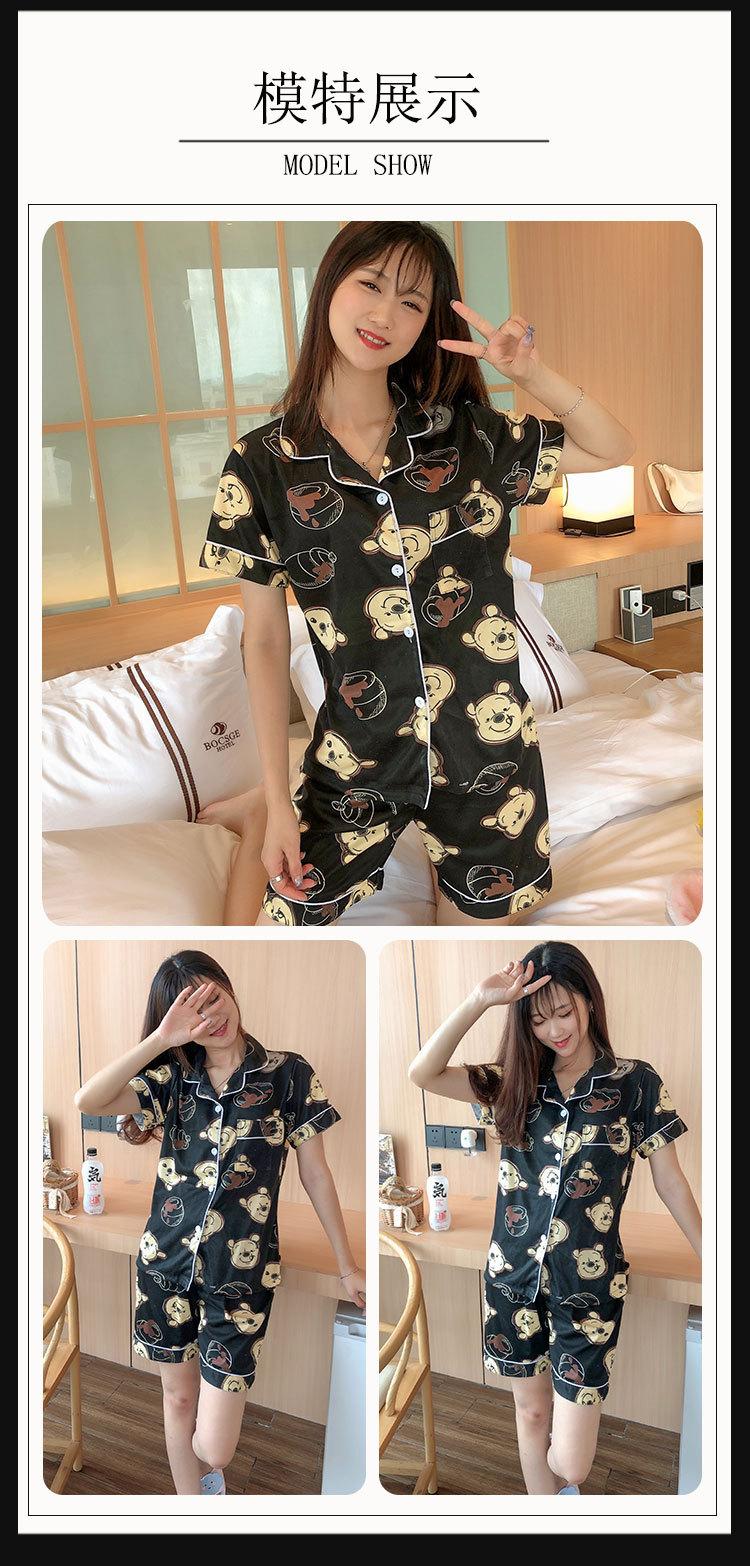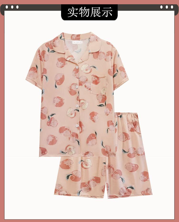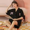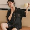 Pijama de Verano para Mujer Cárdigan Manga Corta Shorts Sencillo Casual de Alta Gama Talla Grande Traje de Ropa de Casa de Verano para Mujer