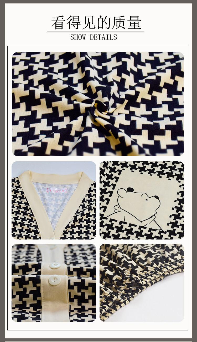 S Houndstooth Double Short V-Neck Kimono (Imitation Cotton)
