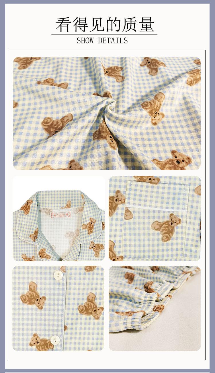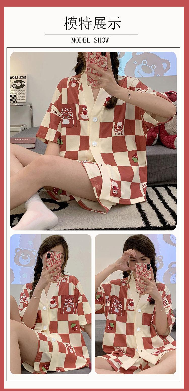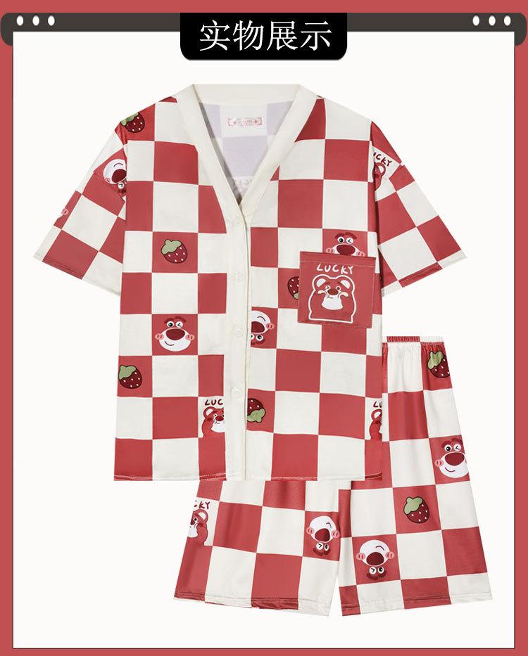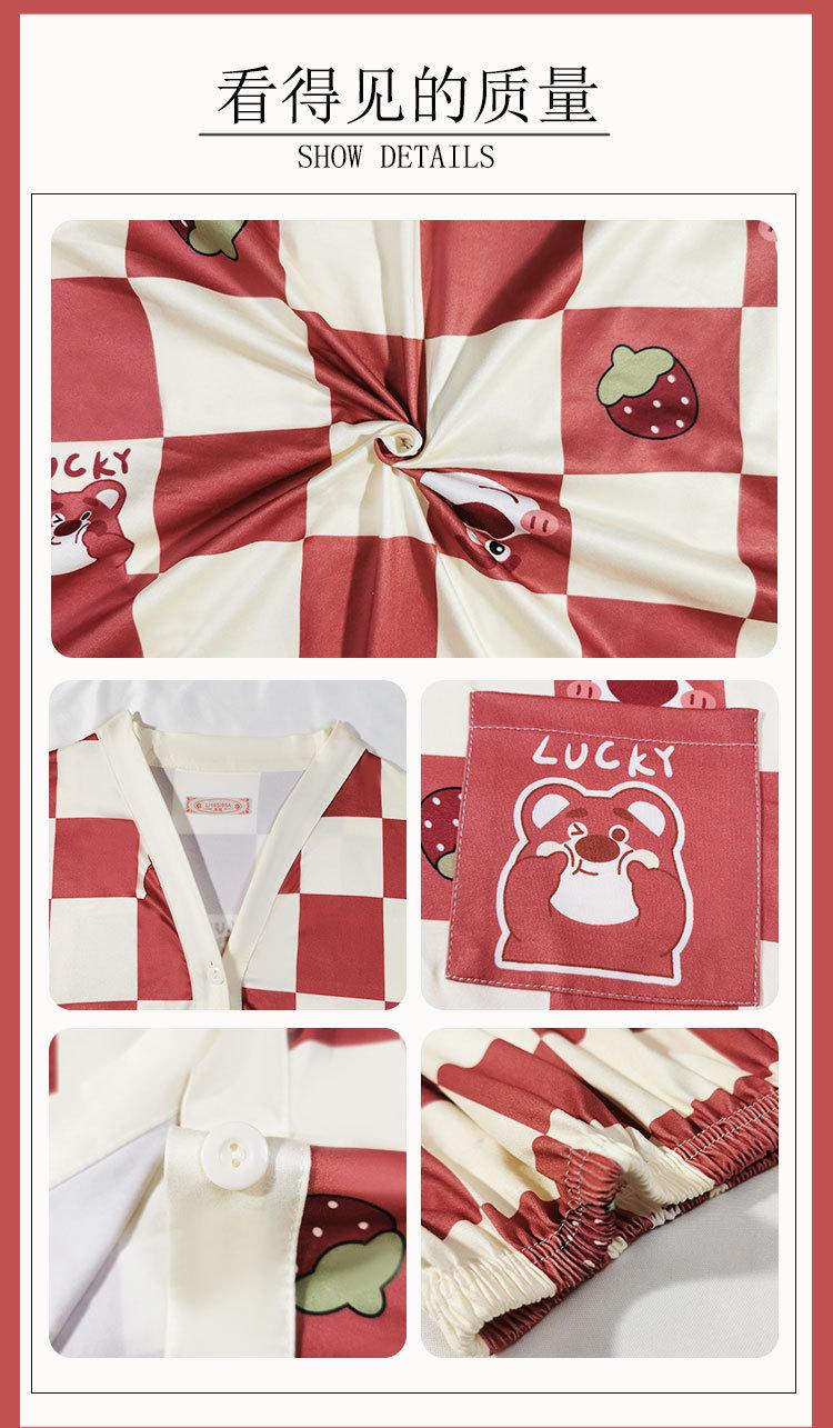 D.M-23 Check Strawberry Bear Double Short Kimono (Imitation Cotton)