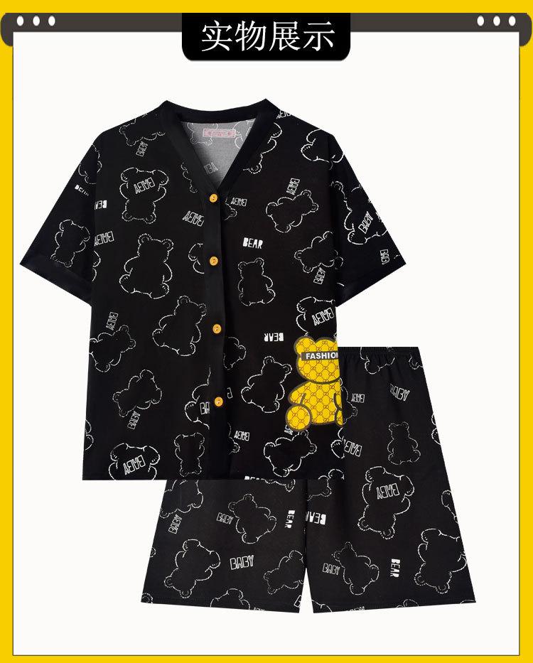 S Yellow Bear Double Short V-Neck Kimono (Imitation Cotton)