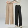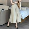 Pantalones anchos de pierna ancha para mujer, pantalón corto recto de algodón, informal, color caqui, para primavera y otoño de 2024