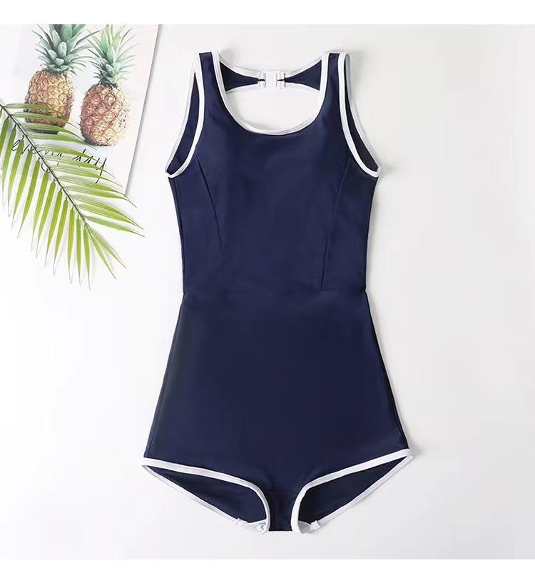 Traje de baño conservador coreano Ins de secado rápido para mujer, realzador de busto pequeño, adelgazante, deportivo, simple, tipo bóxer, para vacaciones en aguas termales