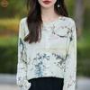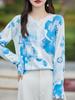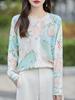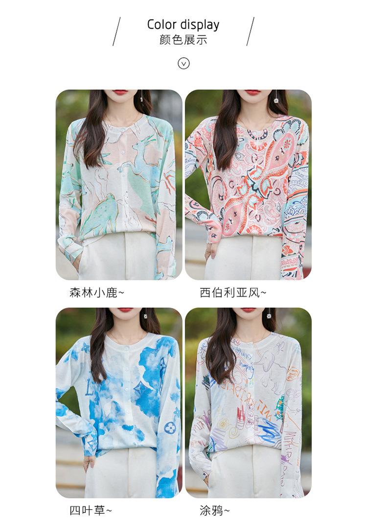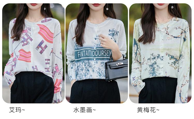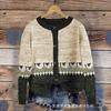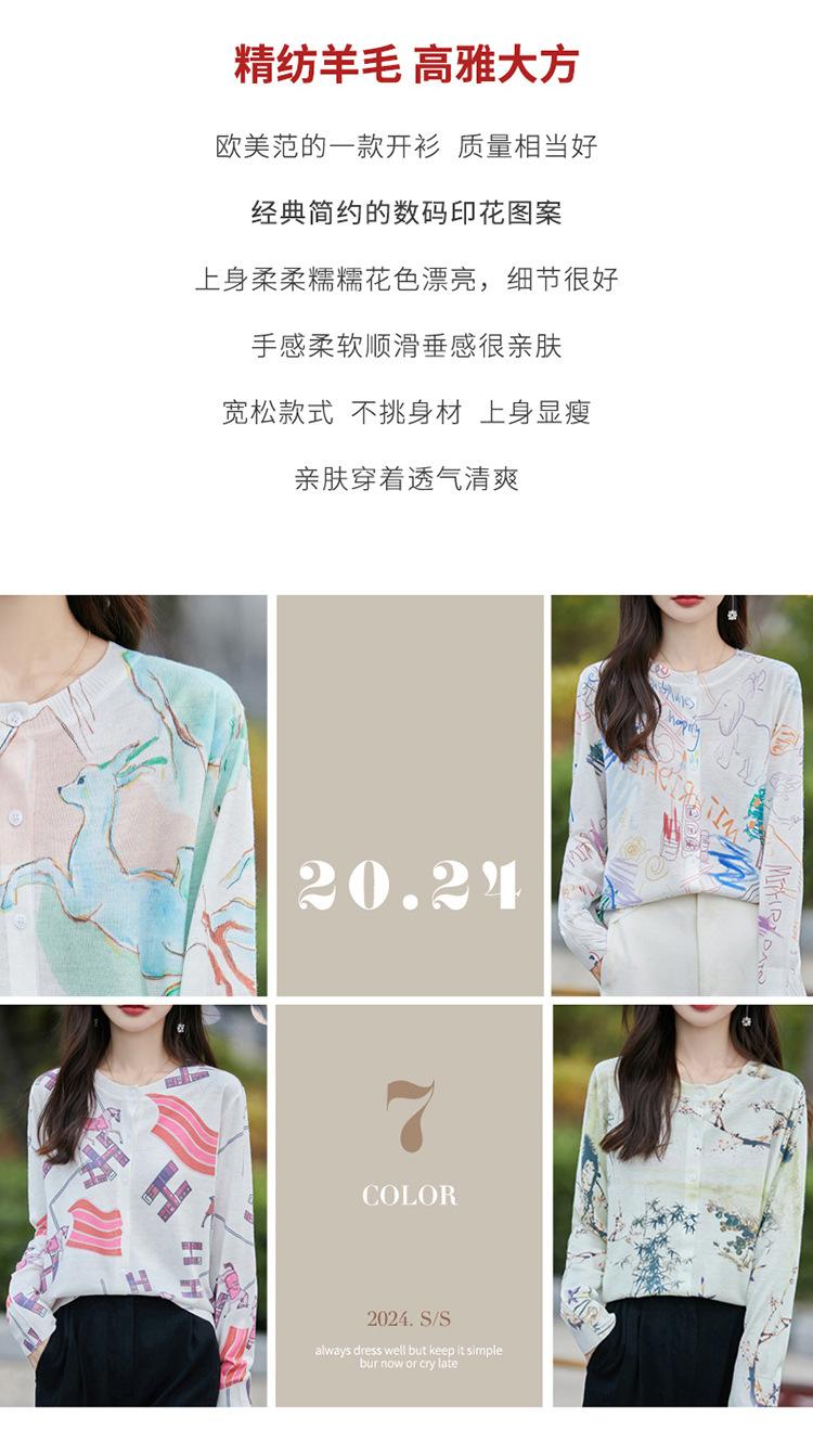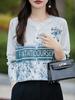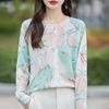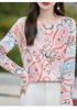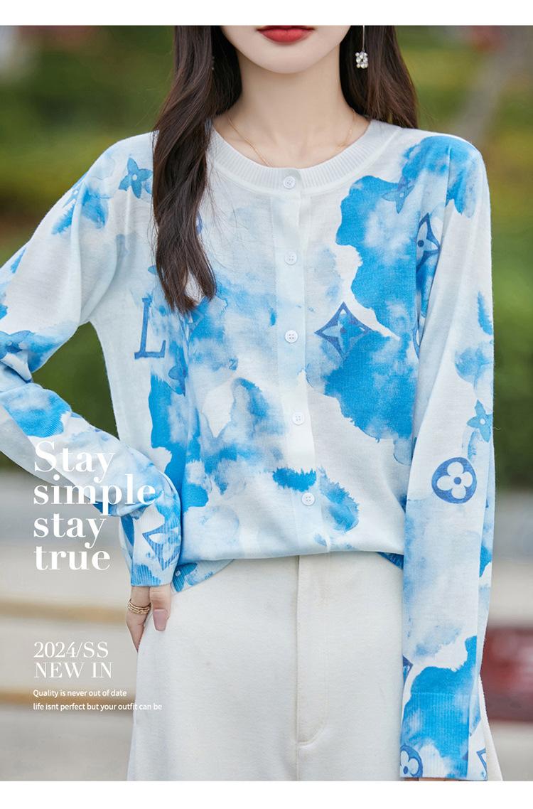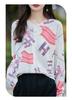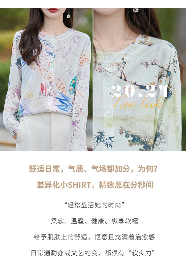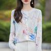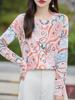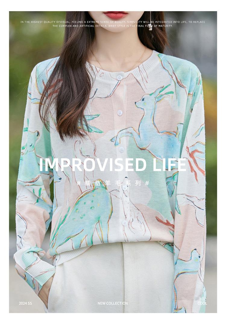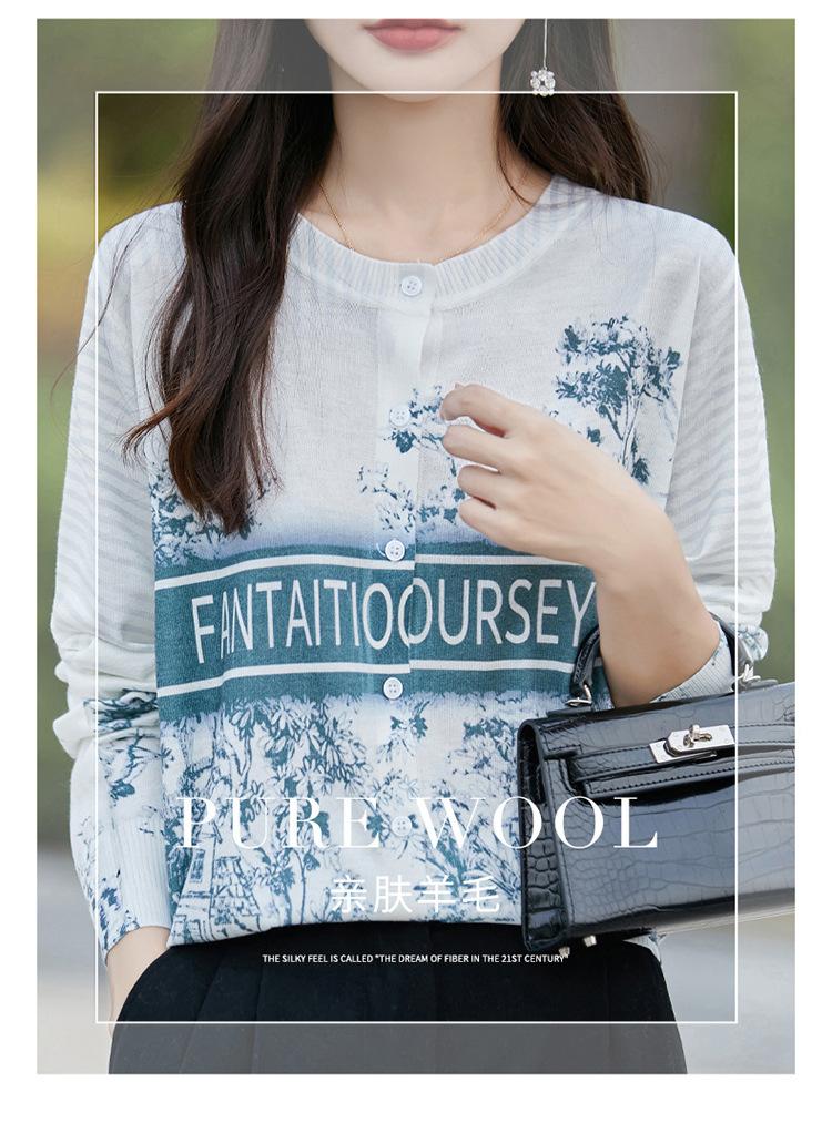 Cárdigan de Punto Fino de Lana Peinada Fino para Primavera y Otoño para Mujer Cuello Redondo Graffiti Estilo Literario Vintage Chaqueta Base de Manga Larga