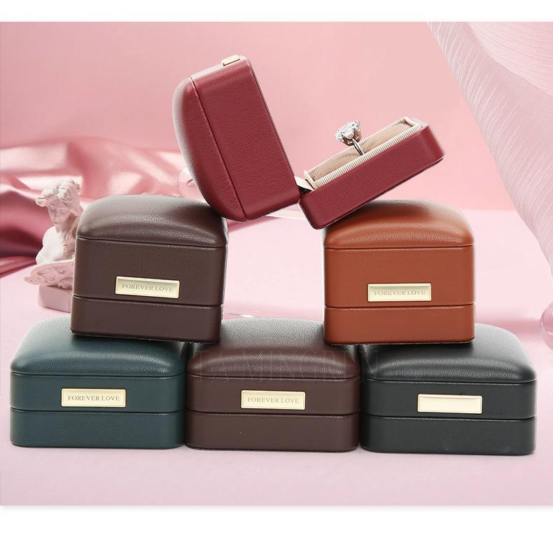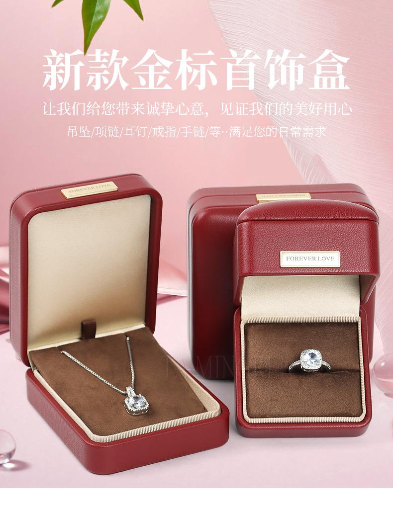 Joyero de cuero sintético ligero y lujoso, caja para anillos, colgantes, joyas de alta calidad, caja para pulseras y collares, caja de regalo con etiqueta dorada.