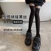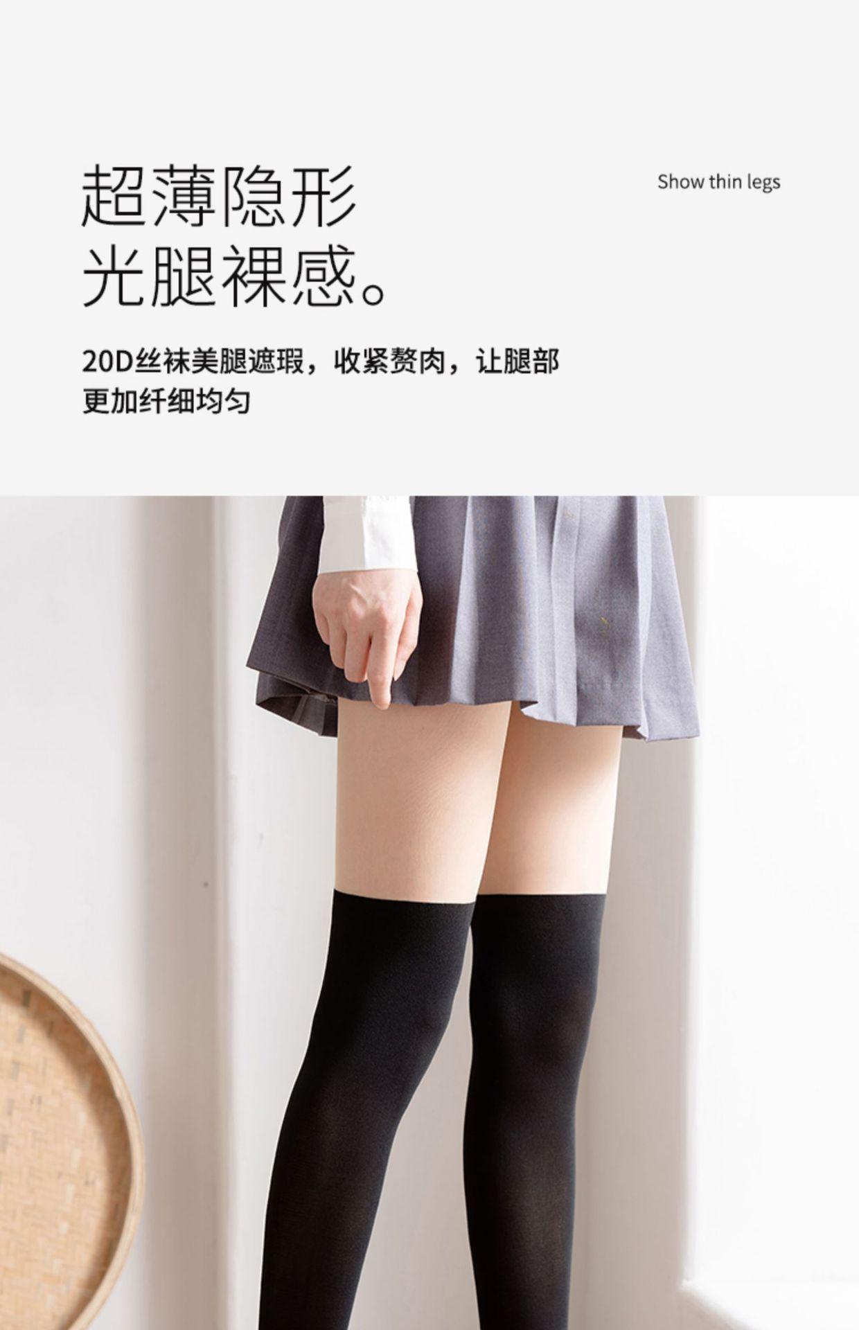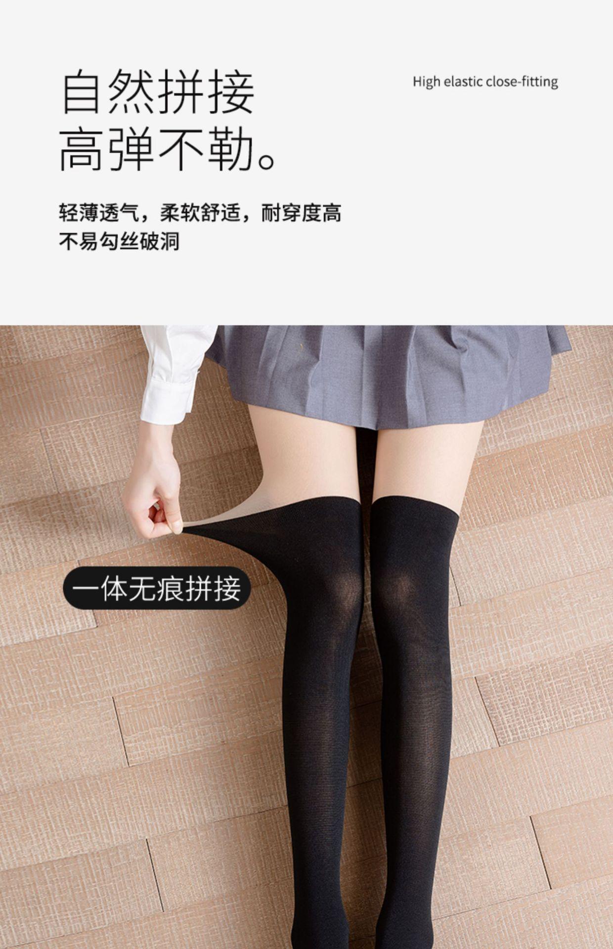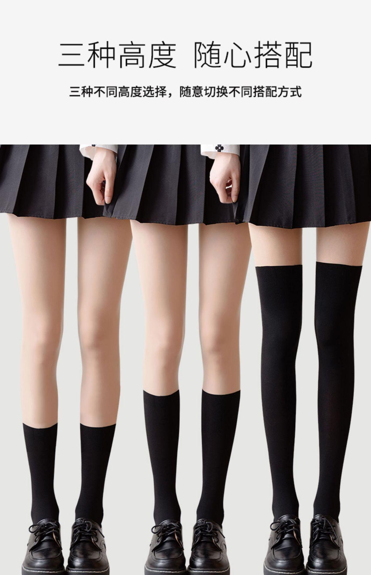 Medias negras para mujer, primavera y otoño, finas, con costuras JK, hasta la pantorrilla, de seda negra, falsas hasta el muslo, por encima de la rodilla.