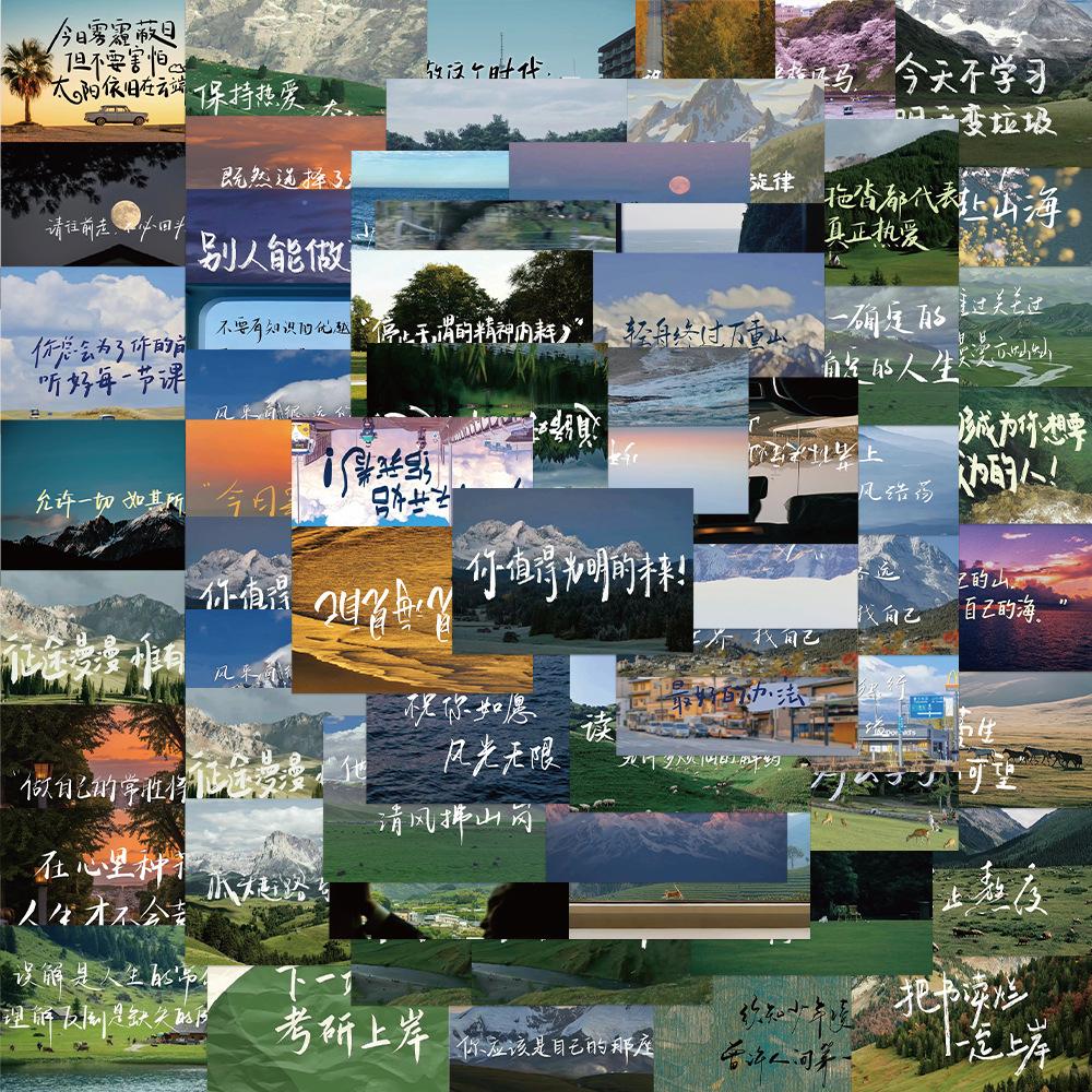 64 Stickers de Paisaje Texto Inspirador Materiales para Agenda Decoración de Funda de Teléfono Cuaderno para Tablet Stickers de Papelería Creativa