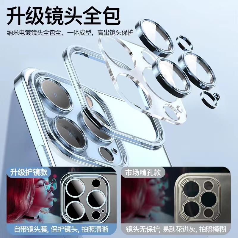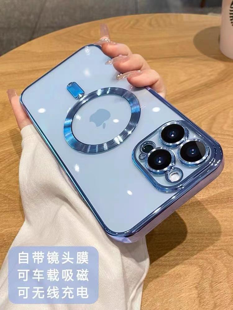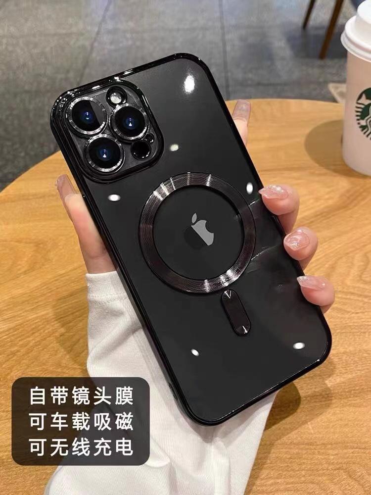 Con película para lente, Adecuado para funda transparente electrochapada para Apple 17, Funda magnética para iPhone 13, 12 Modelo nuevo, 11 Funda blanda de moda
