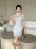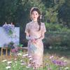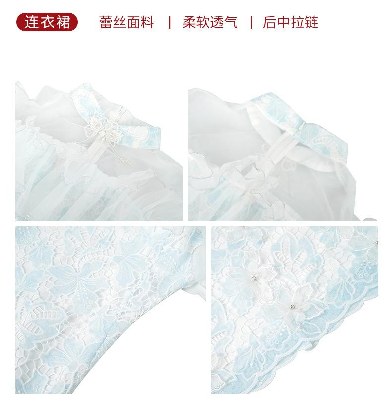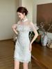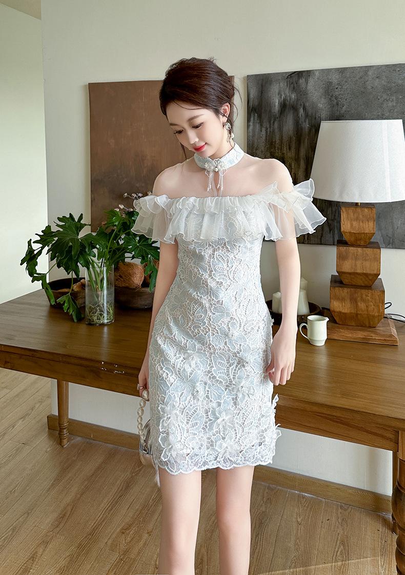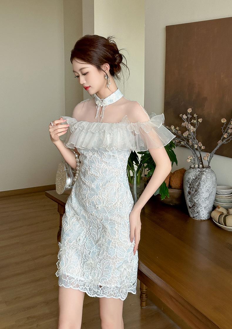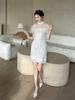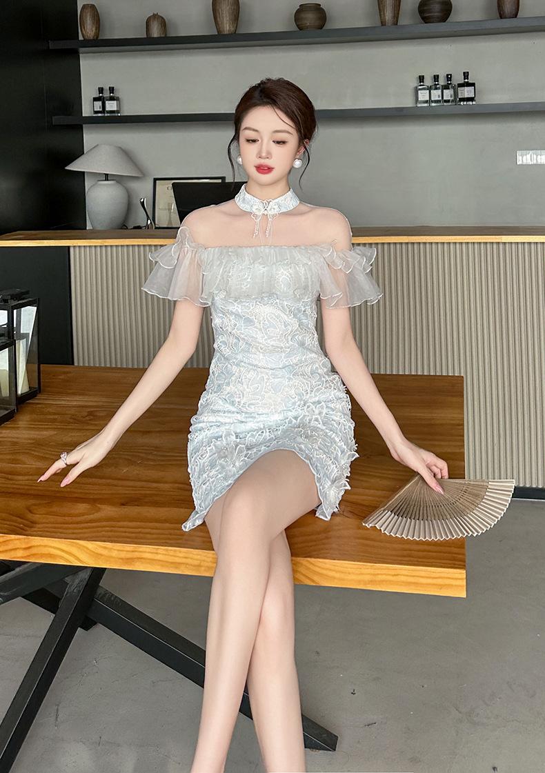 2025 Nueva Ropa de Verano para Mujer Nuevo Cheongsam Chinoiserie Mejorado Vestido de Encaje con Cintura con Volantes para Niña 2157