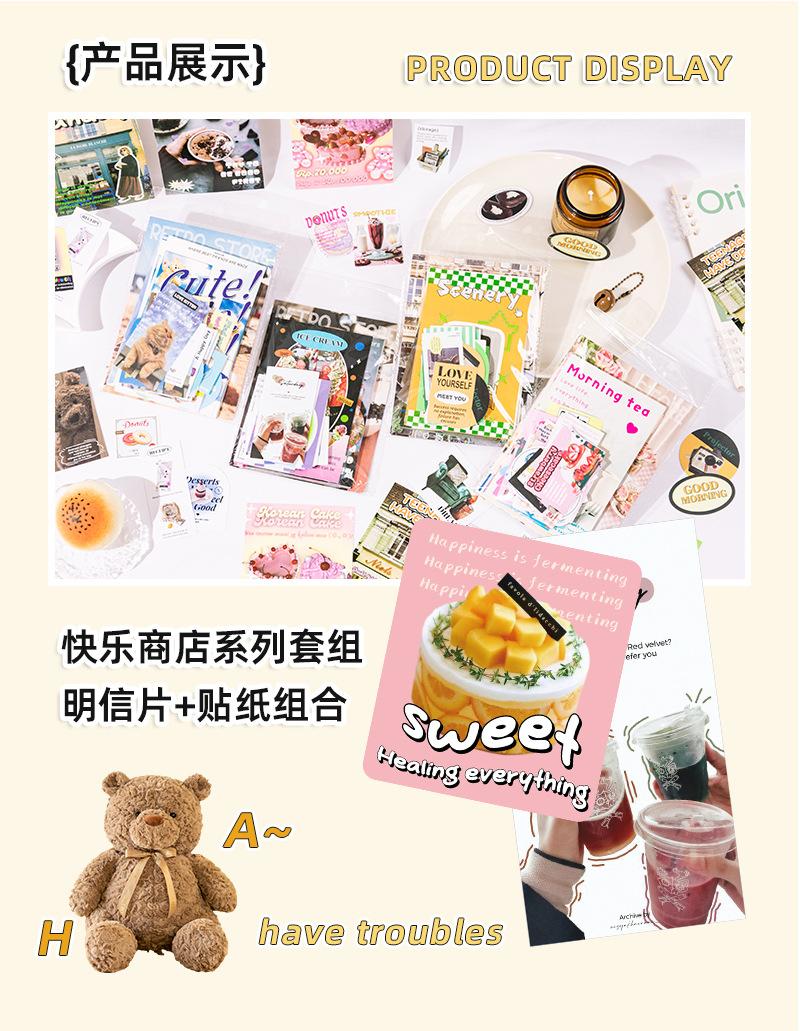 Xinqi Nuevo 50 Pegatinas Postales Happy Store Meng Chong Postre Pequeño Fresco DIY Cuenta de Mano Pegatina Impermeable
