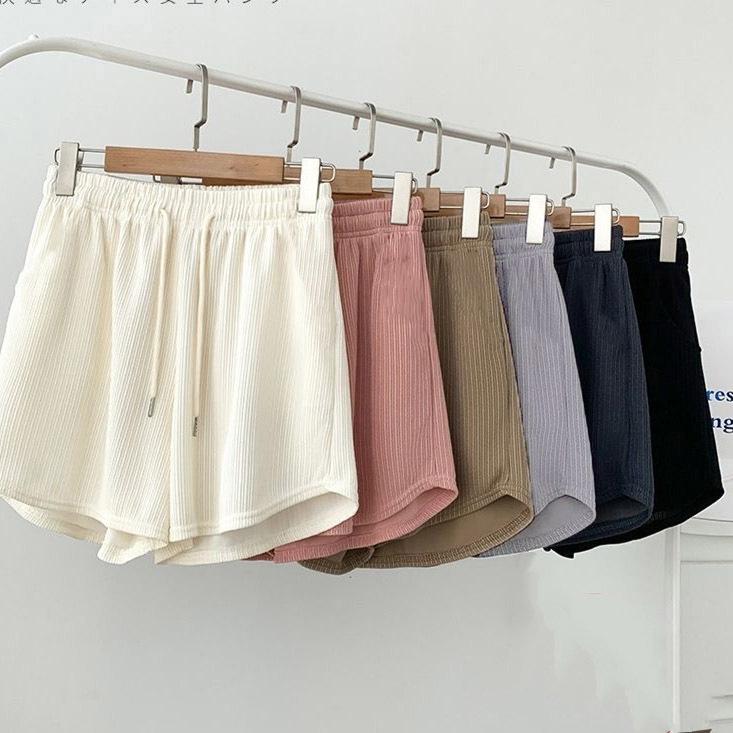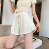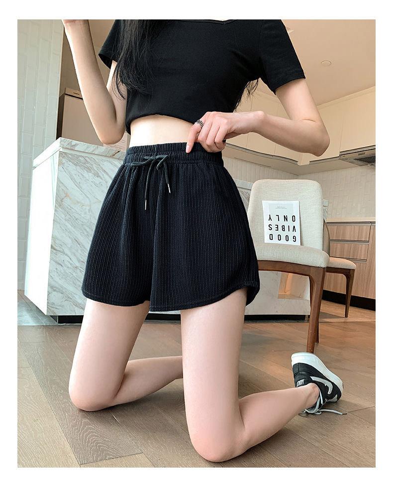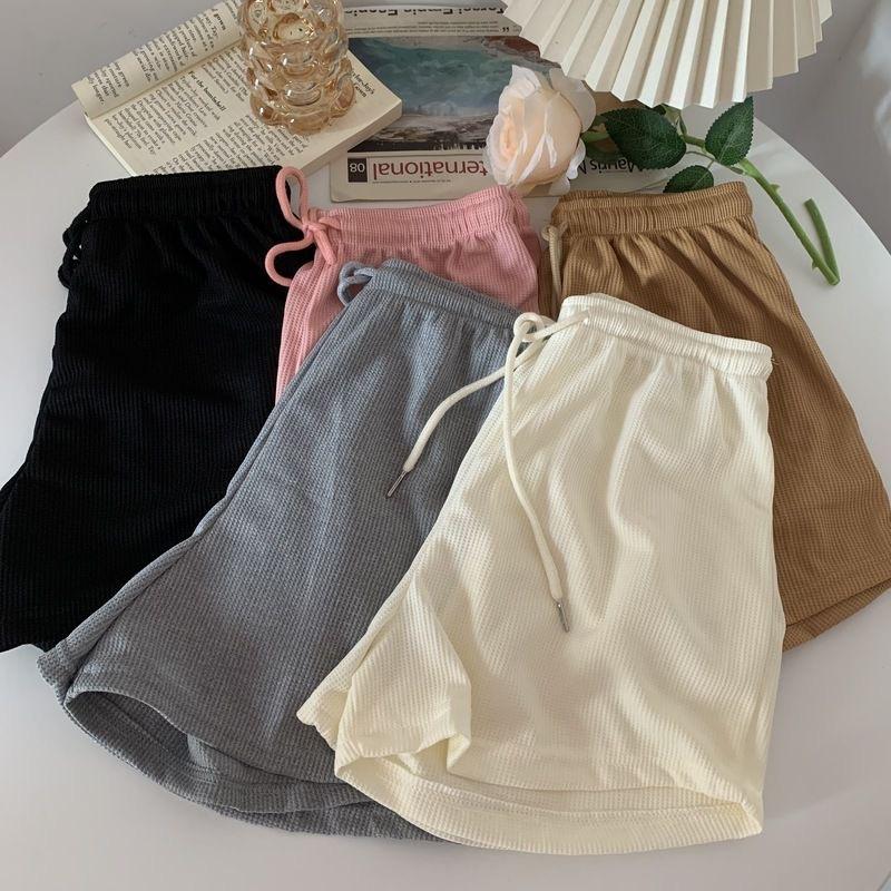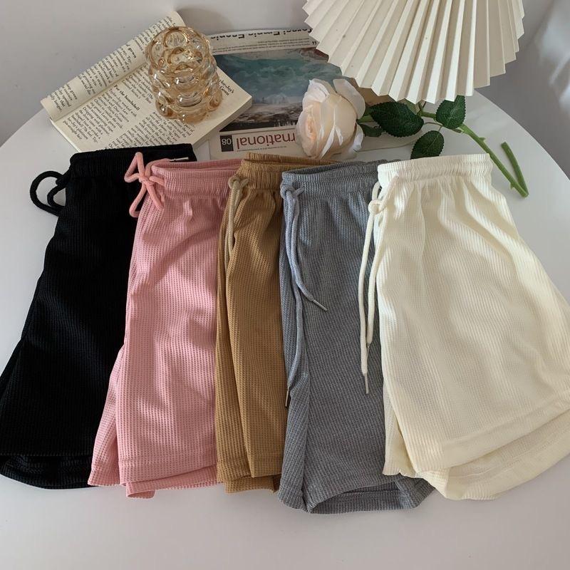 Shorts Deportivos para Mujer Waffle Casual Versátil para Casa Pantalones Línea A Ropa Exterior Cordón Nuevo Cintura Alta Slim