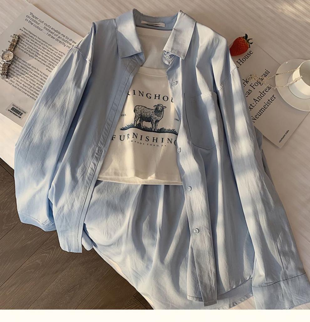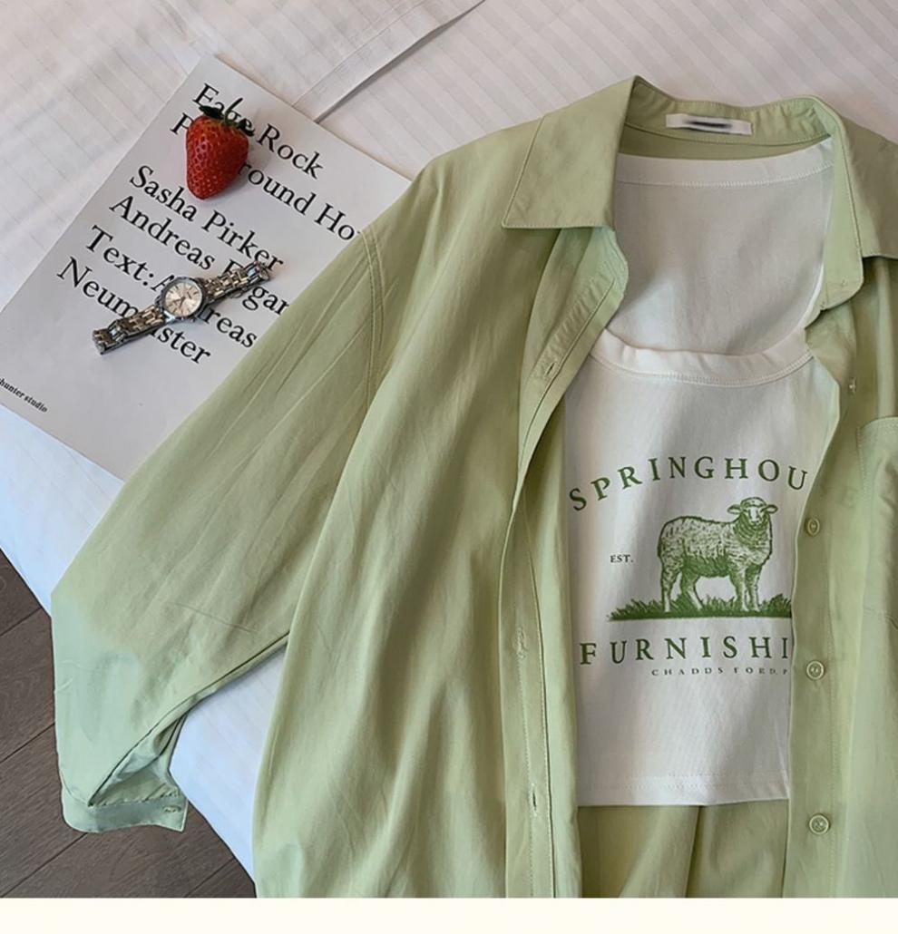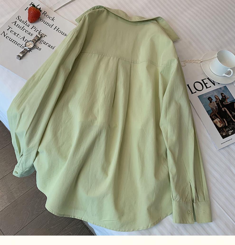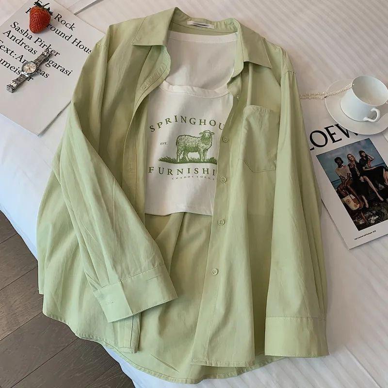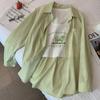 Camisa verde estilo perezoso para mujer, cárdigan exterior holgado de estilo coreano para primavera y otoño, chaqueta fina que combina con todo y que protege del sol para verano.