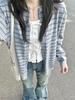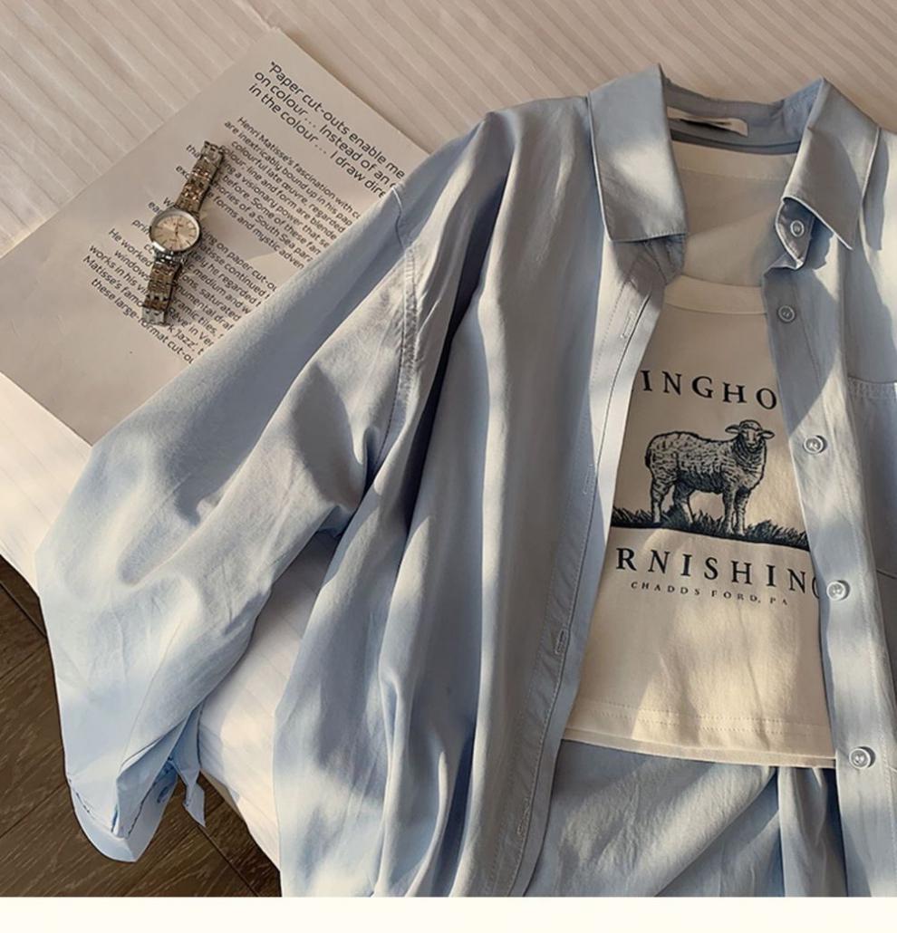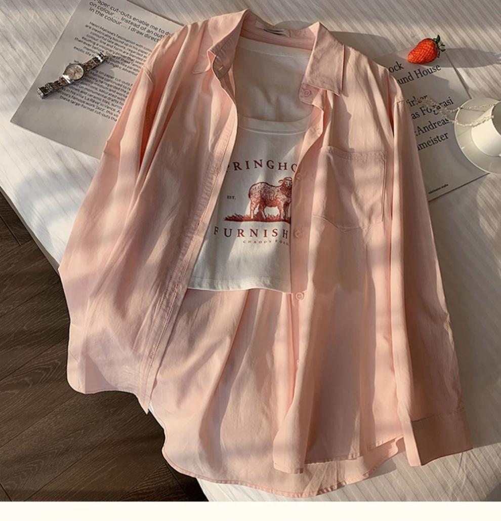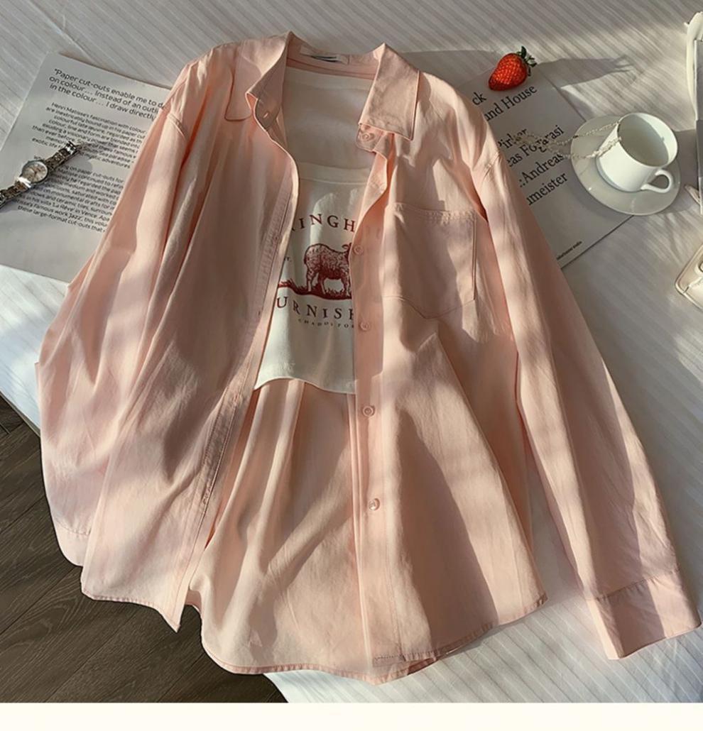 Camisa verde estilo perezoso para mujer, cárdigan exterior holgado de estilo coreano para primavera y otoño, chaqueta fina que combina con todo y que protege del sol para verano.