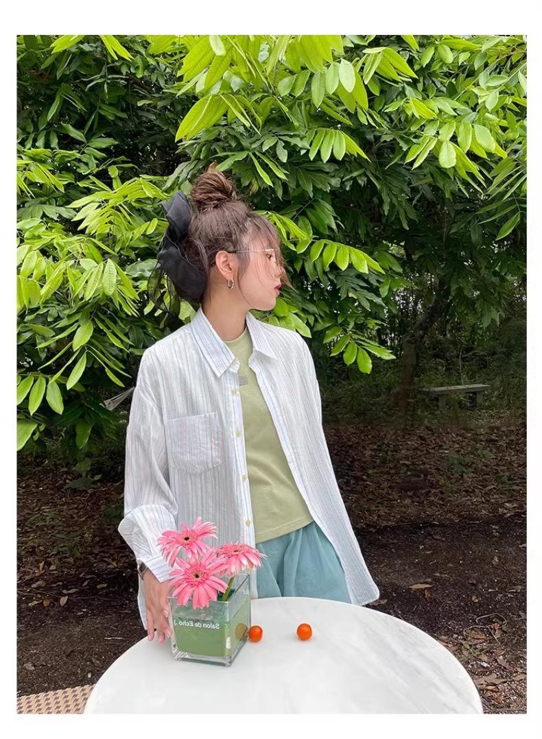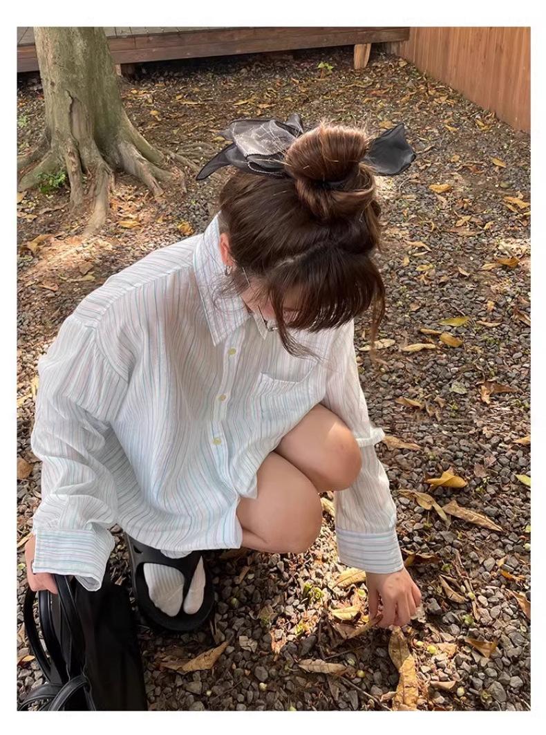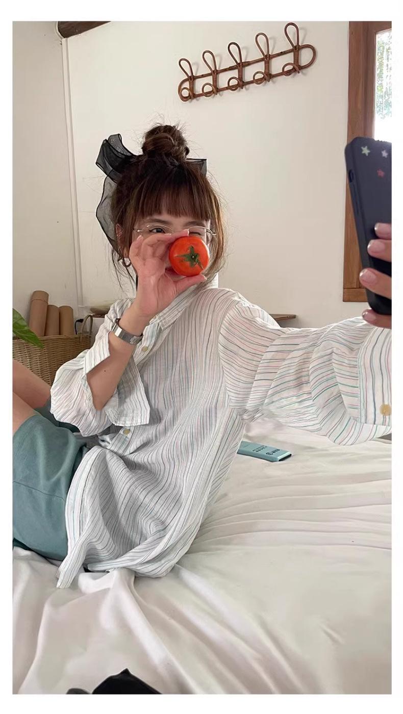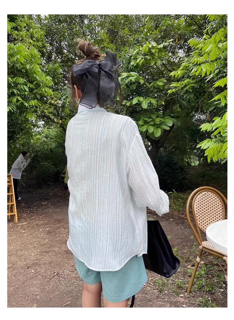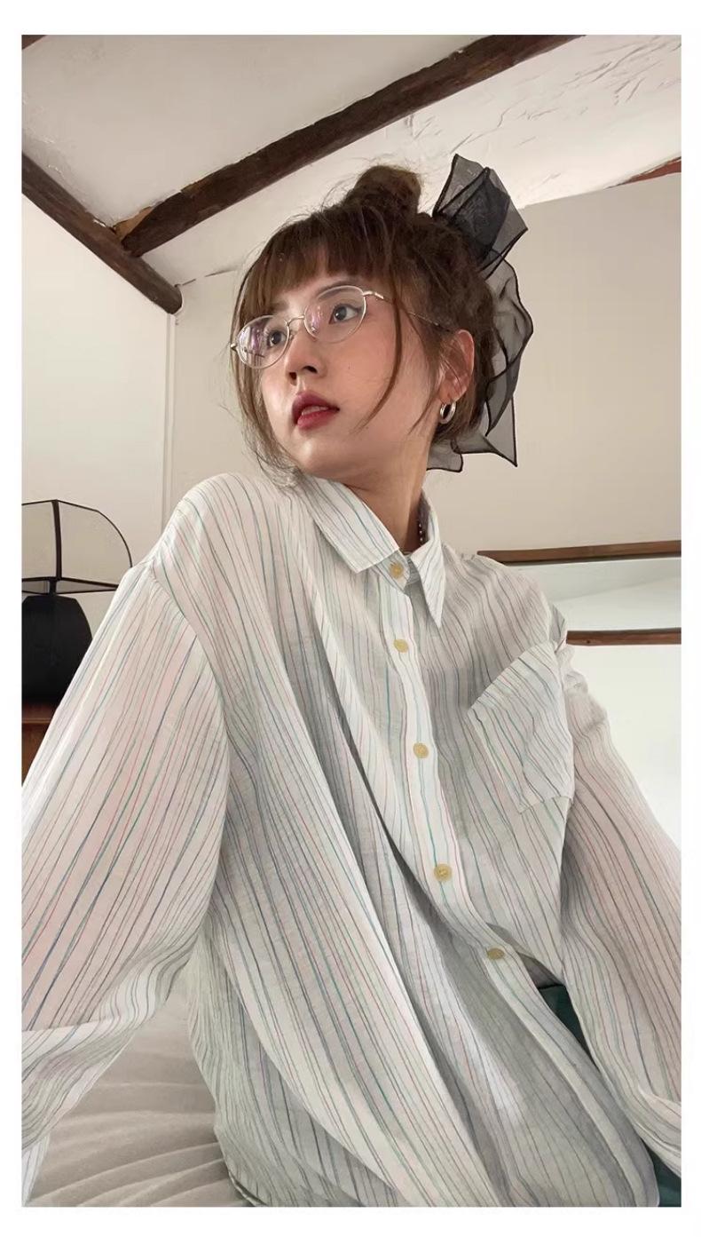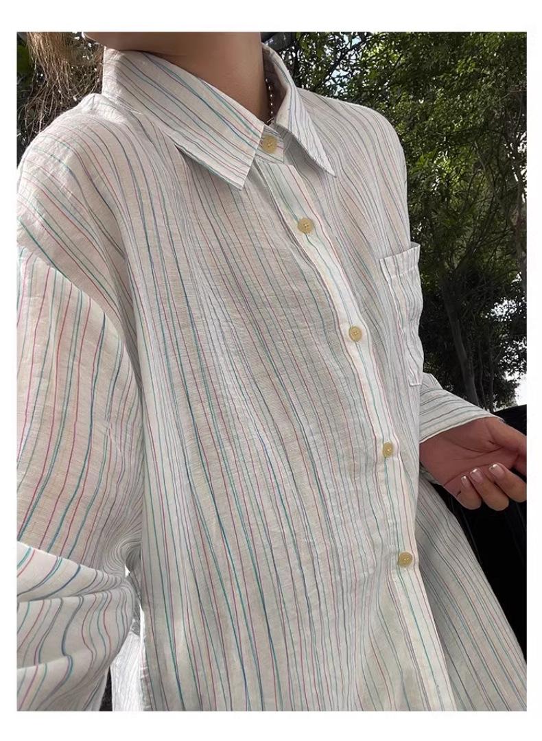 Camisa de protección solar para mujer, abrigo blanco a rayas, fino, suelto, primavera y otoño, nueva camisa de manga larga, top de moda