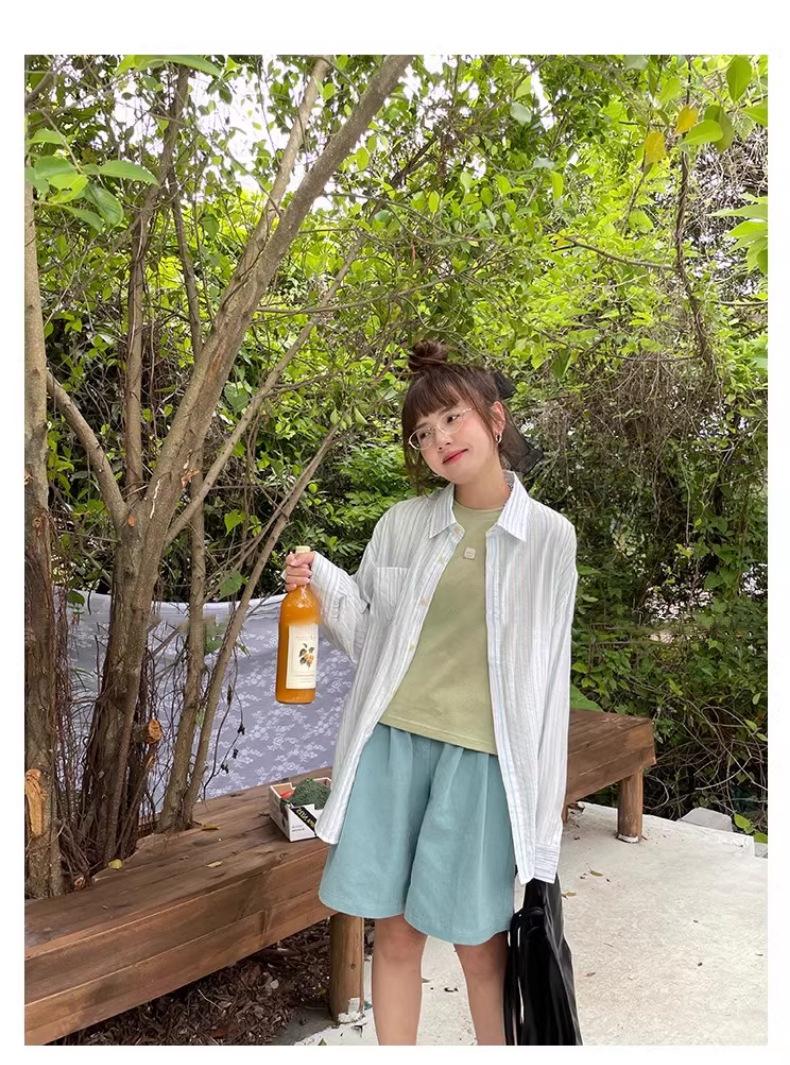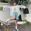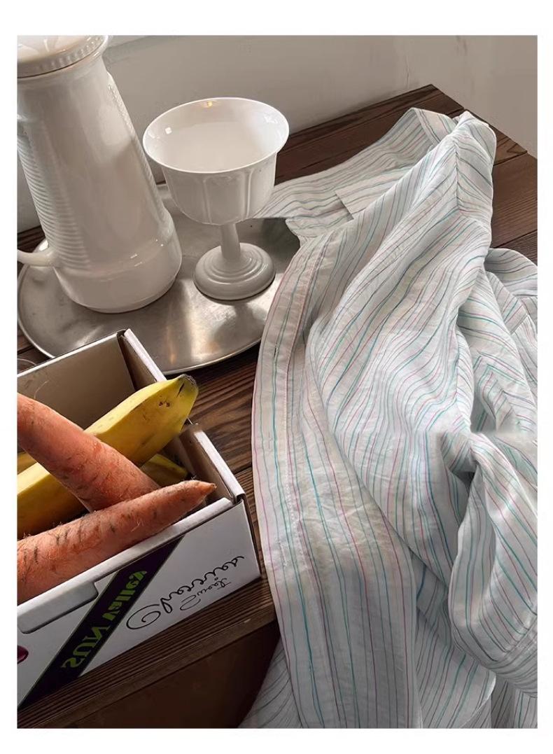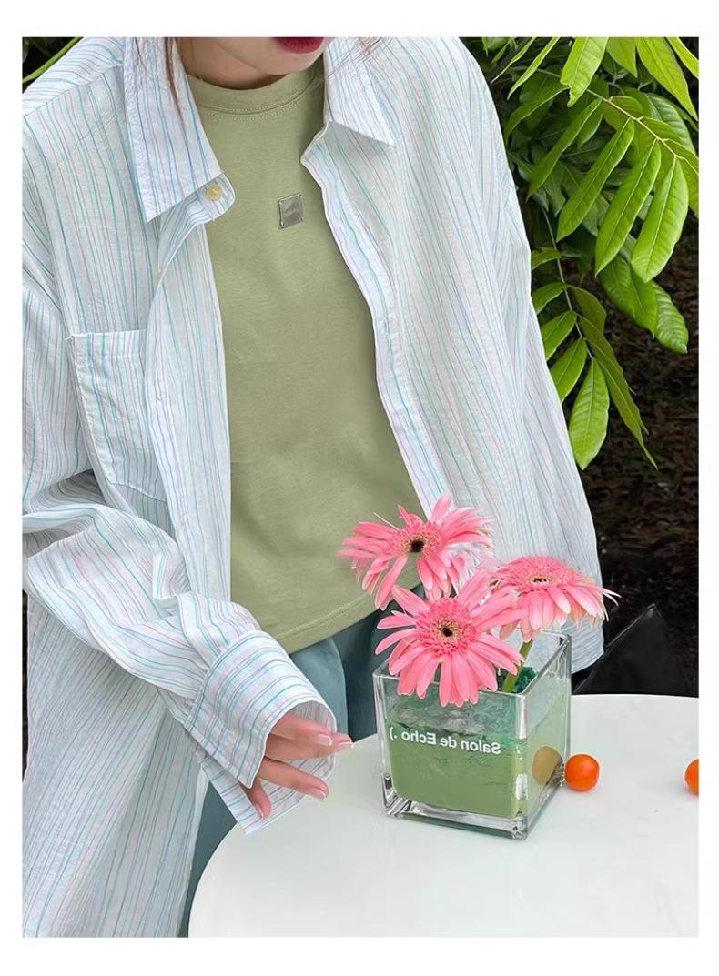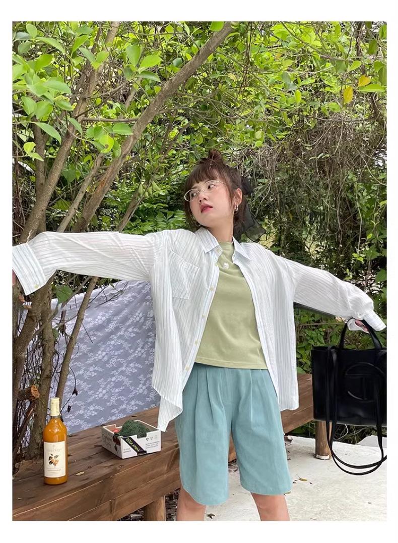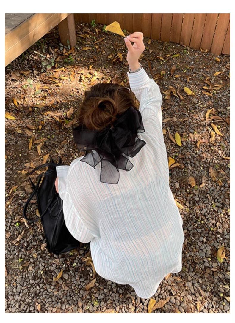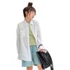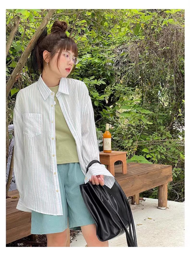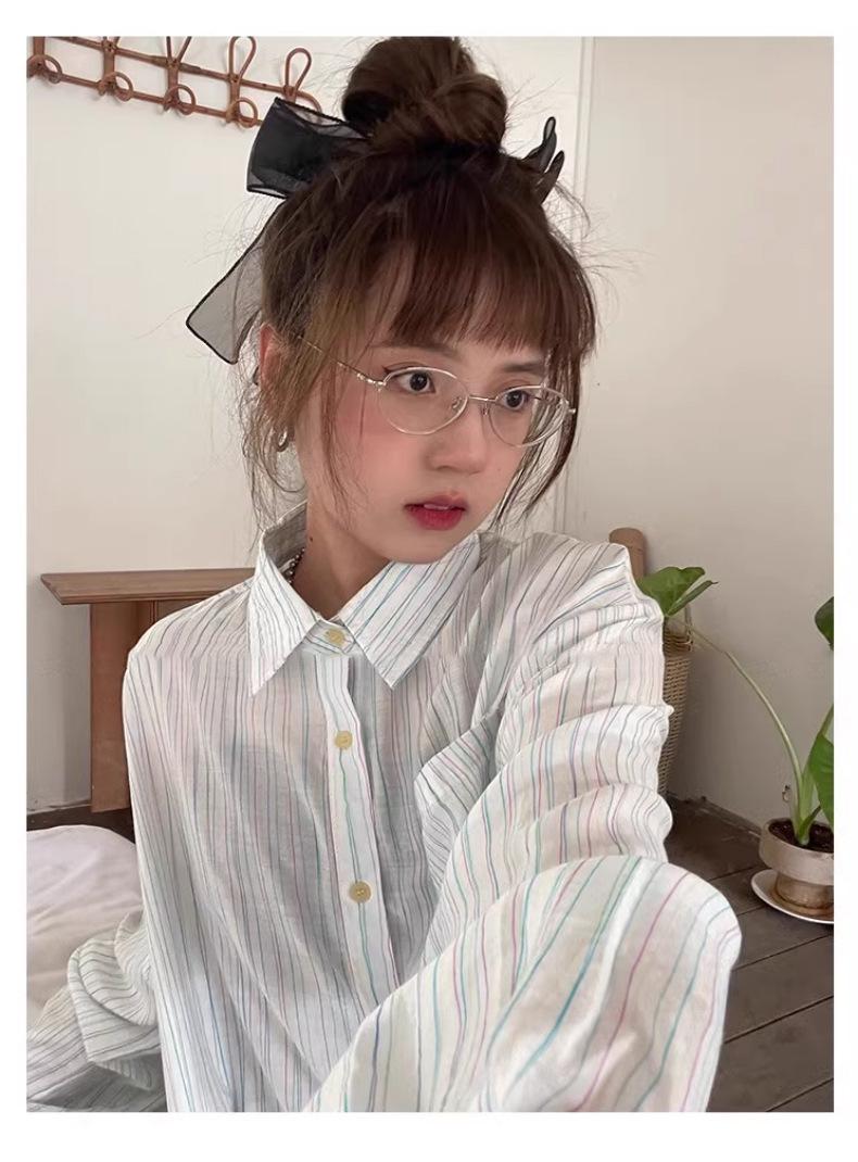 Camisa de protección solar para mujer, abrigo blanco a rayas, fino, suelto, primavera y otoño, nueva camisa de manga larga, top de moda