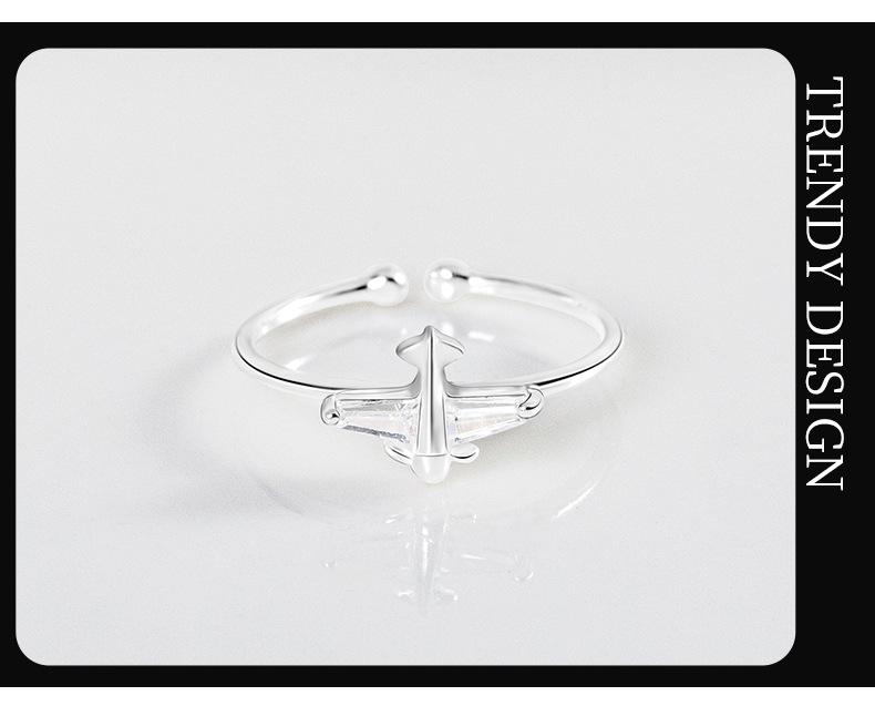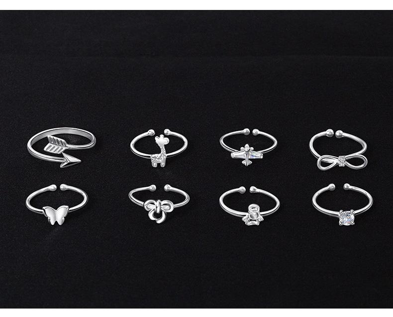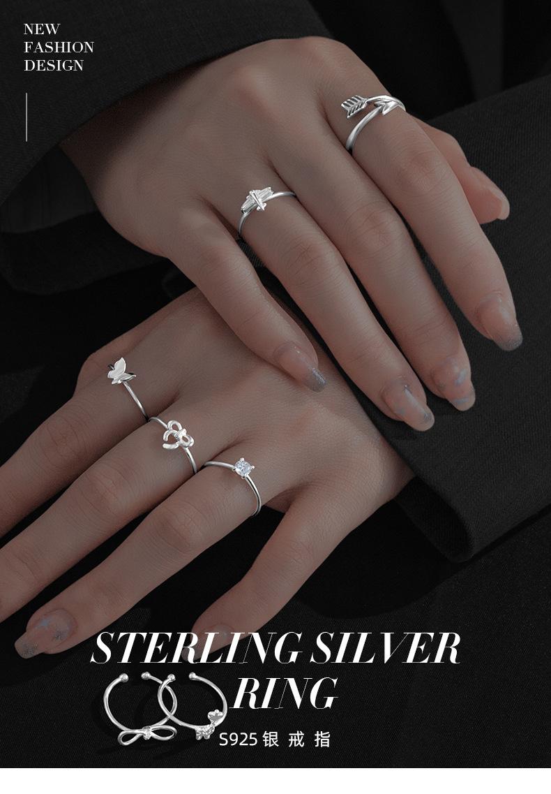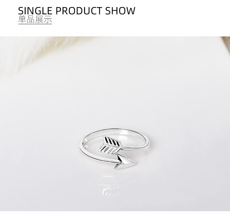 Anillo Banyan Tree S925 Distintivo Arco de Flecha Estilo Coreano Pequeño Lindo Diamante Solitario Plata Lisa Anillo Abierto Anillo de Dedo