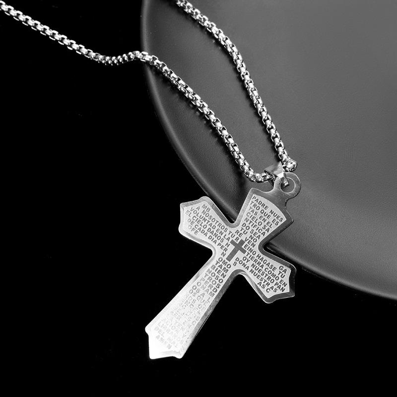 Collar de acero de titanio para hombre de Amazon transfronterizo, colgante de cruz de acero inoxidable, personalidad, cadena de suéter de hip hop, joyería al por mayor