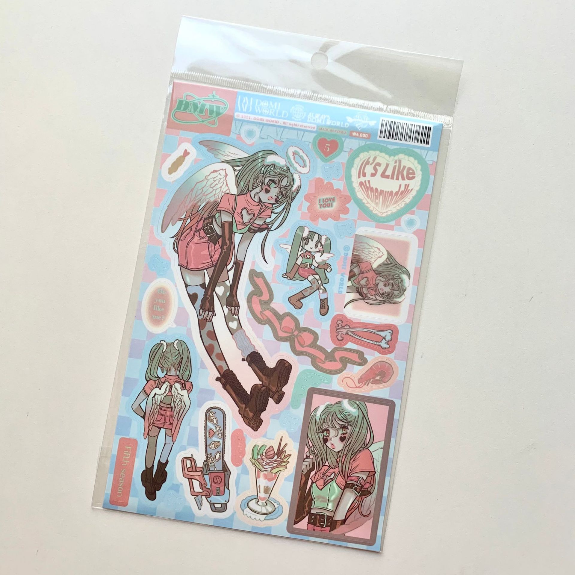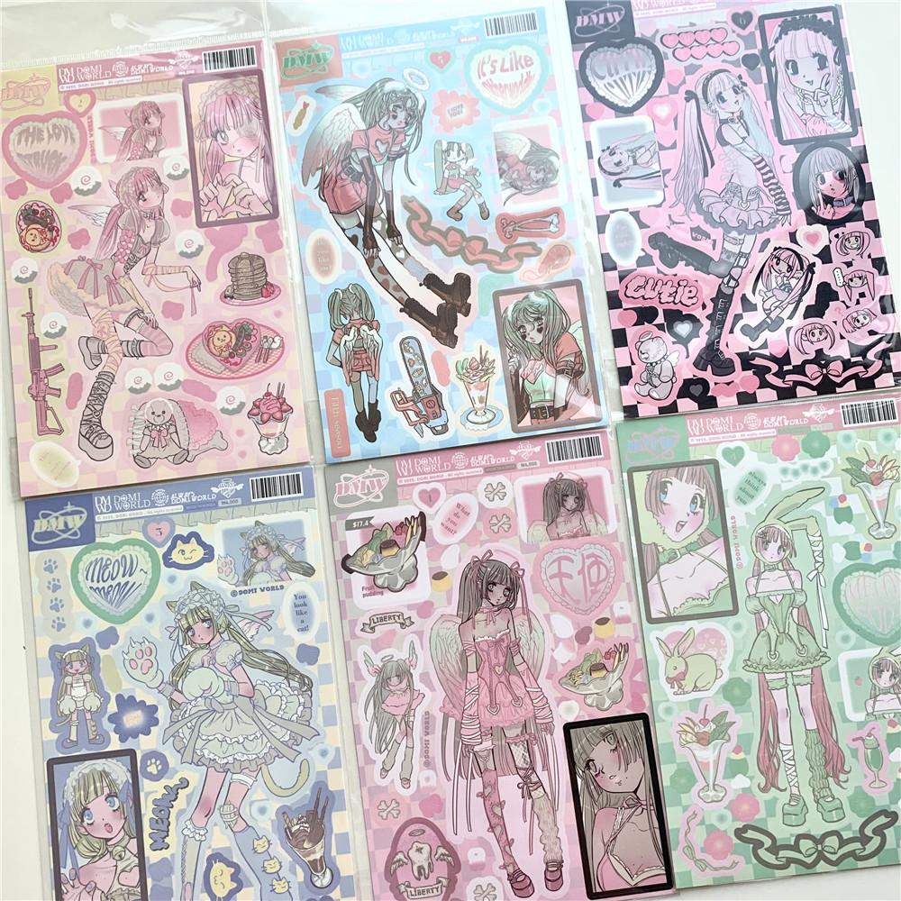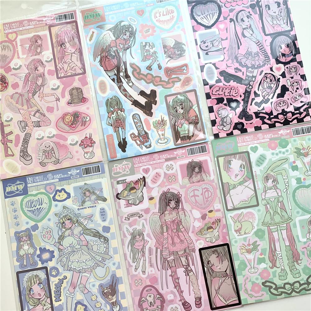Set de Tarjetas Adhesivas de Personaje de Niña Estilo Coreano ins Mismo Estilo Niña Dulce Yafeng Adhesivo Decorativo Tarjeta Goo Material para Cuenta de Mano