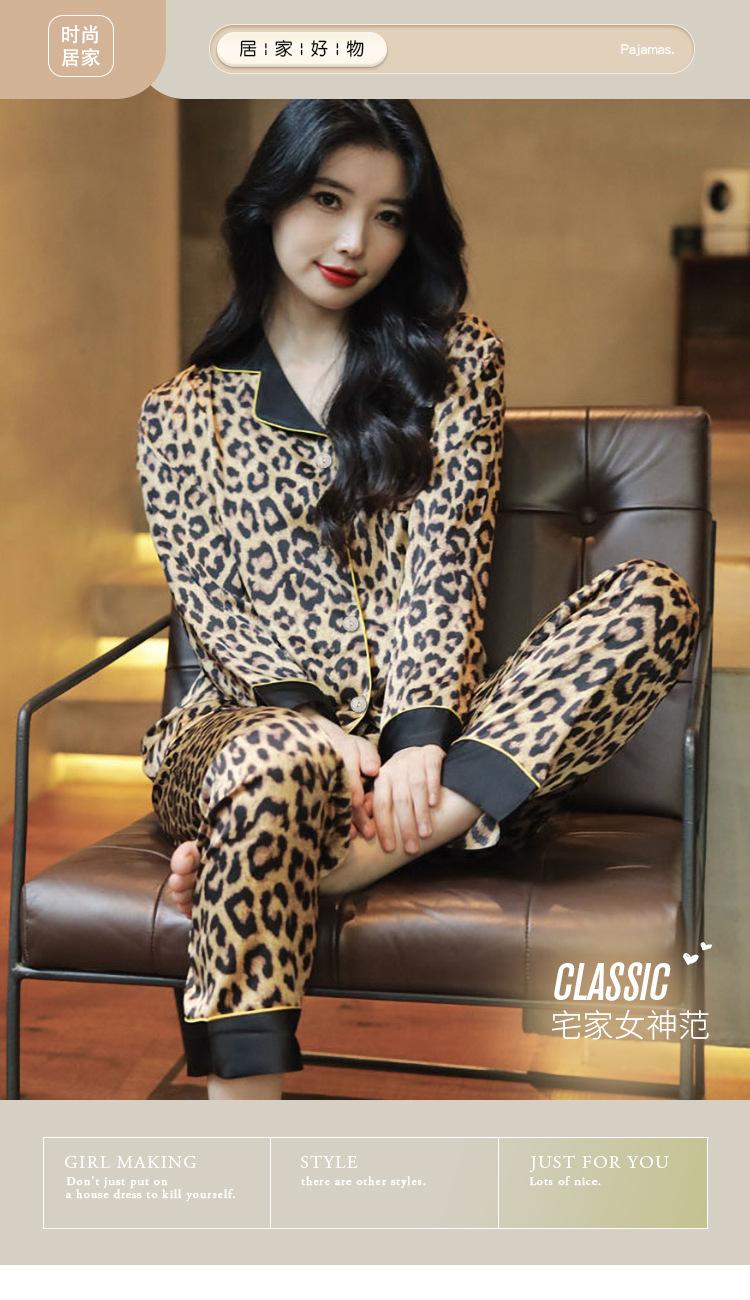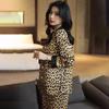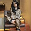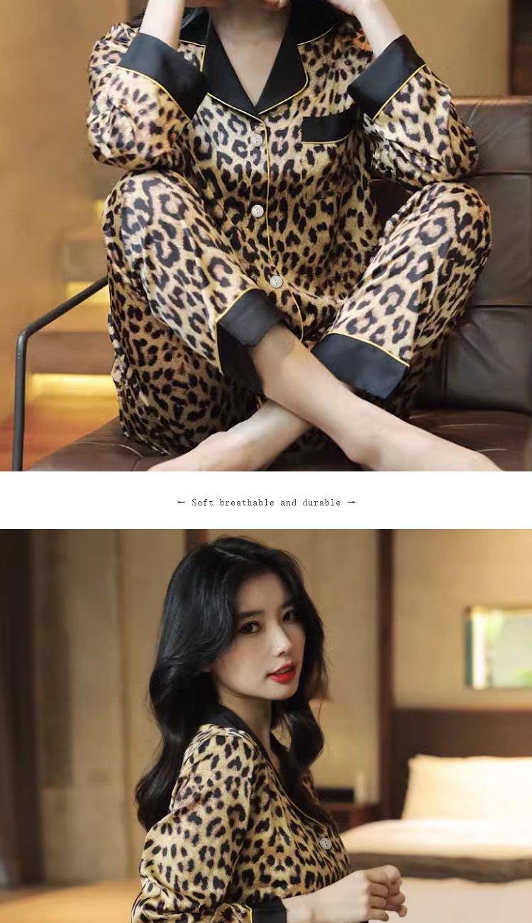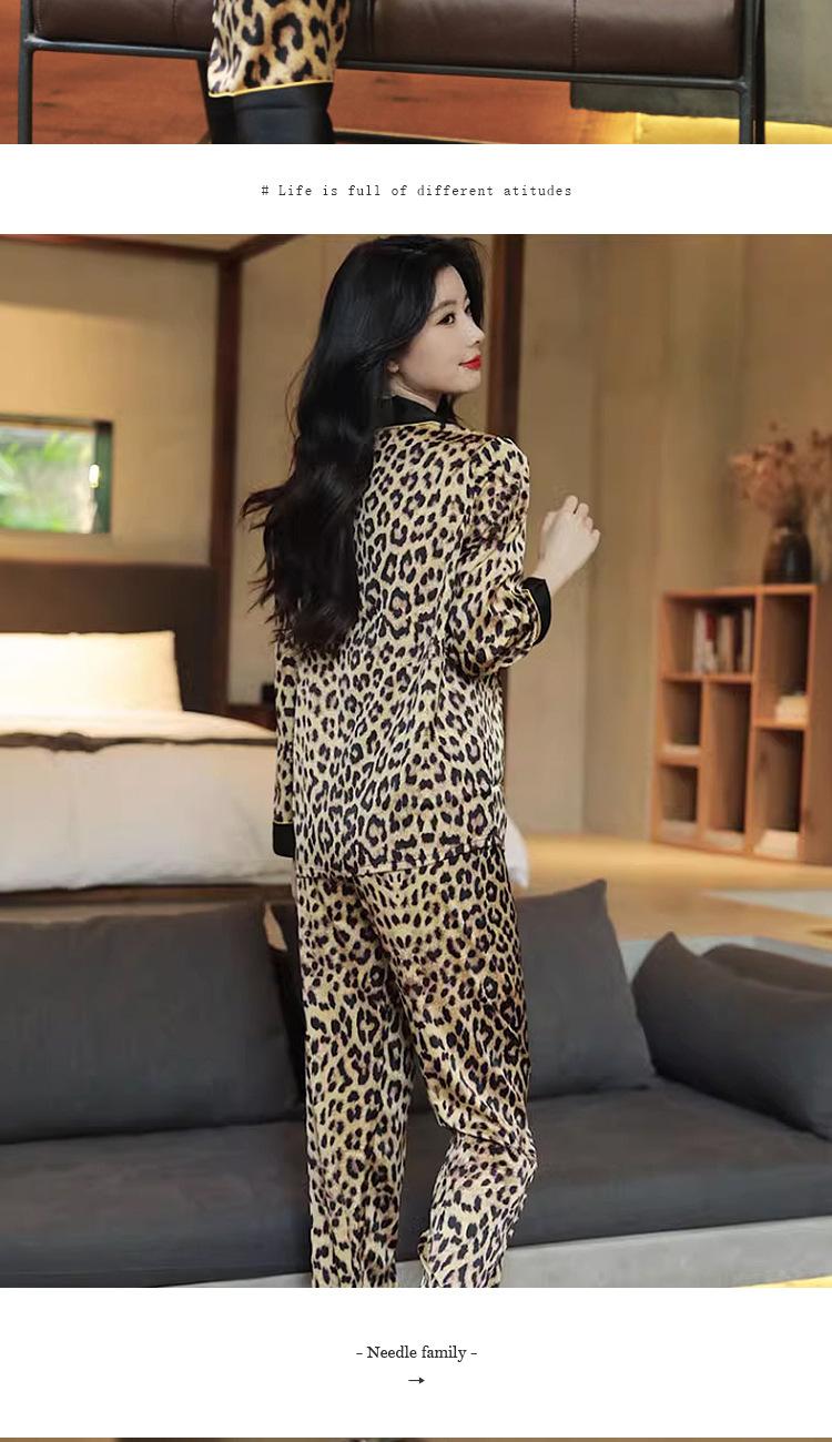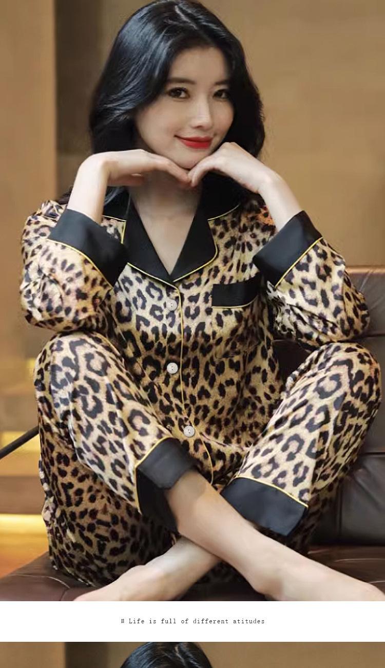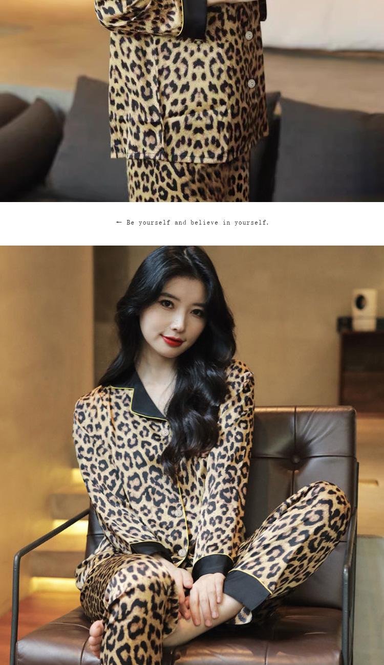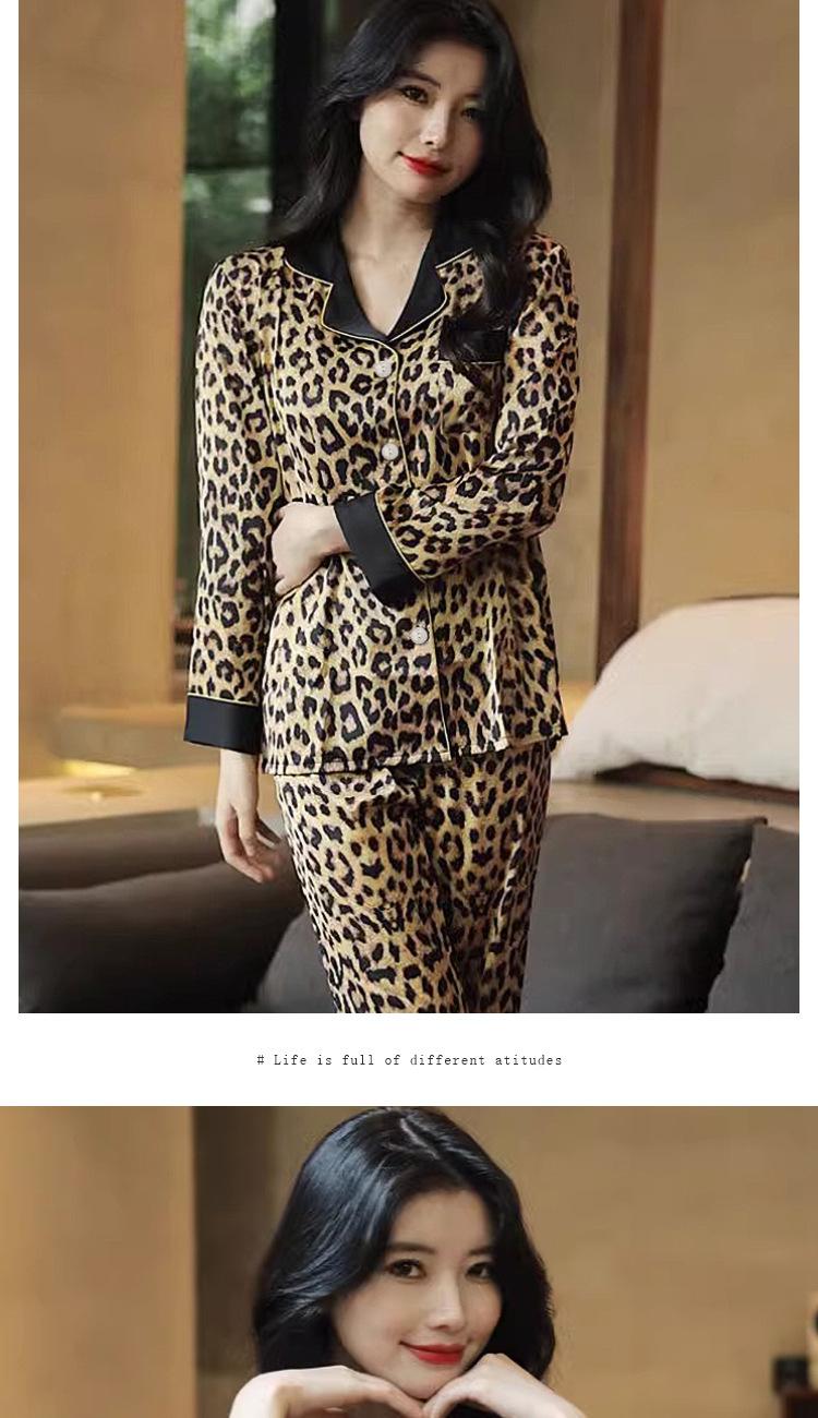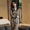 Pijamas con estampado de leopardo para mujer, ropa de casa de dos piezas, informal, de manga larga, para primavera y otoño, venta al por mayor