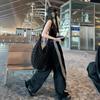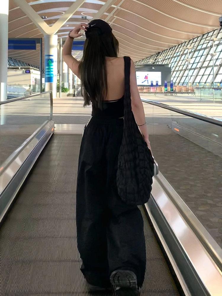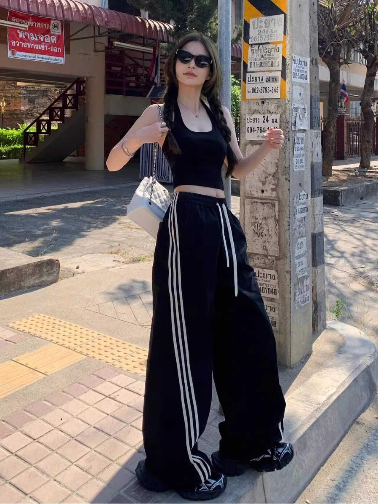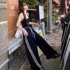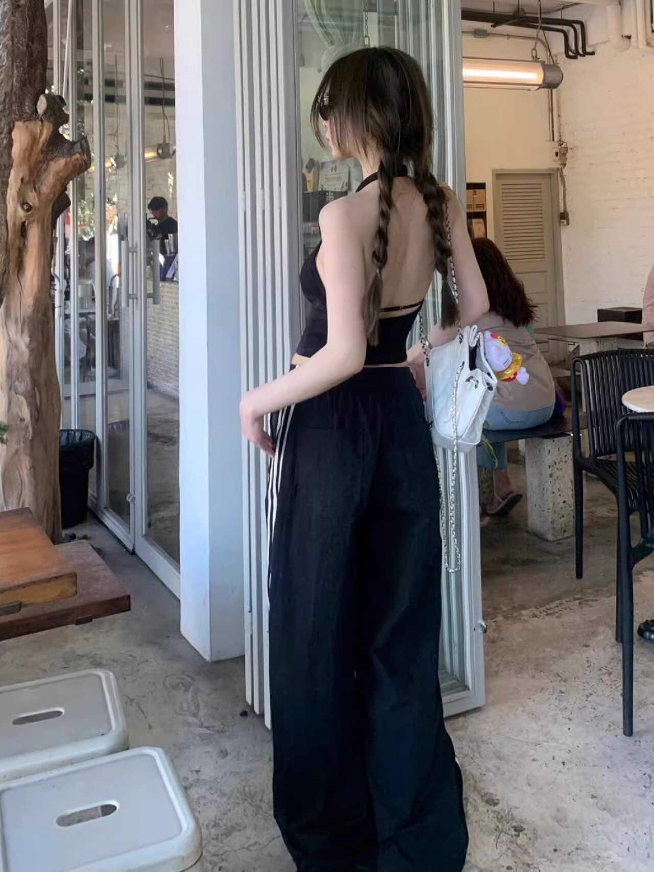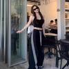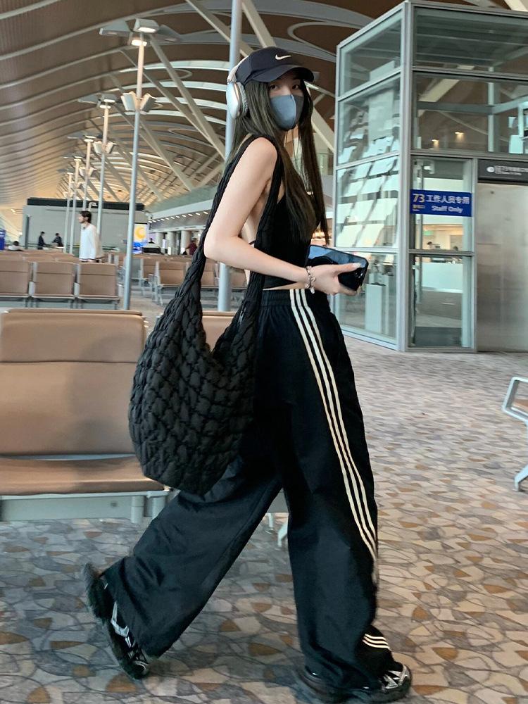 Pantalones deportivos de tres barras estilo americano para mujer, de verano, finos, de secado rápido, holgados, de pierna ancha y cintura elástica, informales y drapeados.