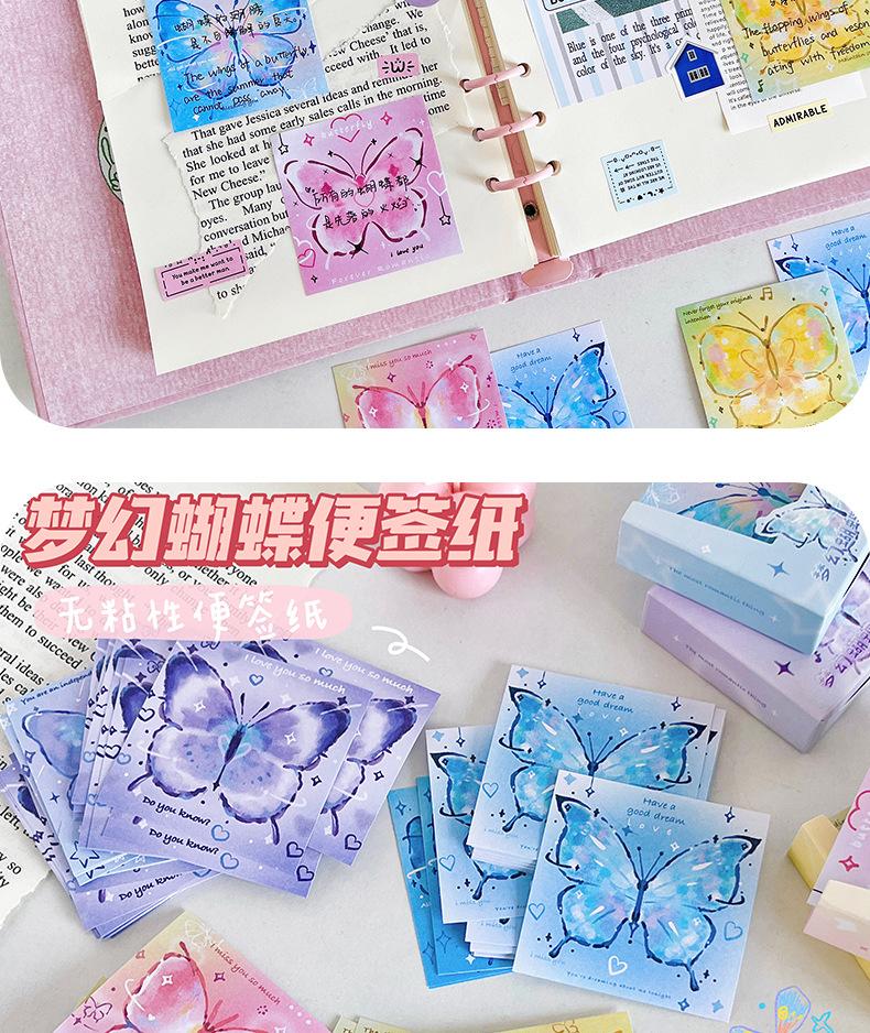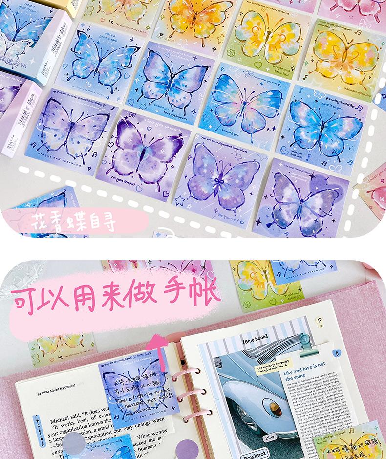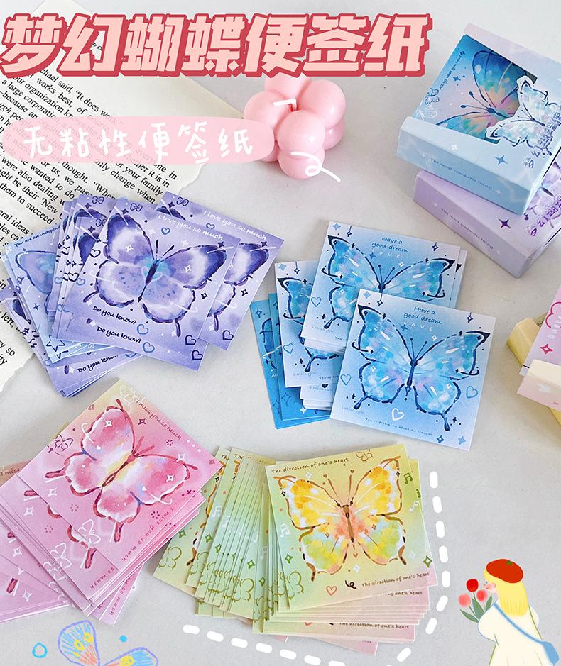 Papel de notas adhesivas original, no pegajoso, venta al por mayor, cuaderno de notas desgarrable, notas de mariposa de dibujos animados, notas adhesivas, notas adhesivas, mensajes convenientes para enviar