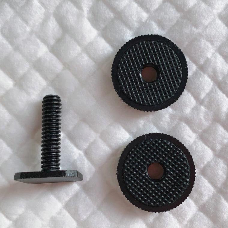 Orificio de tornillo estándar de 1/4" a zapata. Los tornillos dobles se pueden bloquear arriba y abajo.