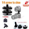 Para productos con solo un orificio de tornillo estándar de 1/4" en la parte inferior, como cámaras, cables TTL Nikon SC-28 y disparadores de flash inalámbricos Yongnuo CTR-301P, cuando necesitan ser instalados en dispositivos con zapatas de flash, este producto se puede usar para agregar una zapata de flash.