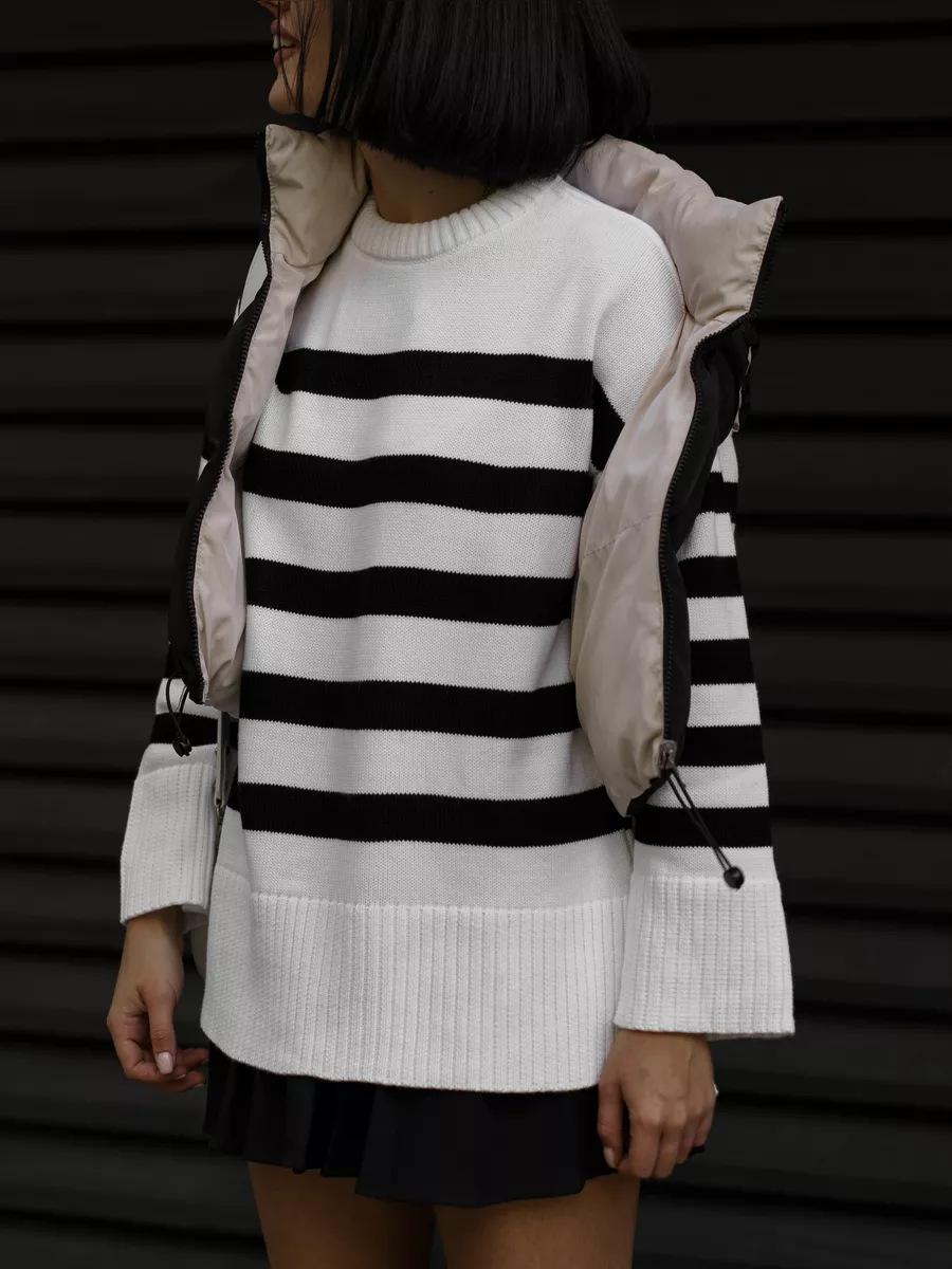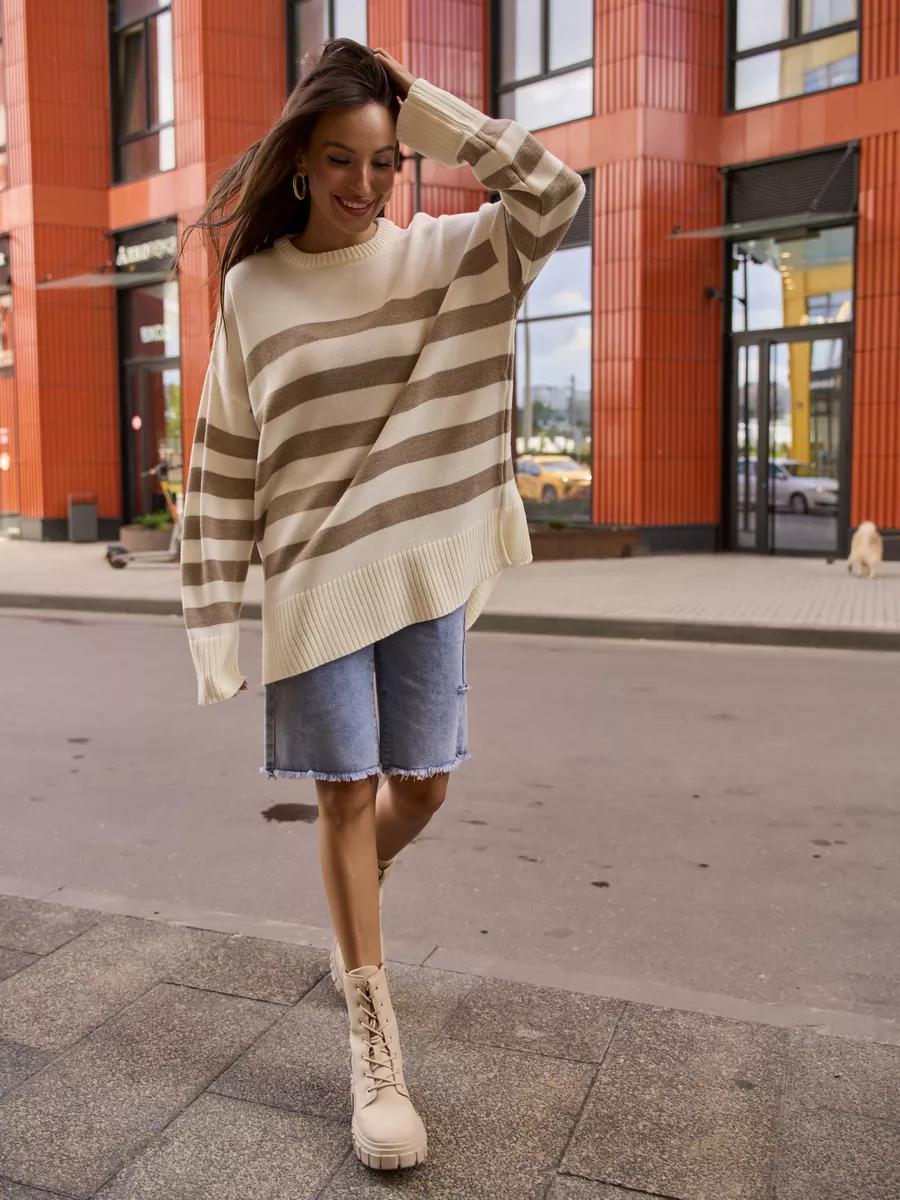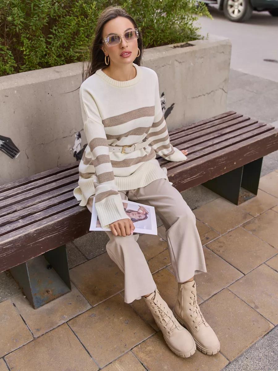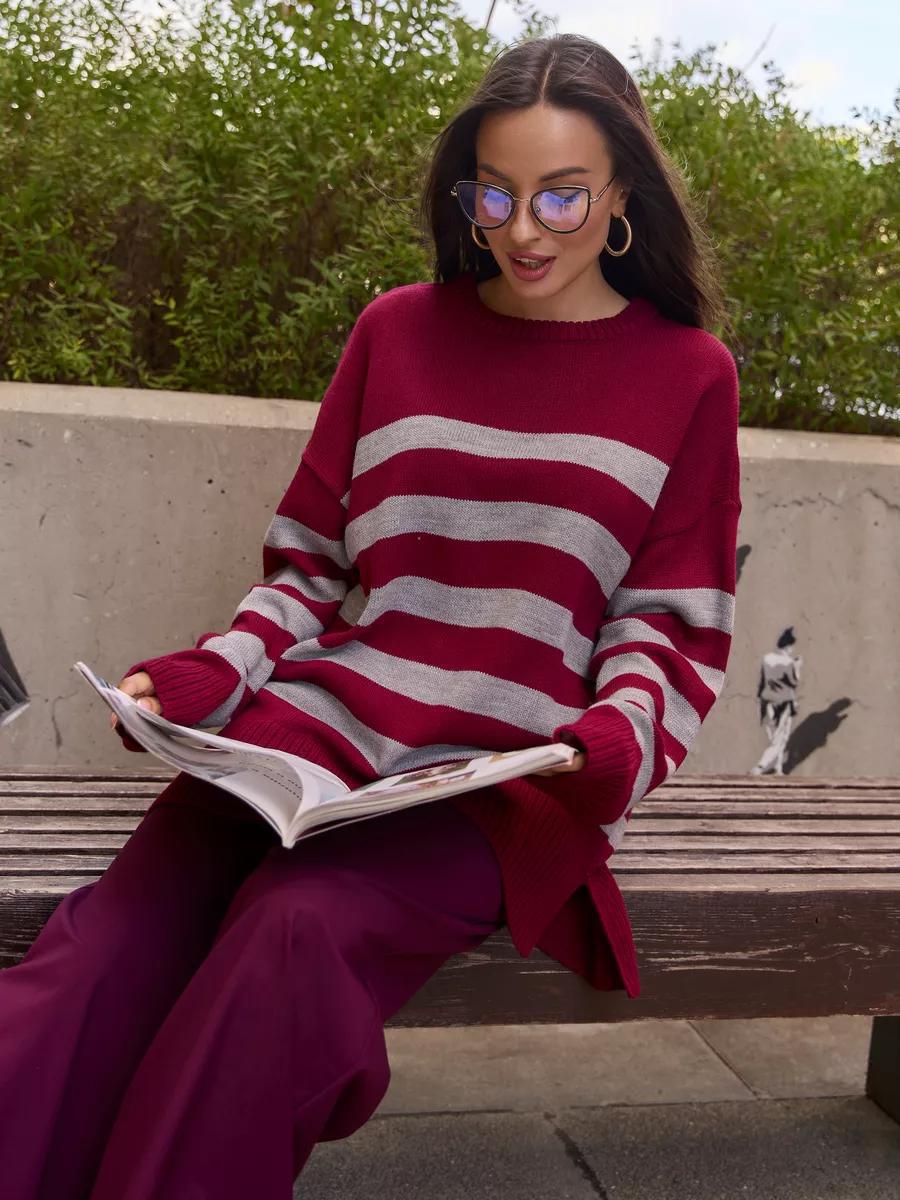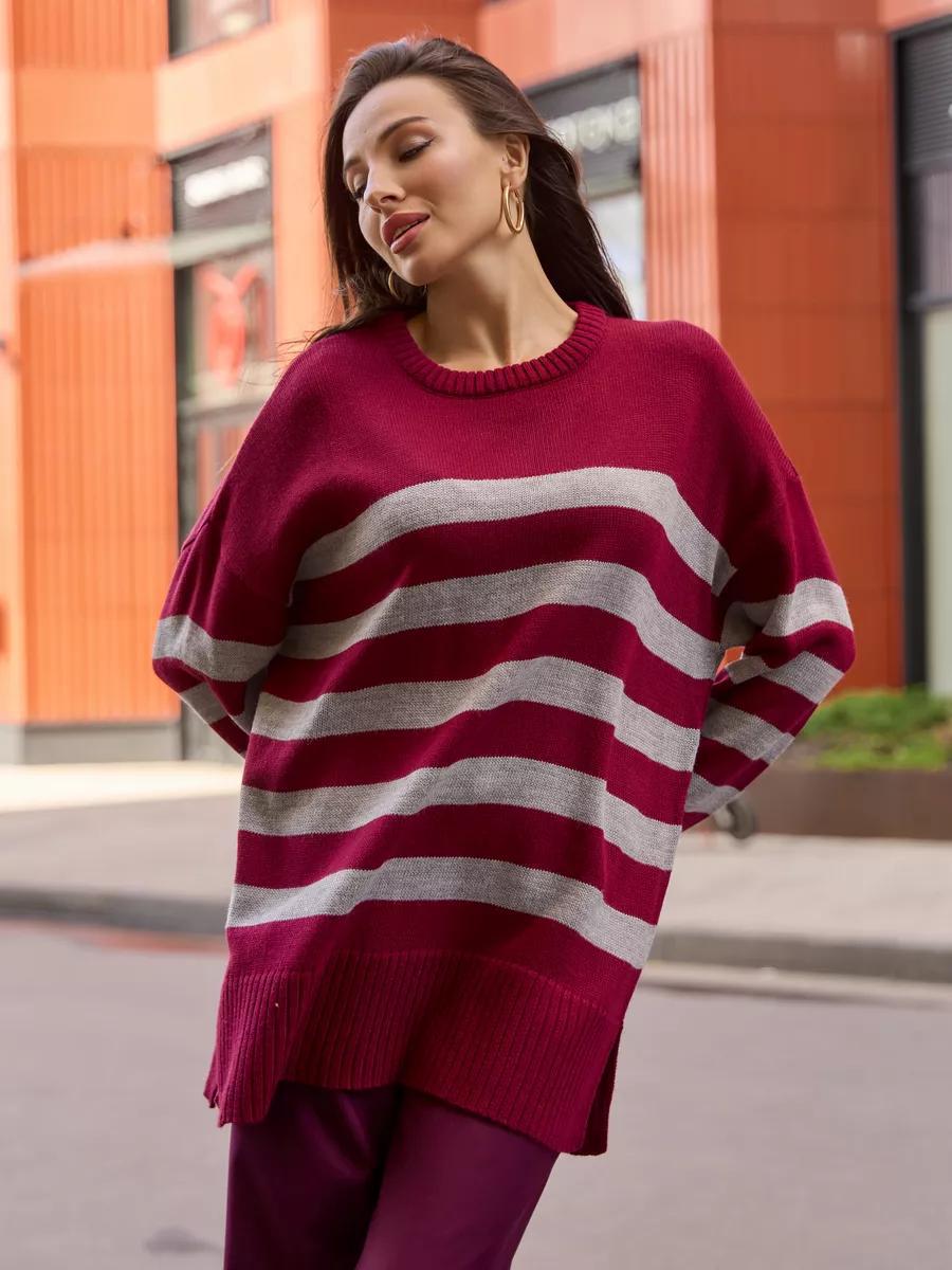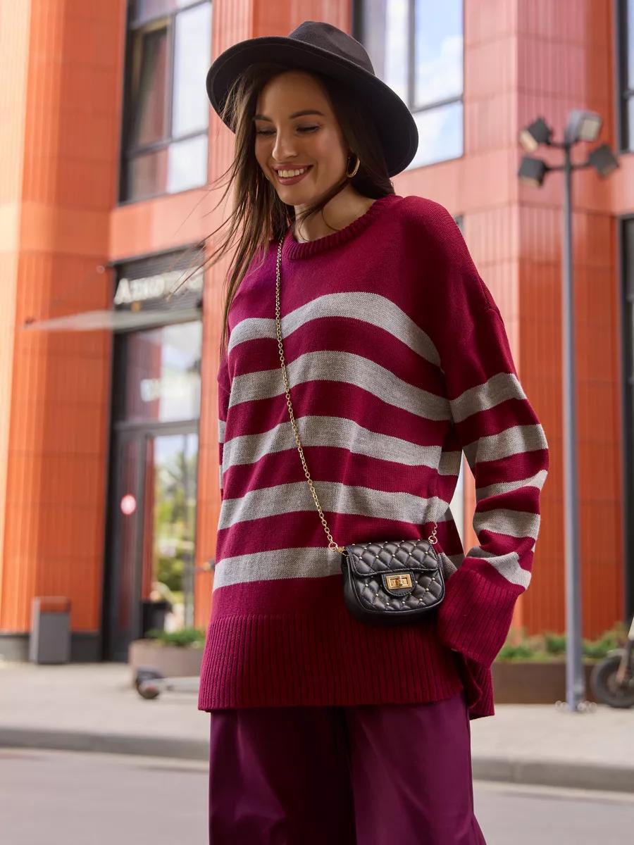 Ropa de Punto para Mujer Otoño e Invierno 2025 Nuevo Europeo y Americano Transfronterizo Casual Rayas Suelto Cuello Redondo Jersey Ropa de Punto Chaqueta para Mujer