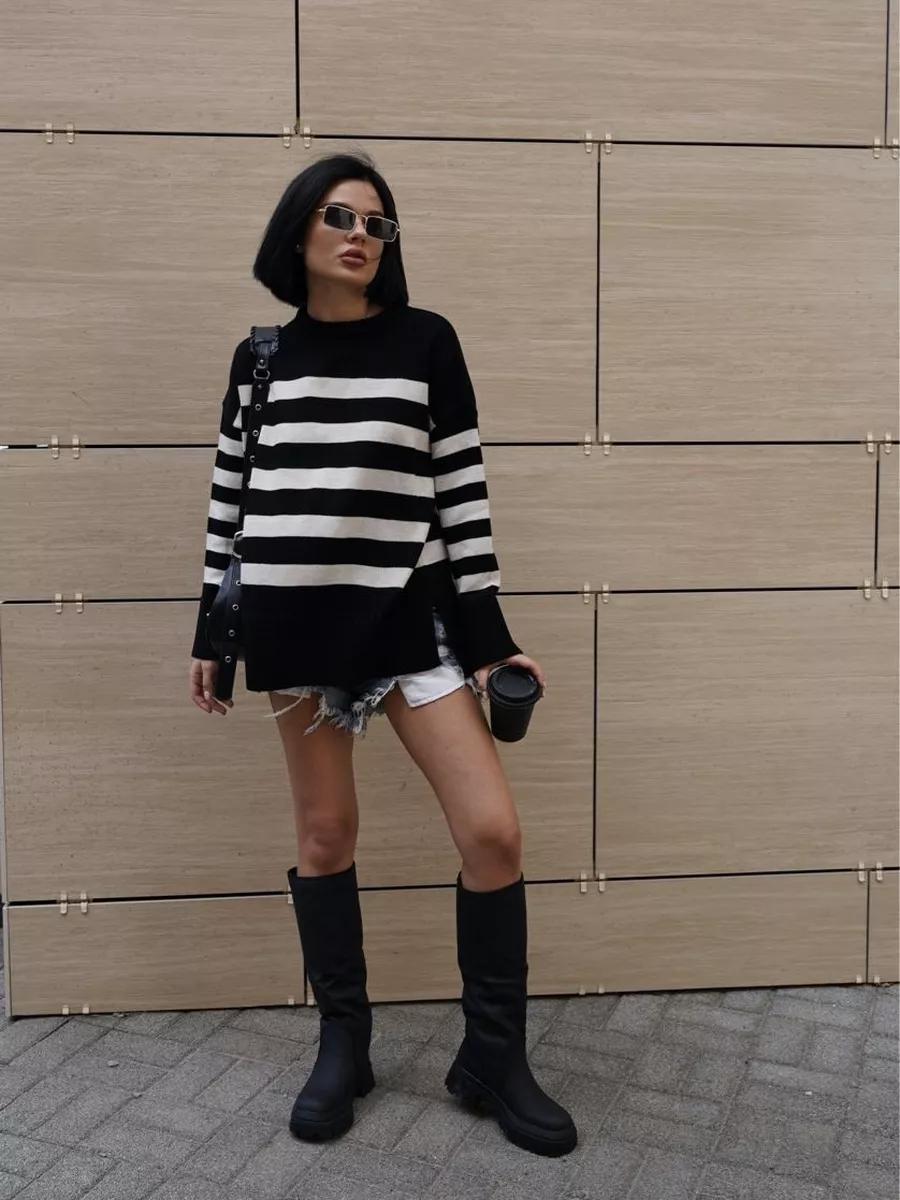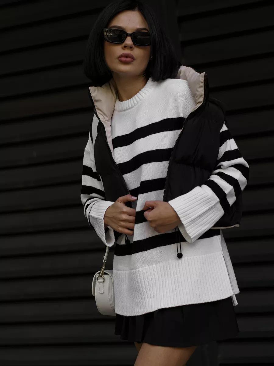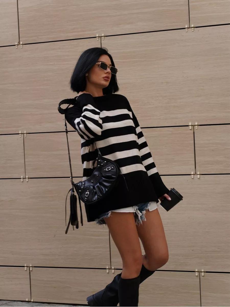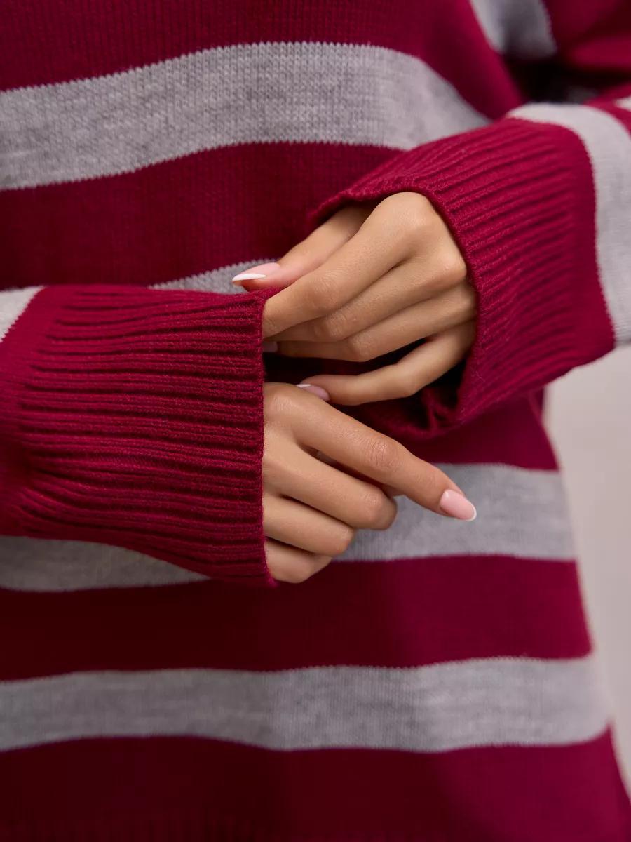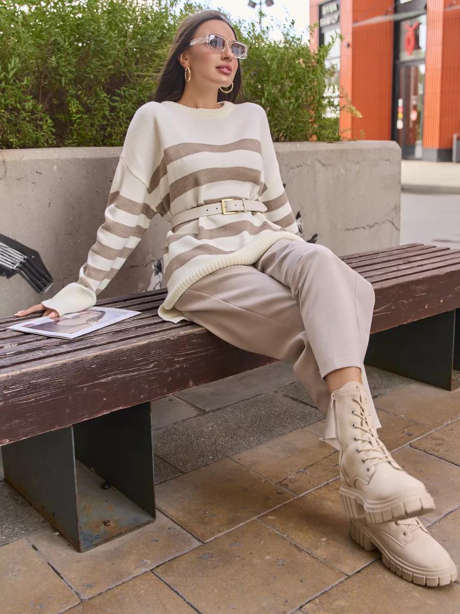 Ropa de Punto para Mujer Otoño e Invierno 2025 Nuevo Europeo y Americano Transfronterizo Casual Rayas Suelto Cuello Redondo Jersey Ropa de Punto Chaqueta para Mujer